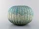 Plateelbakkerij Zuid-Holland (Plazuid, PZH). Oval art deco vase med rillet design. Smuk turkis glasur. Holland, 1940'erne. I flot stand. Stemplet. Måler: 34 x 15 cm.