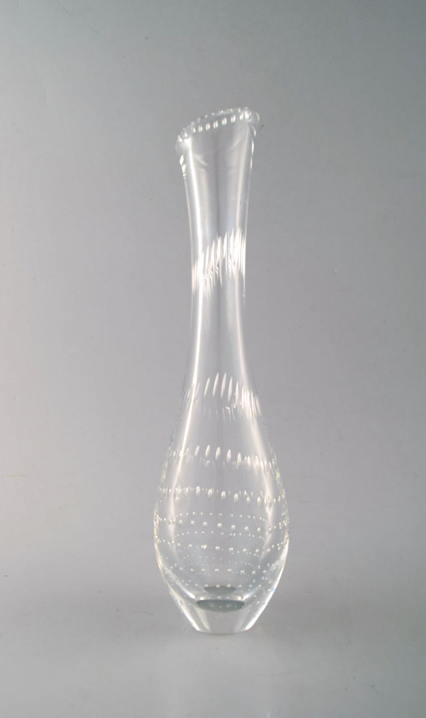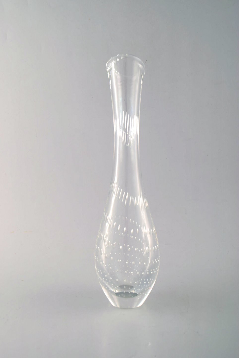 Vicke Lindstrand for Kosta Boda kunstglasvase. 1960'erne. Signeret. Måler : 31 x 8,5 cm. I flot stand.