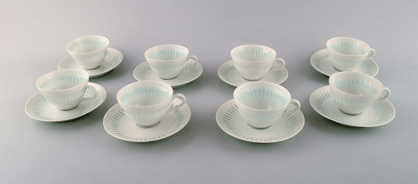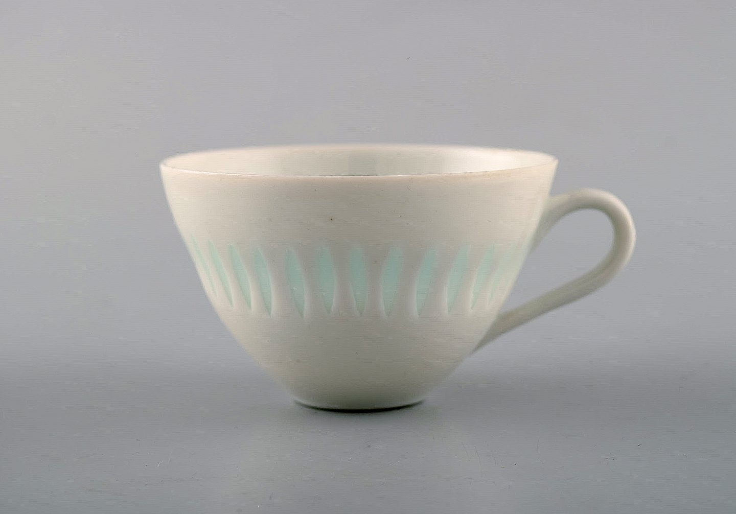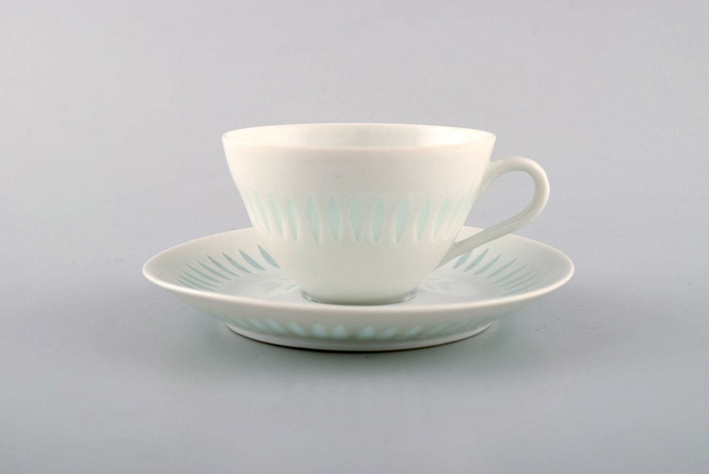 Freidl Holzer Kjellberg for Arabia. Komplet 8 personers kaffeservice i risporcelæn. Midt 1900-tallet. I flot stand. Koppen måler: 7 x 4,7 cm. Underkoppen måler: 11 cm. Stemplet.