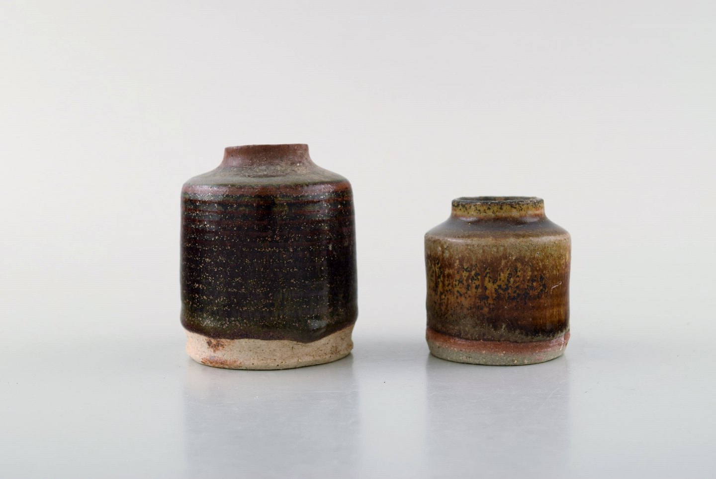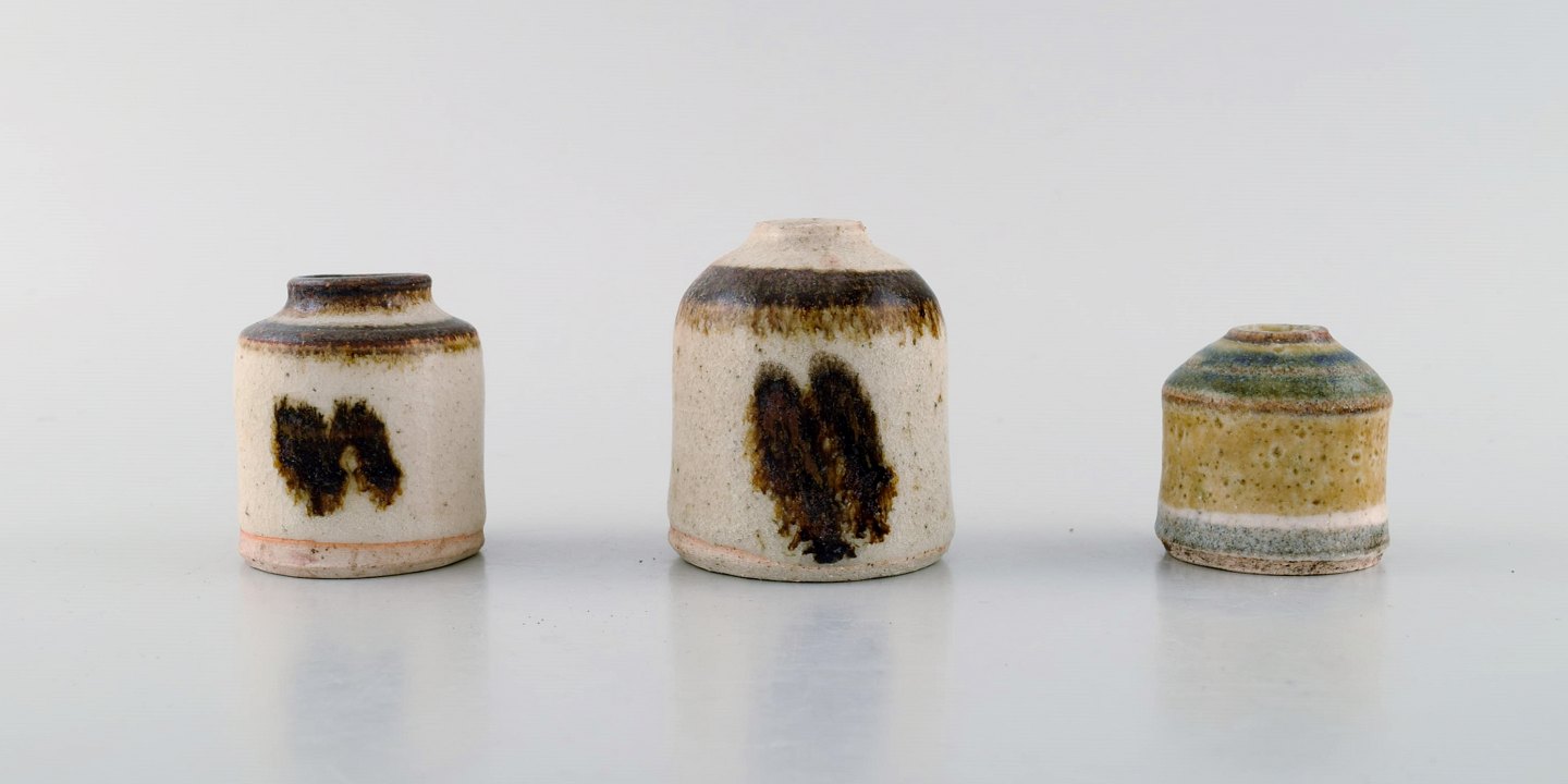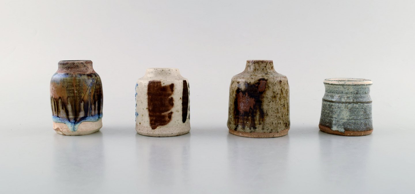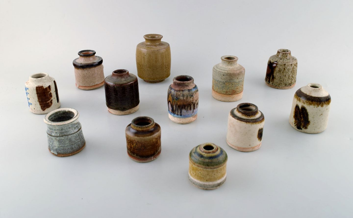 Niels Oluf 'Jeppe' Thorkelin-Eriksen (1926-1981) og Gunver Bilde Sørensen (1931-2018), Danmark. Samling på tolv miniaturevaser i glaseret keramik. 1960/70'erne.