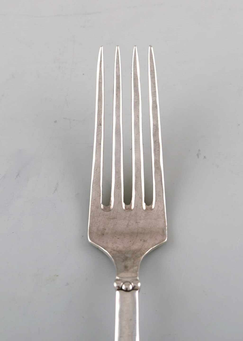S. Chr. Fogh, 1912-1973. Dansk sølvsmed. "Kugle" frokostgaffel i hammerslået sølv. Dateret 1957. To stk på lager. I flot stand. Måler: 18,5 cm. Stemplet.