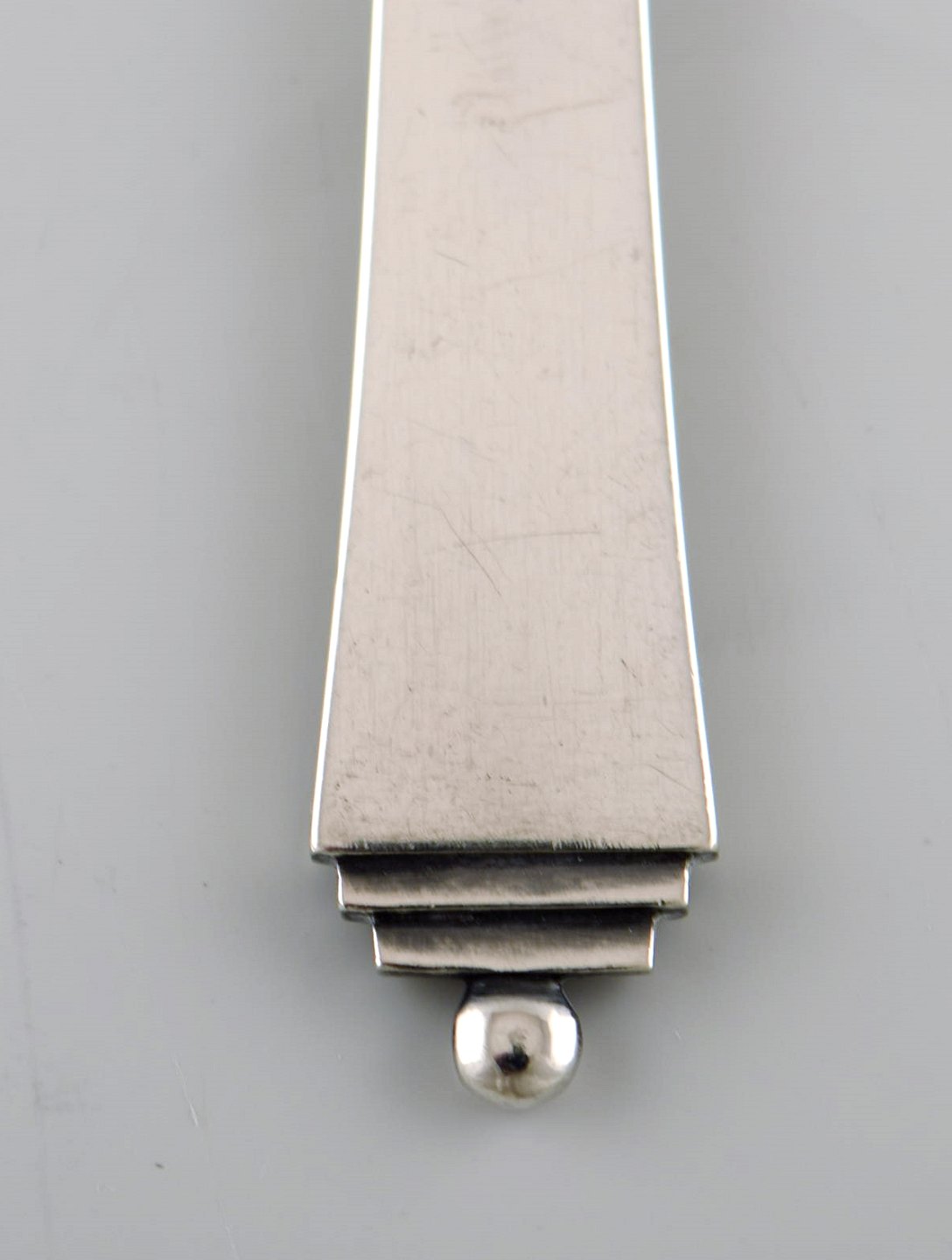 Georg Jensen "Pyramide" pålægsgaffel i sterlingsølv. Dateret 1933-44. Tre stk på lager. Designet af Harald Nielsen 1927. I flot stand. Måler: 11,5 cm. Tidligt stempel.