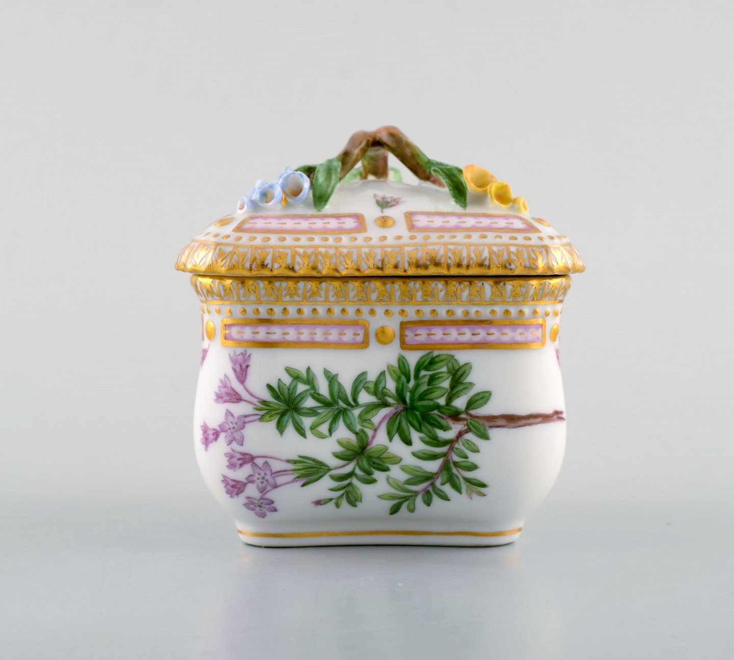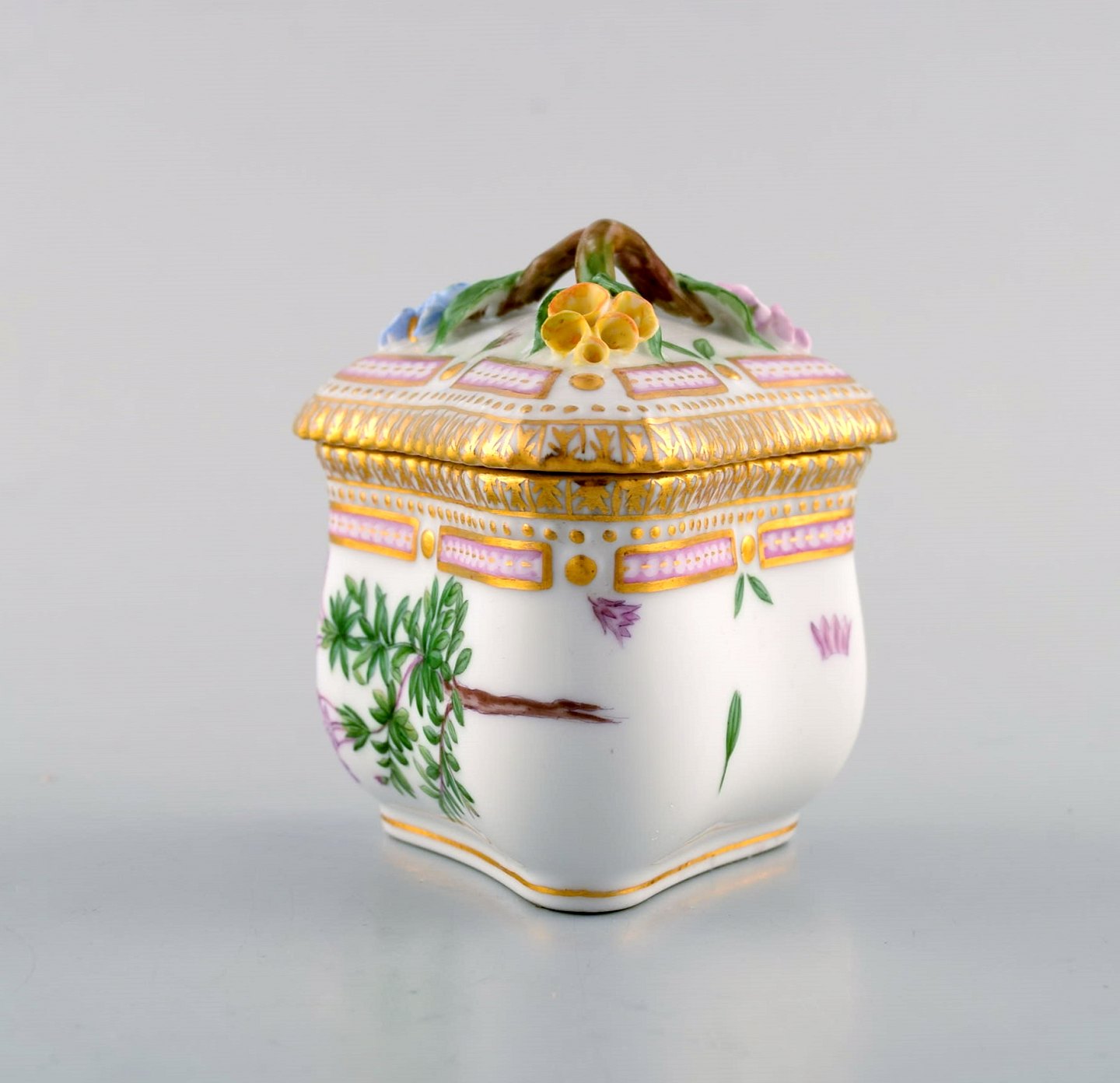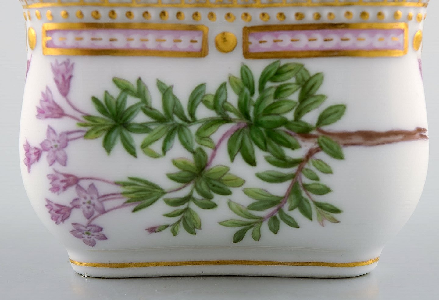 Royal Copenhagen Flora Danica tresidet cremekop. Dessin nr. 20/3575 med grenformet hank og pousserede blomster.