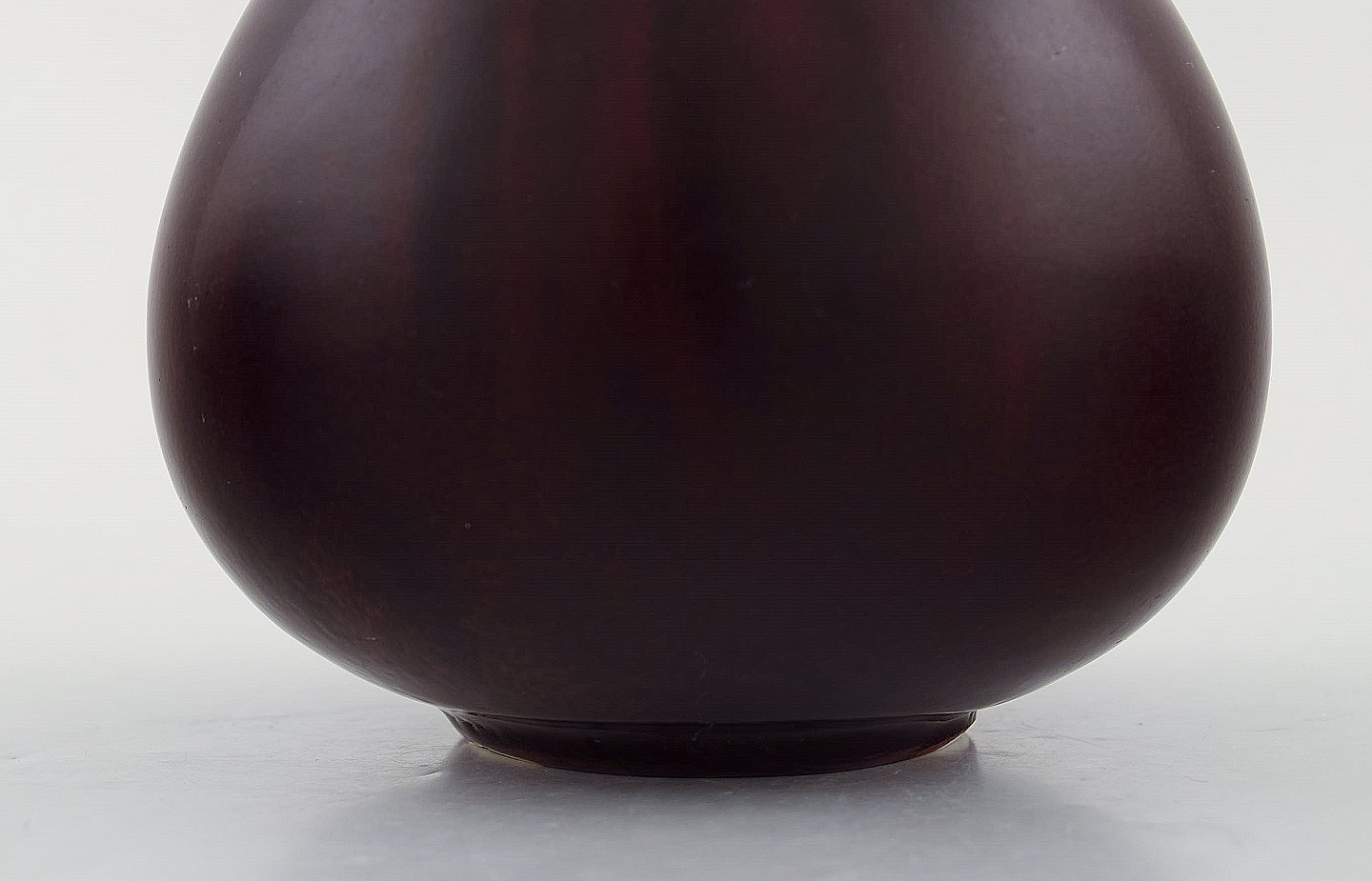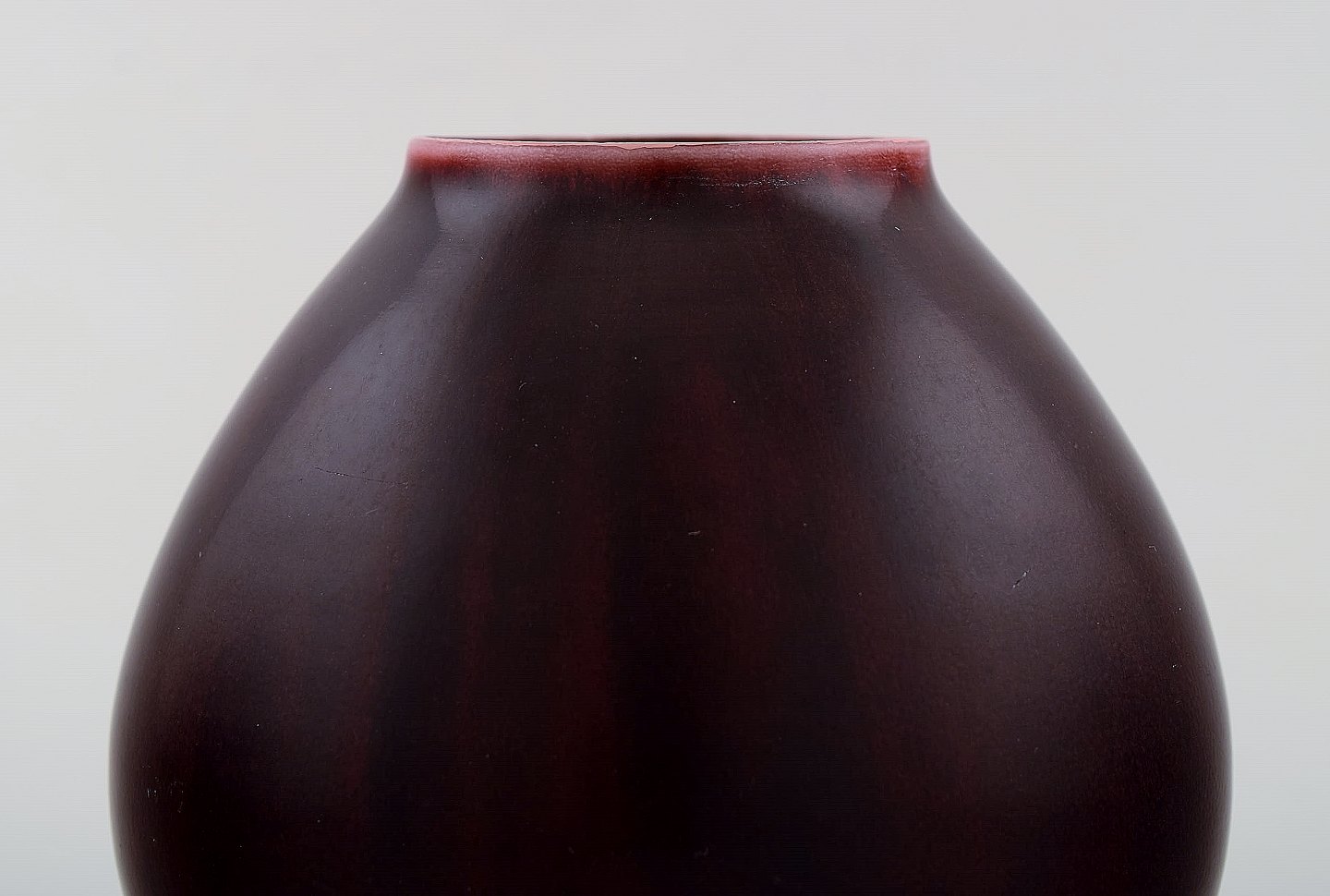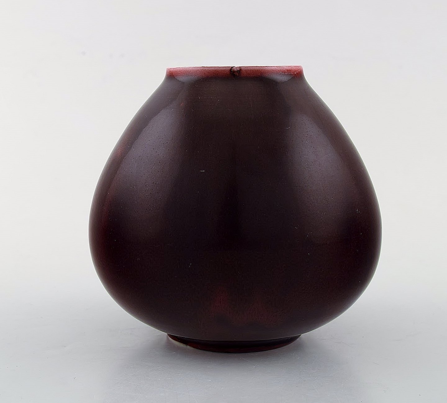 Carl Halier for Royal Copenhagen. Unika keramikvase i smuk okseblodsglasur. Dateret 1934. Signeret og dateret. I flot stand. Måler: 14 x 12,5 cm.