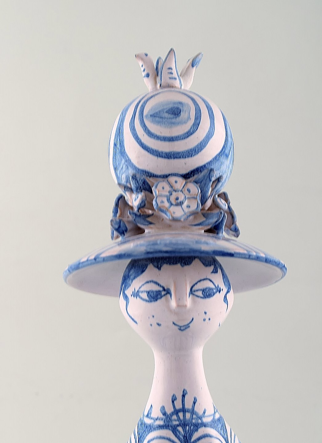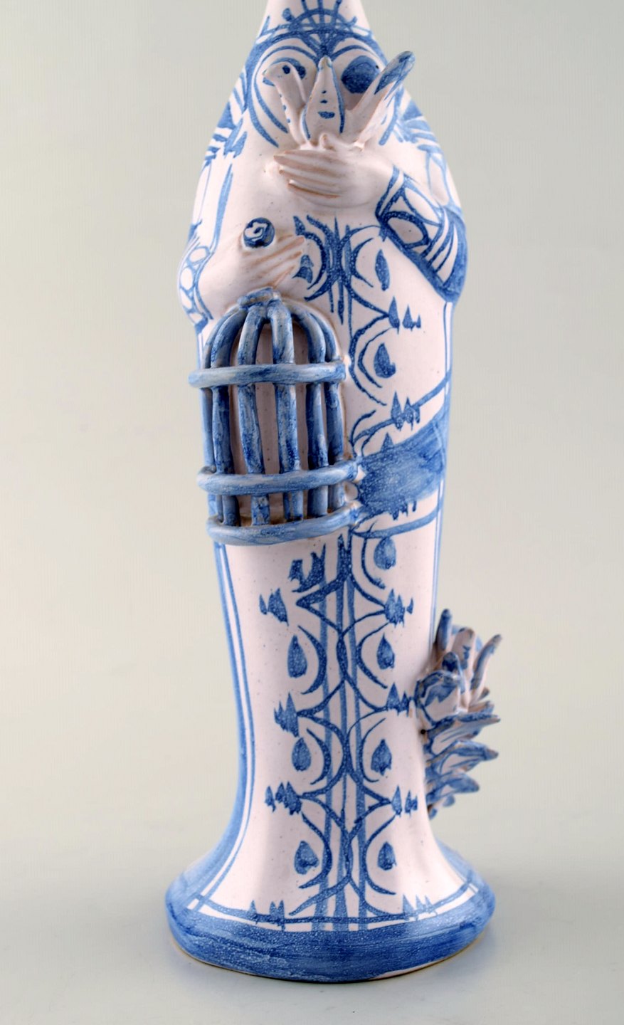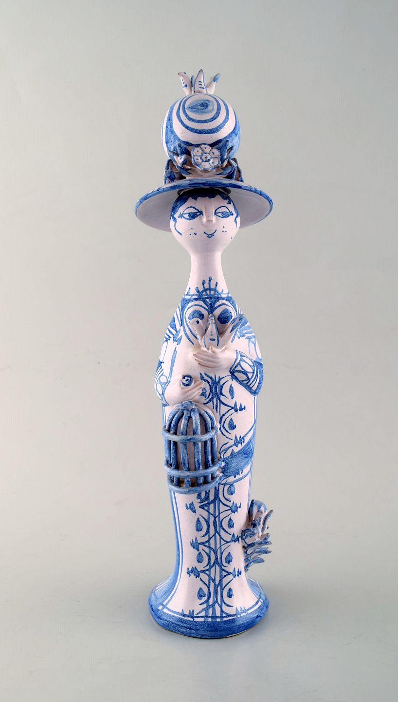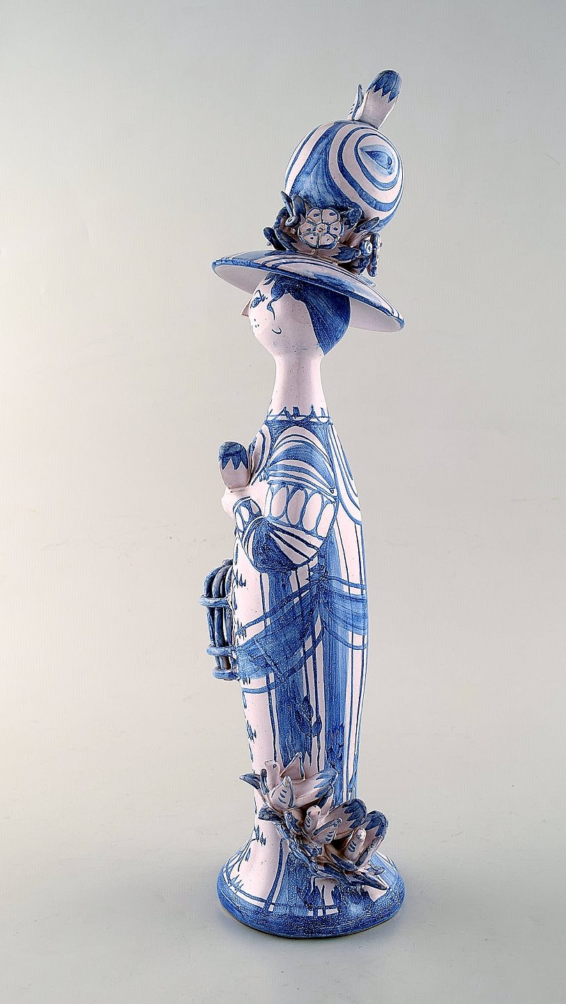 Bjørn Wiinblad unik keramik figur. "Forår" i blå "Årstiderne" fra 1981. Måler: 37,5 x 10 cm. Perfekt stand. Alle fire figurer fra "Årstiderne" på lager.