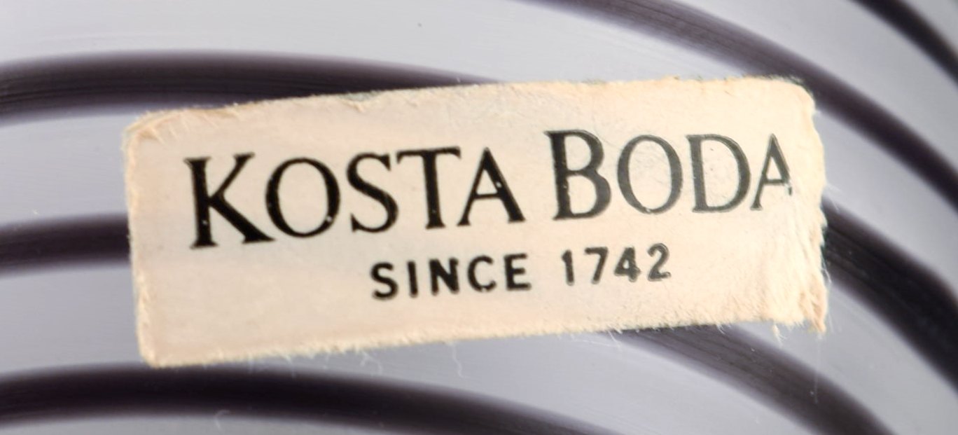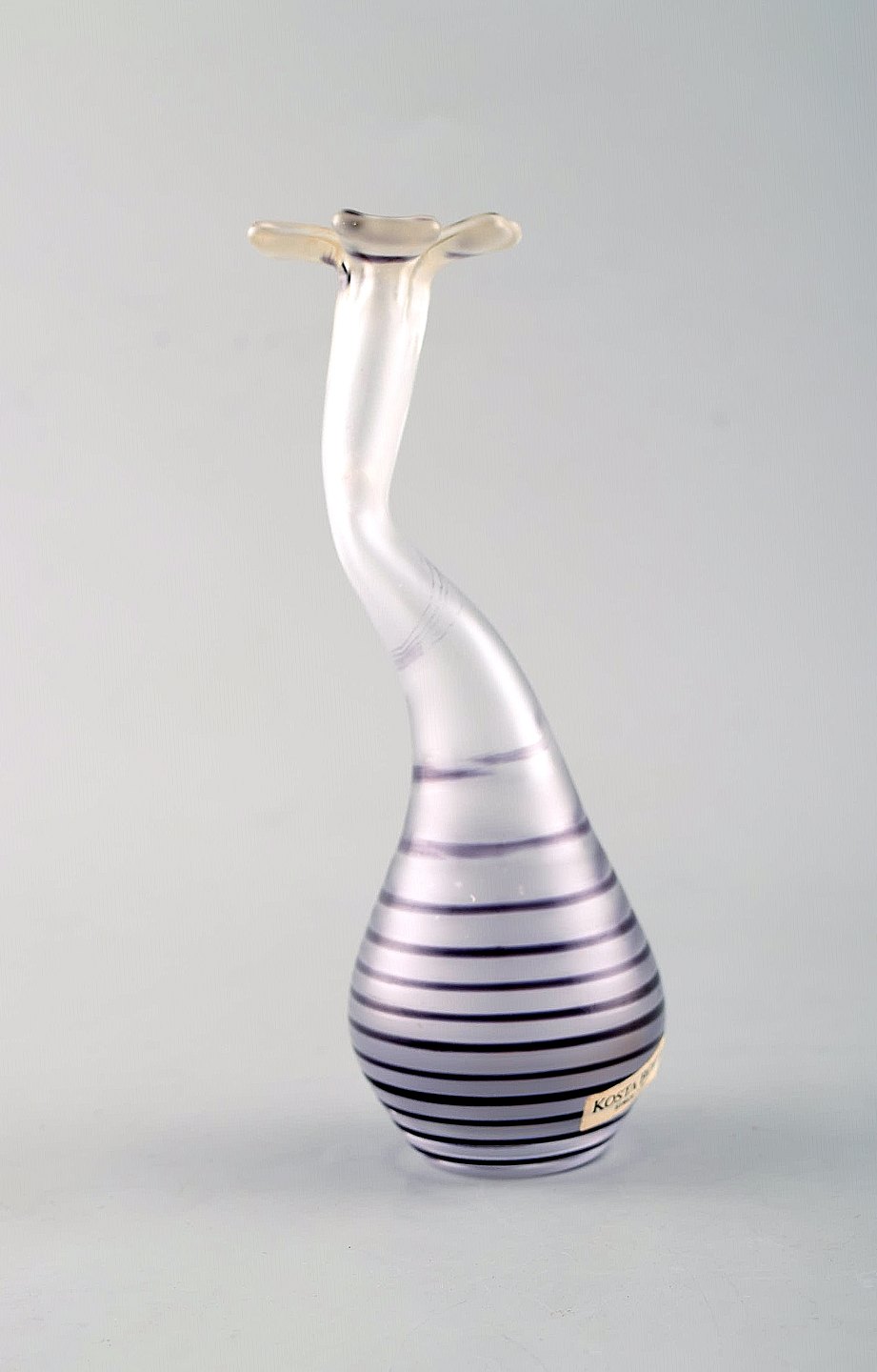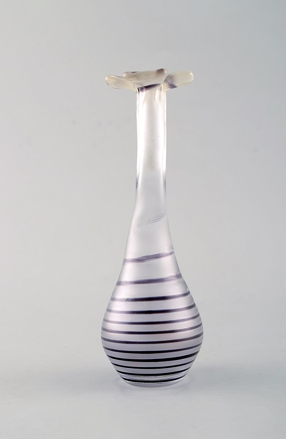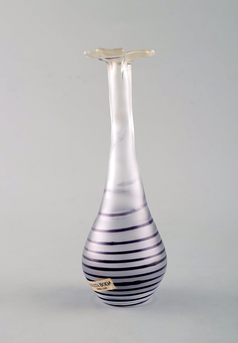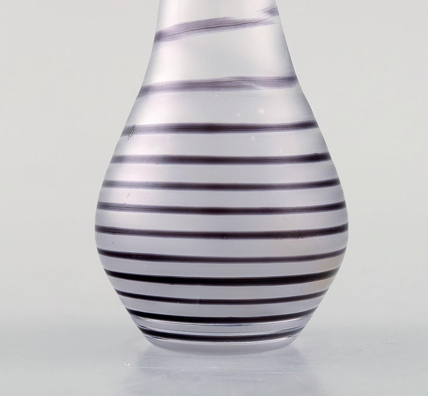 Ulrica Hydman Vallien for Kosta Boda. Vase i klart mundblæst kunstglas dekoreret med sorte striber. Svensk design 1980'erne. Måler: 14,5 x 5 cm. I perfekt stand. Mærkat.