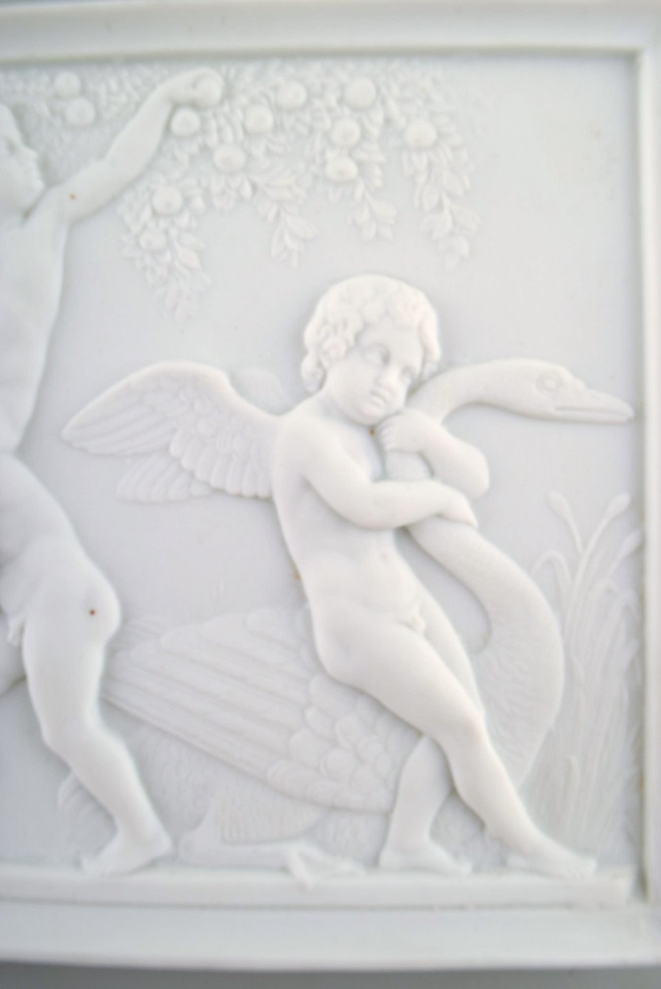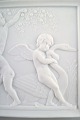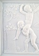 Royal Copenhagen efter Thorvaldsen. Sjælden biscuit plakette. Drenge stjæler frugt. 1870'erne. Måler 14,8 x 11,5 cm. Stemplet. I perfekt stand, 1. sortering.