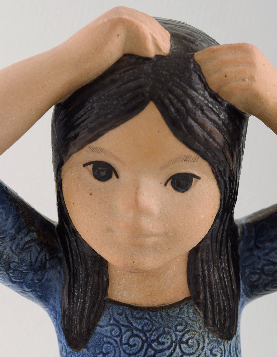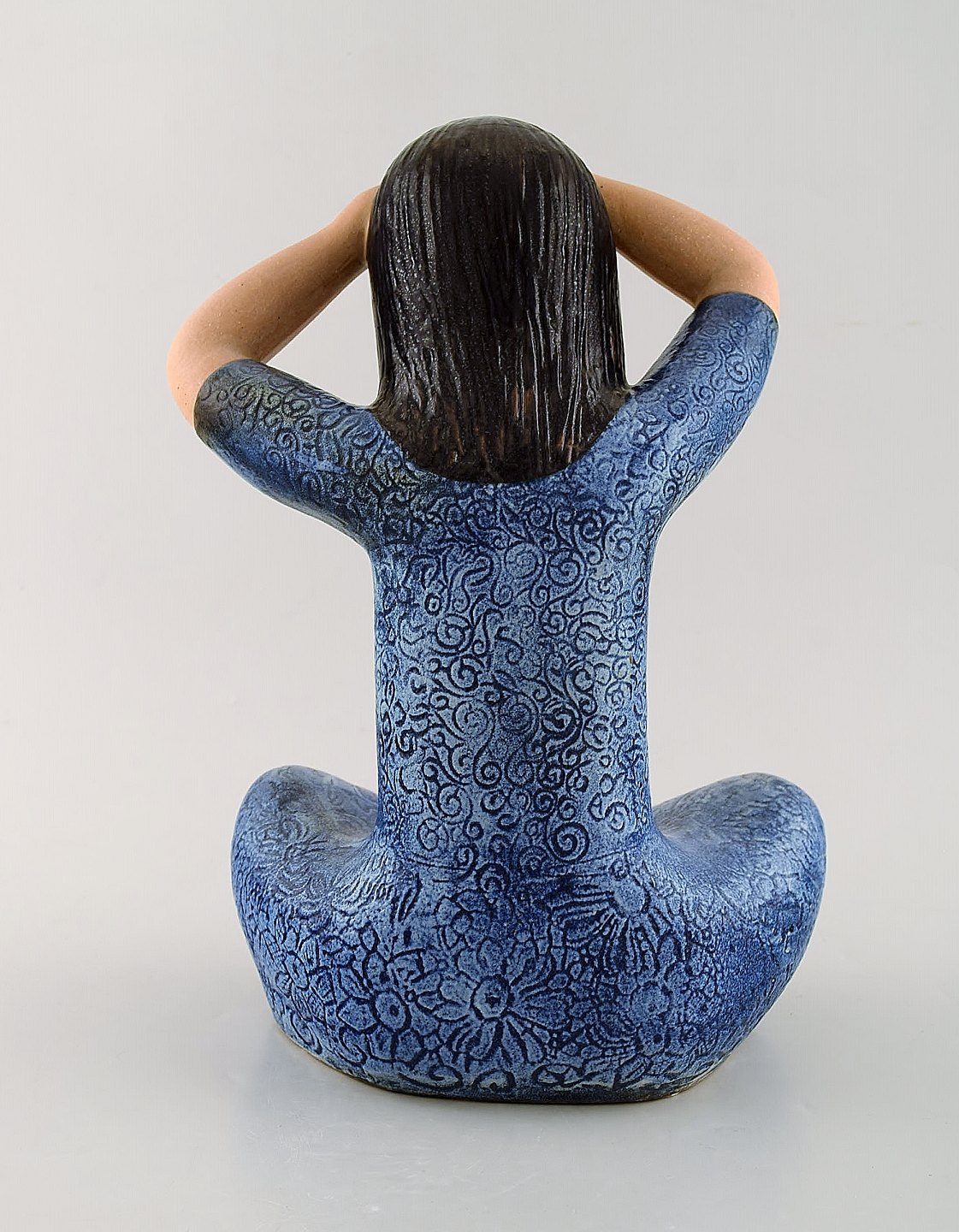 Lisa Larson for Gustavsberg. Stor sjælden "thailænder" figur i glaseret keramik. Sent 1900-tallet. Måler: 29,5 x 20 cm. I flot stand. Signeret.