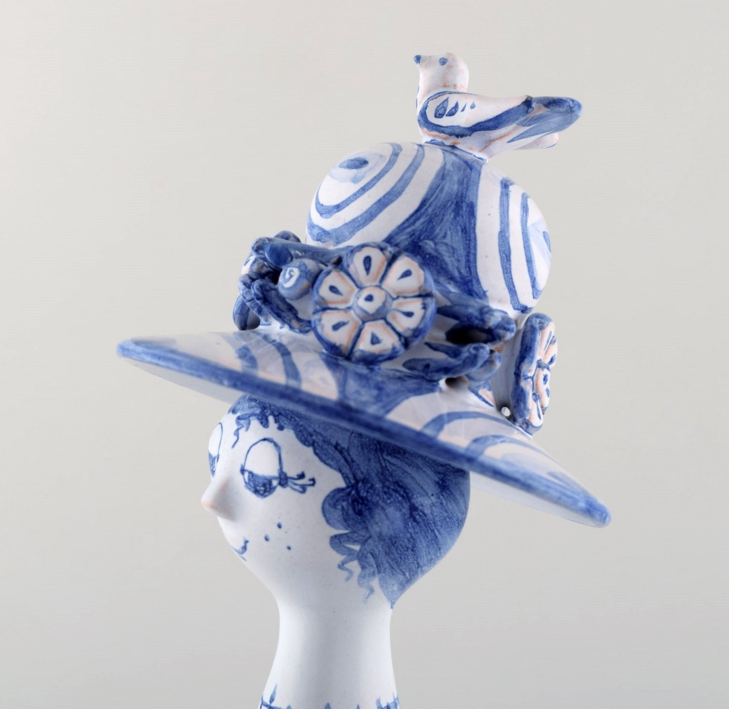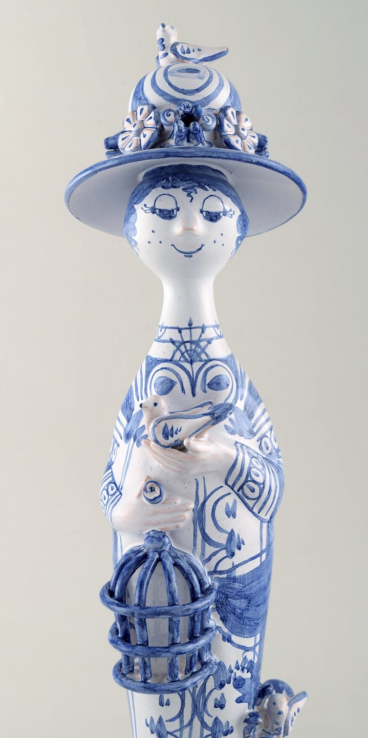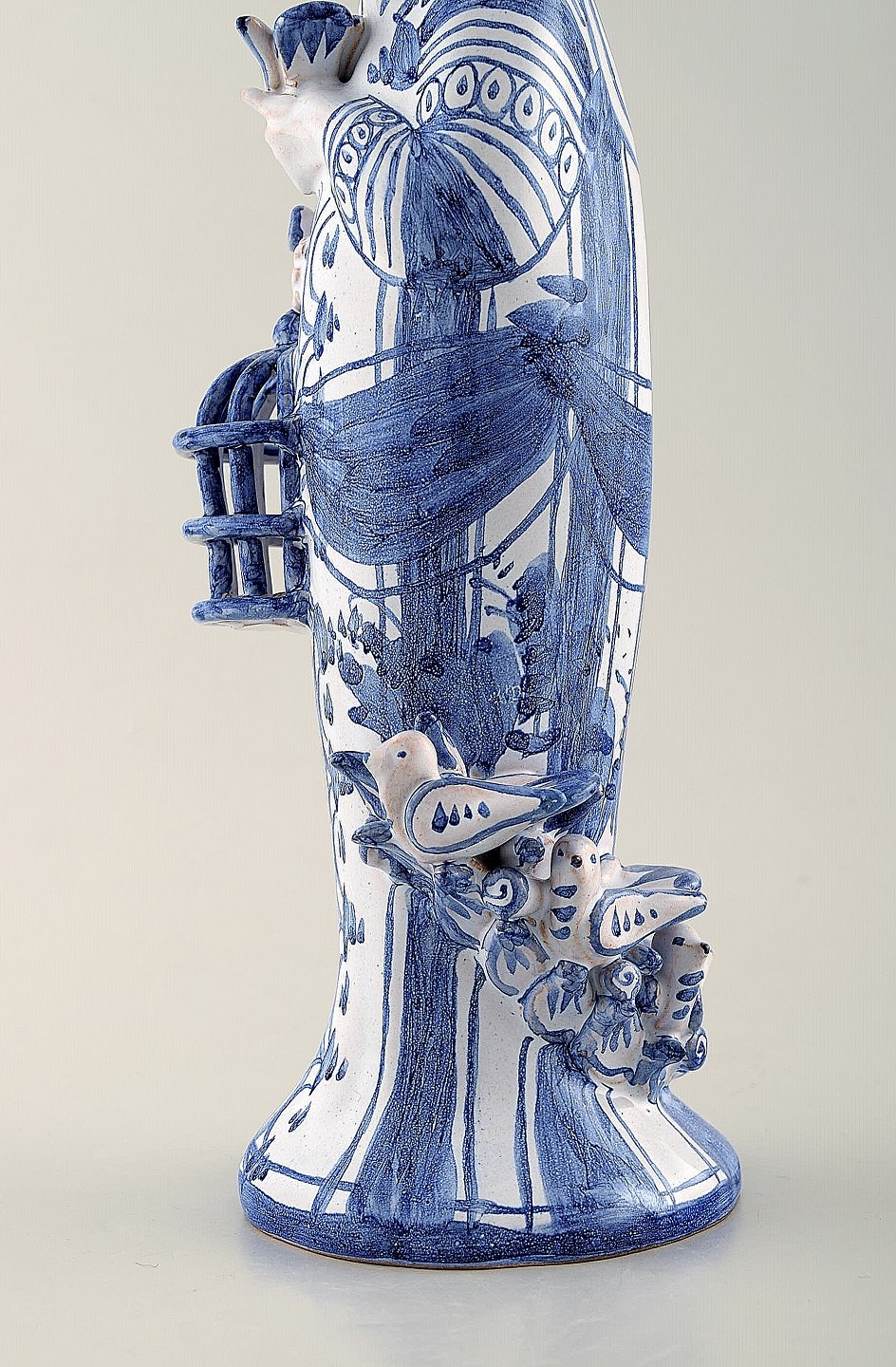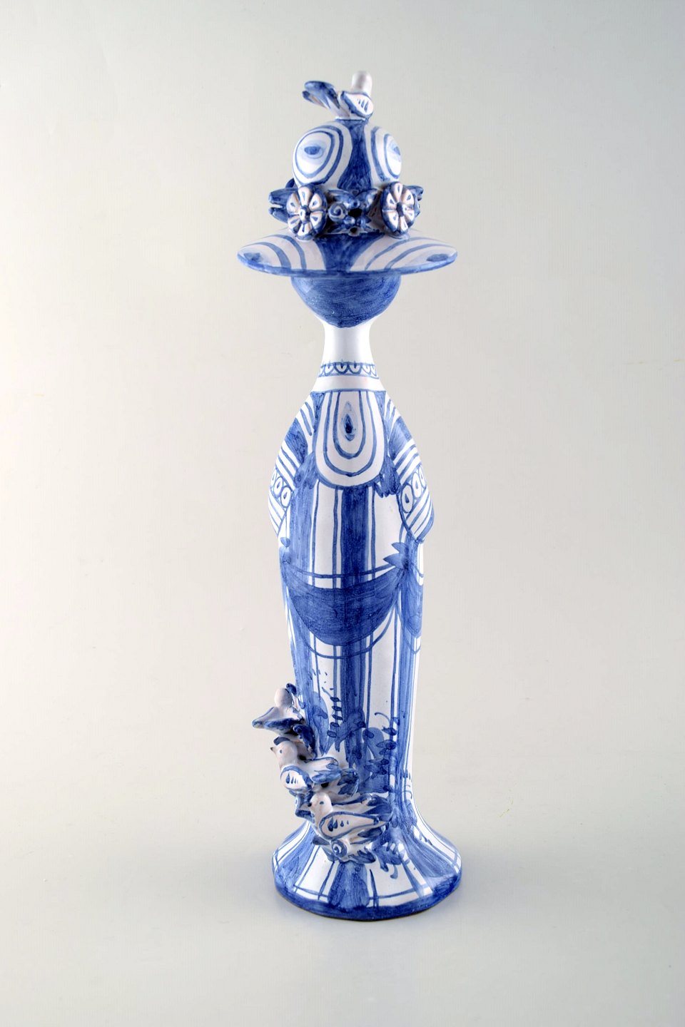 Bjørn Wiinblad unik keramik figur. "Forår" i blå "Årstiderne" fra 2012. Måler: 34,5 x 10 cm. Perfekt stand. Alle fire figurer fra "Årstiderne" på lager.