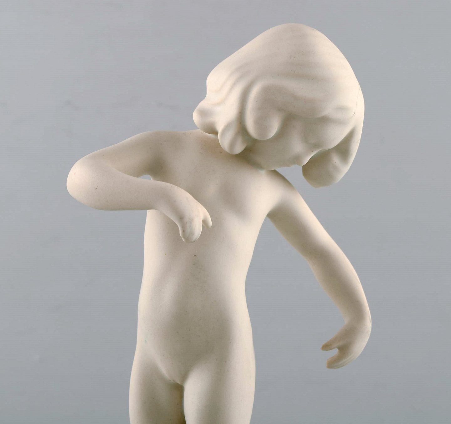 P. Ipsens Enke. Pige nr. 888. I sjælden hvid glasur. Venus Kalipygos, Design Kai Nielsen. 1940'erne. Måler: 22,2 x 10,5 cm. I perfekt stand.