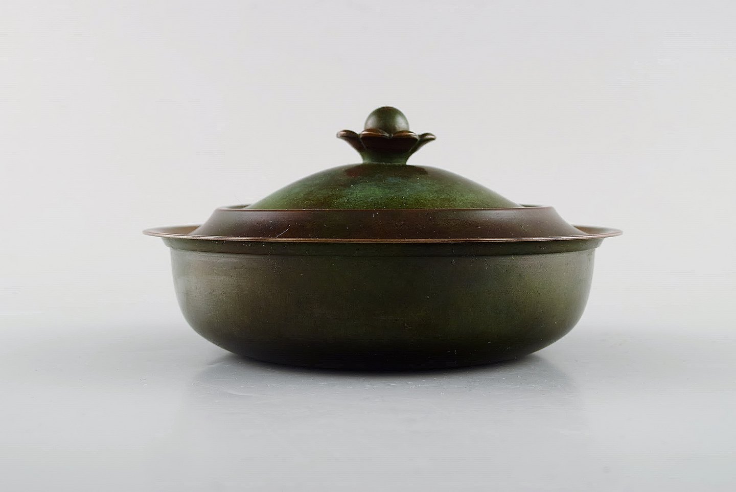 Just Andersen. Tidlig lågkrukke i legeret bronze. 1930'erne. I flot stand. Måler: 15,5 x 8 cm. Stemplet. Modelnummer: 188.