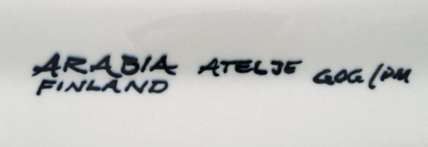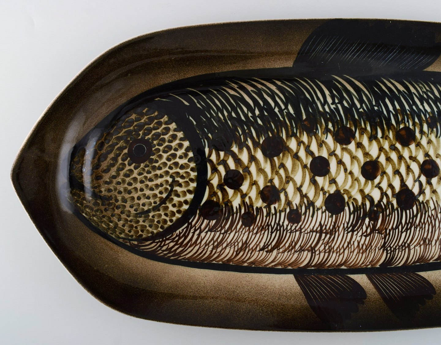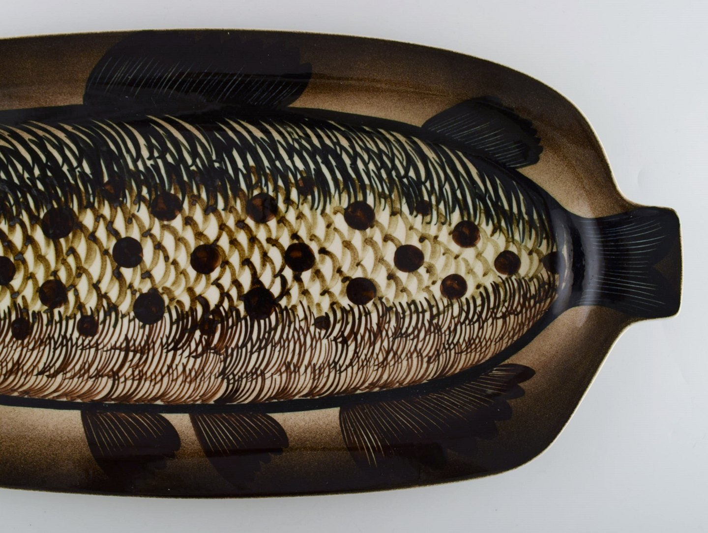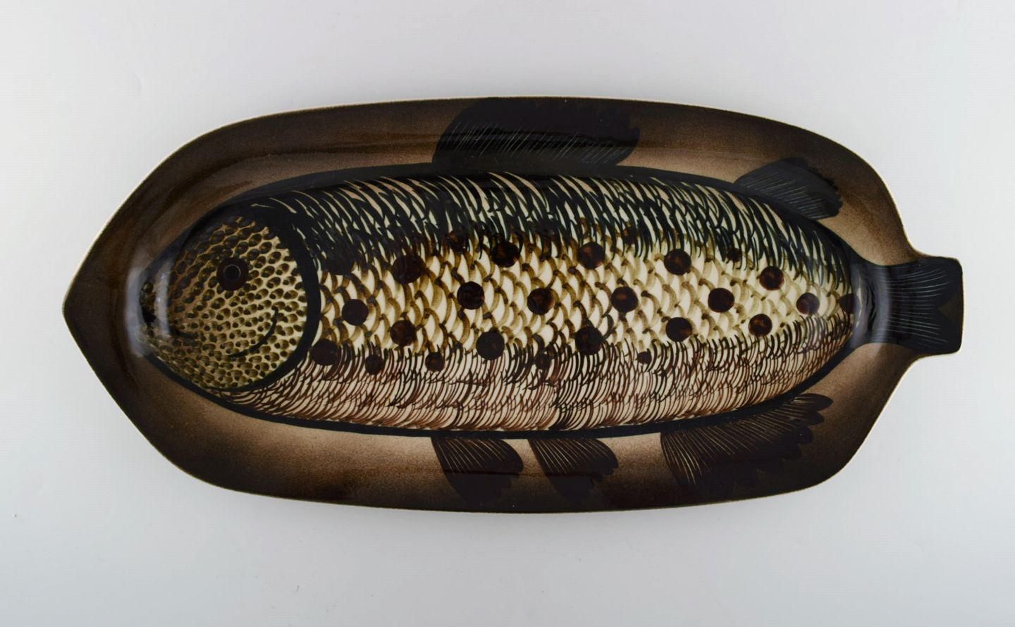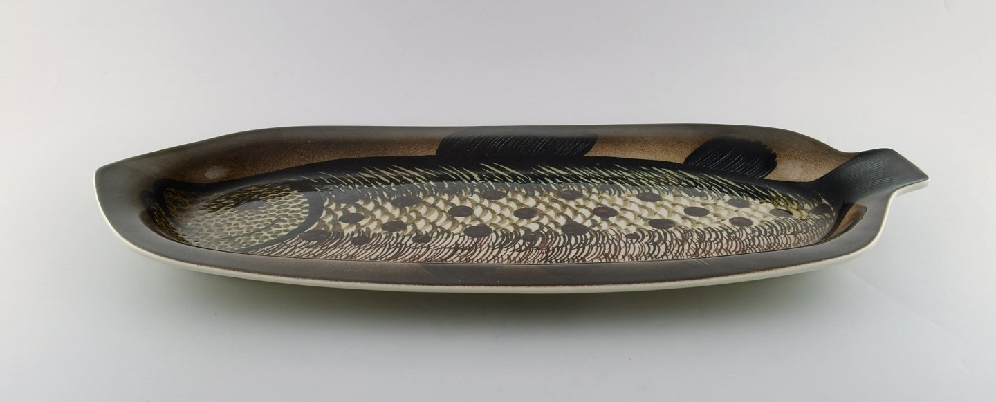 Gunvor Olin-Grönqvist for Arabia. Enormt fiskefad i håndmalet keramik. 1960'erne. I flot stand. Måler: 60 x 28 cm. Signeret.