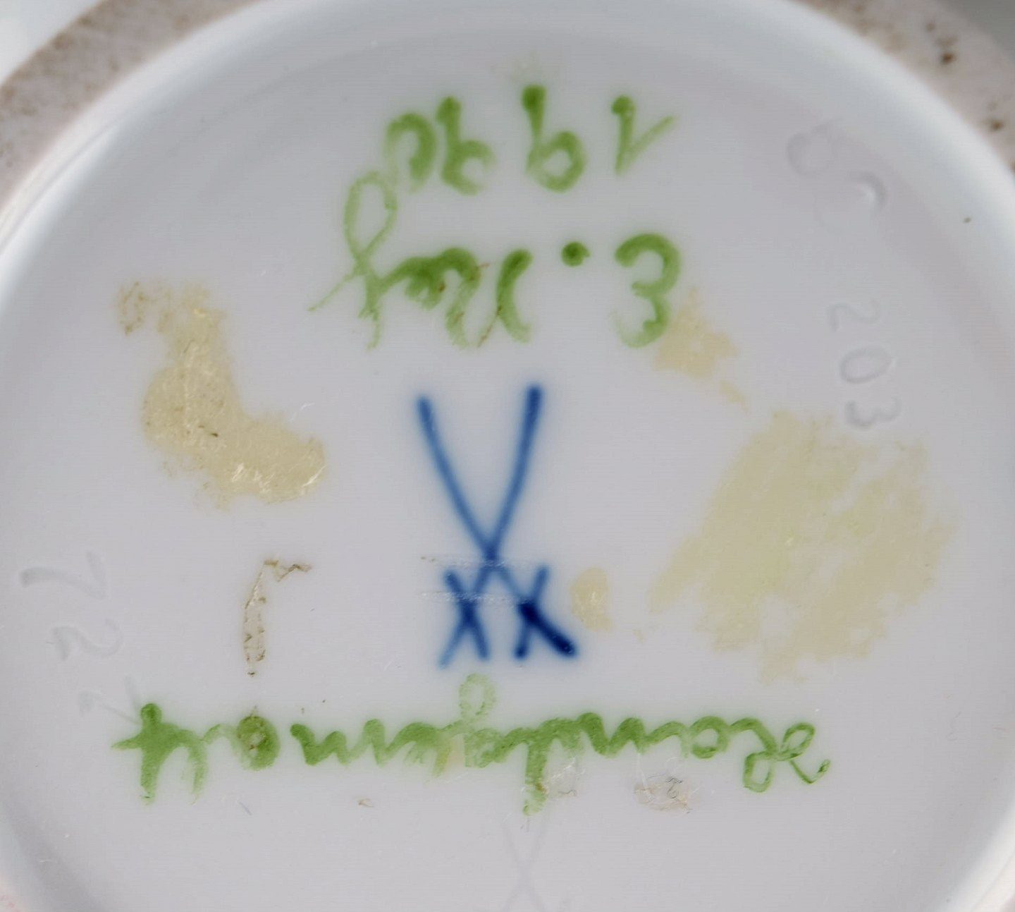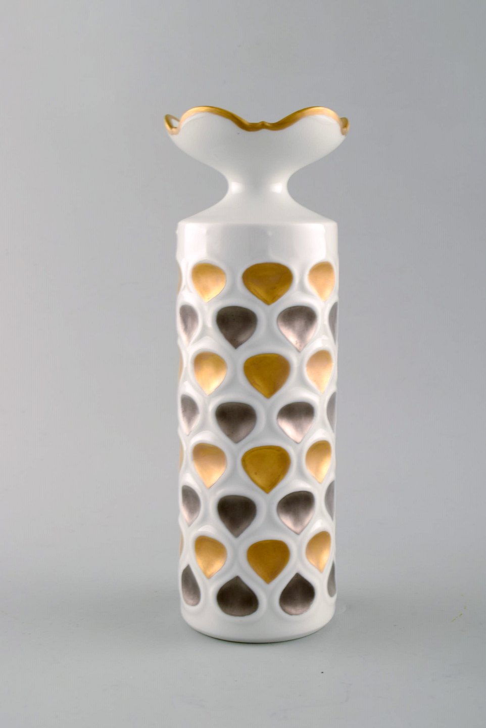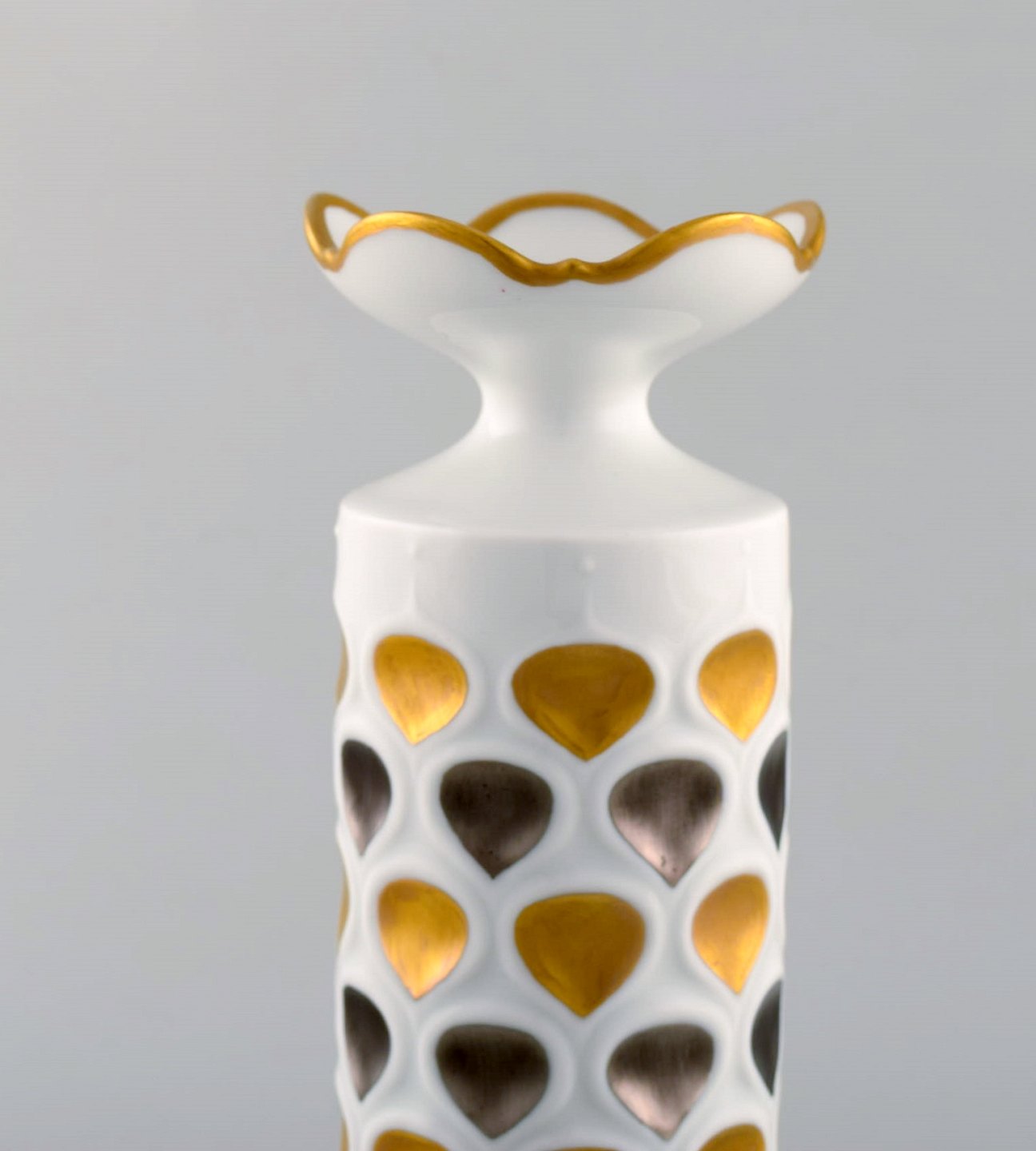 Meissen vase. Håndmalet gulddekoration. Geometrisk mønster. 1900-tallet. I flot stand. Stemplet. Måler: 23 x 8 cm.