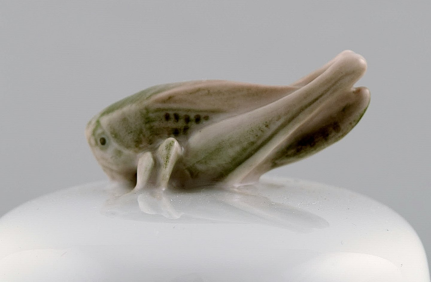 Royal Copenhagen. Lågkrukke i porcelæn med græshoppe og blomster. Ca. 1920. Modelnummer: 364/254. I flot stand. Måler: 12,5 x 10,5 cm. Stemplet. 1. Sortering.