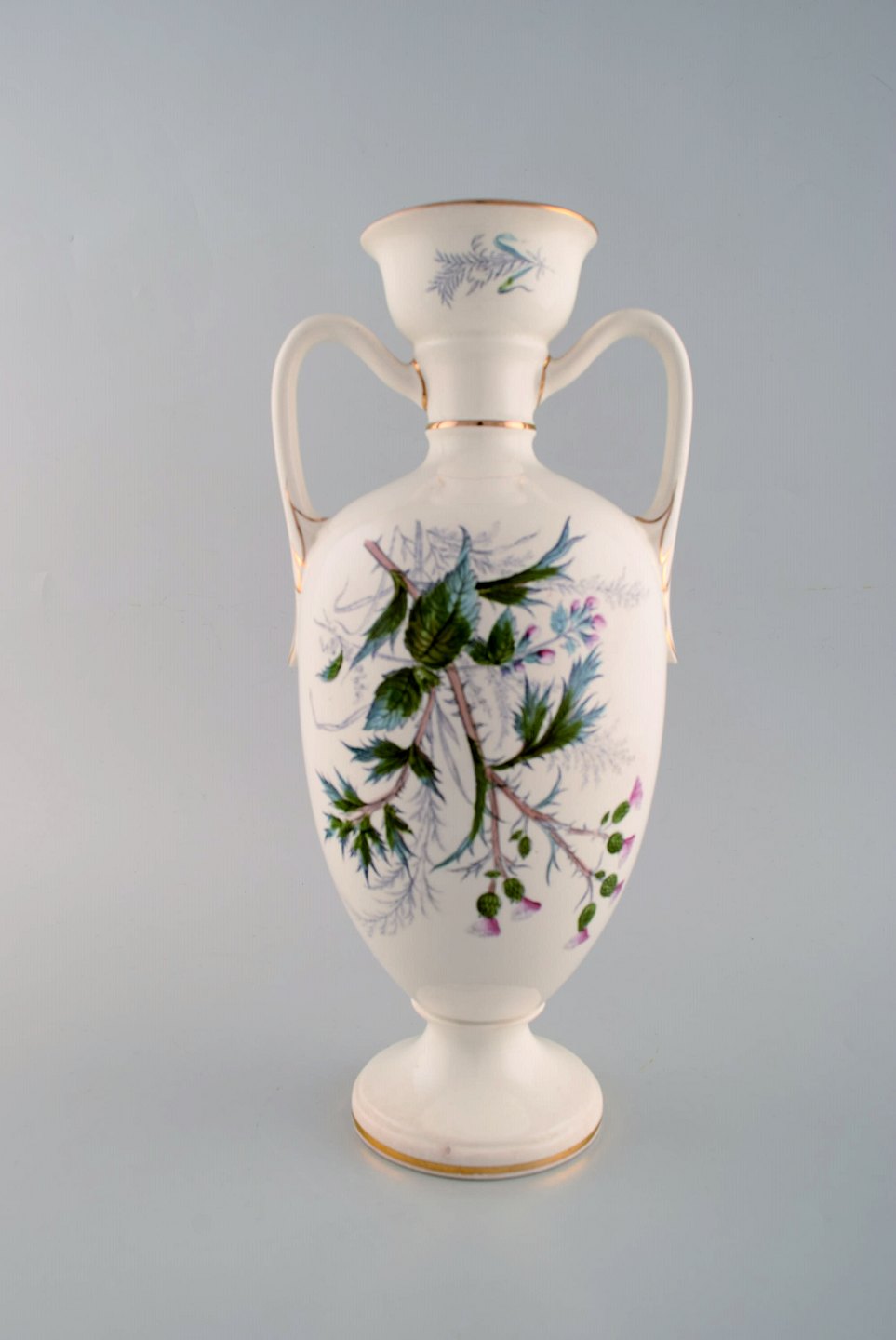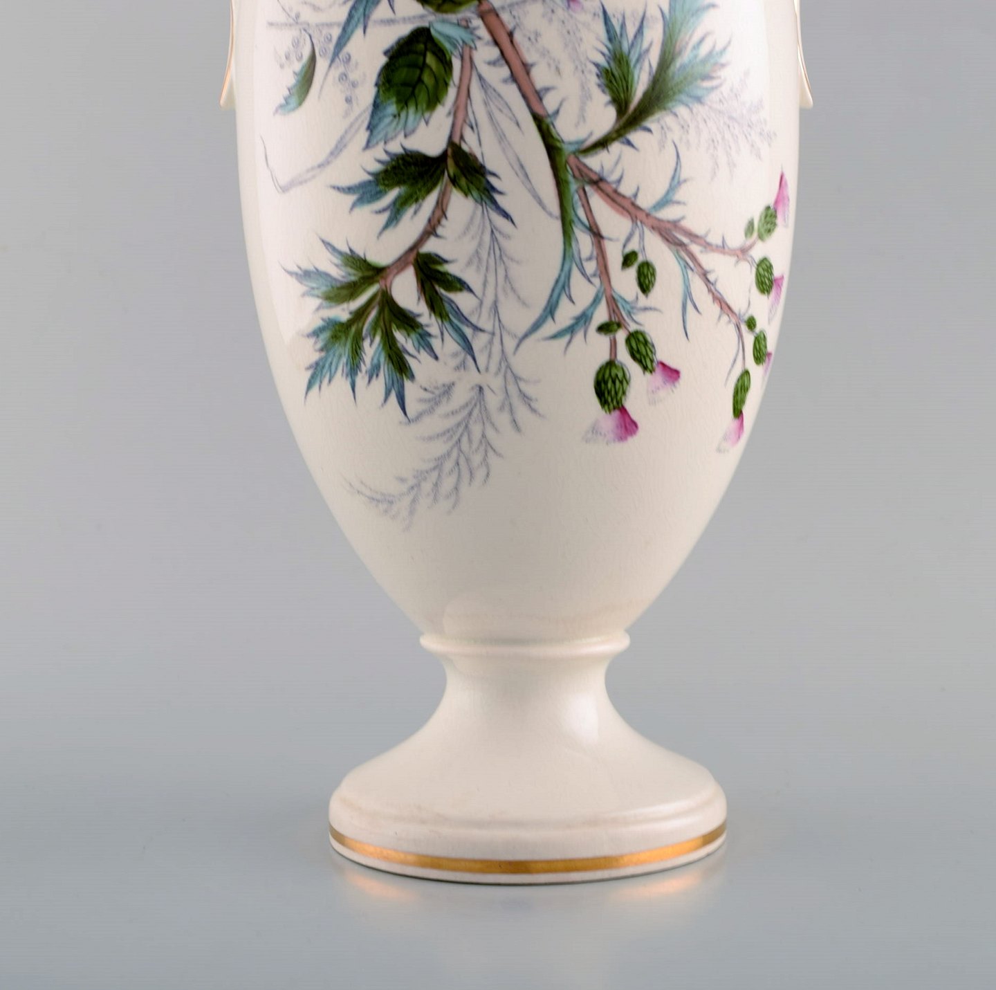 Tidlig Rörstrand vase i fajance med blomstermotiv. Ca. 1920. Måler: 34,5 x 16 cm. I flot stand. Stemplet.