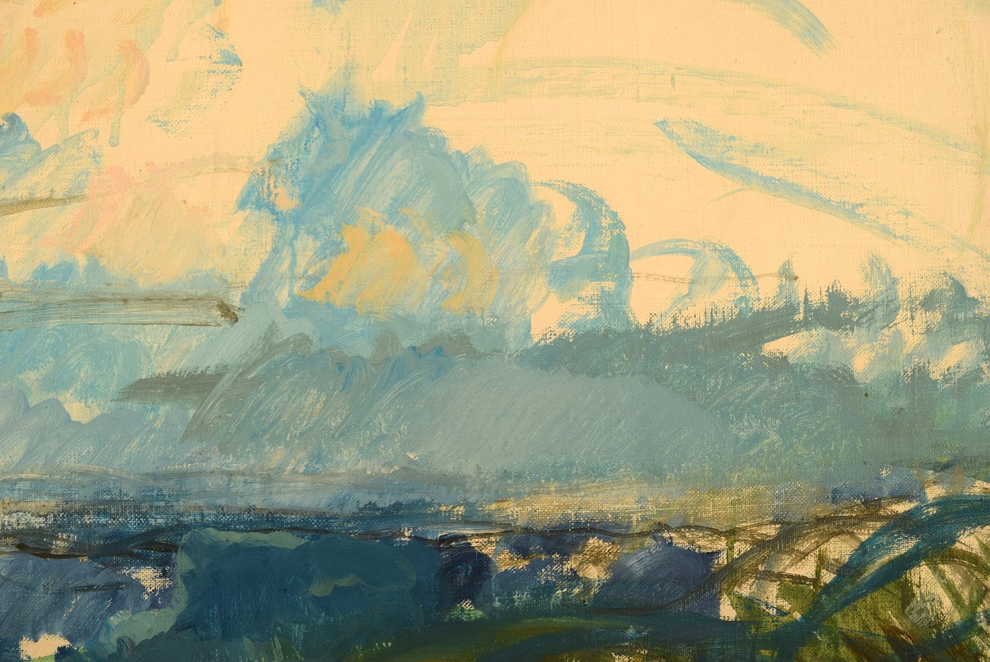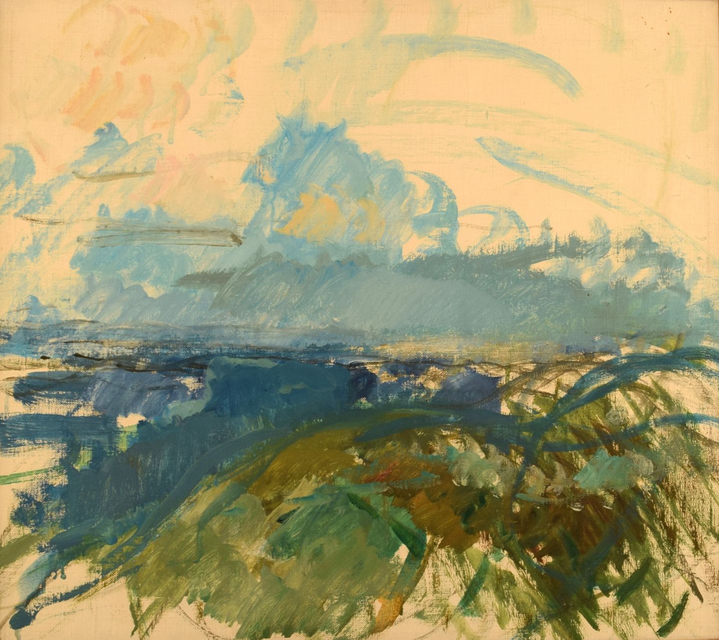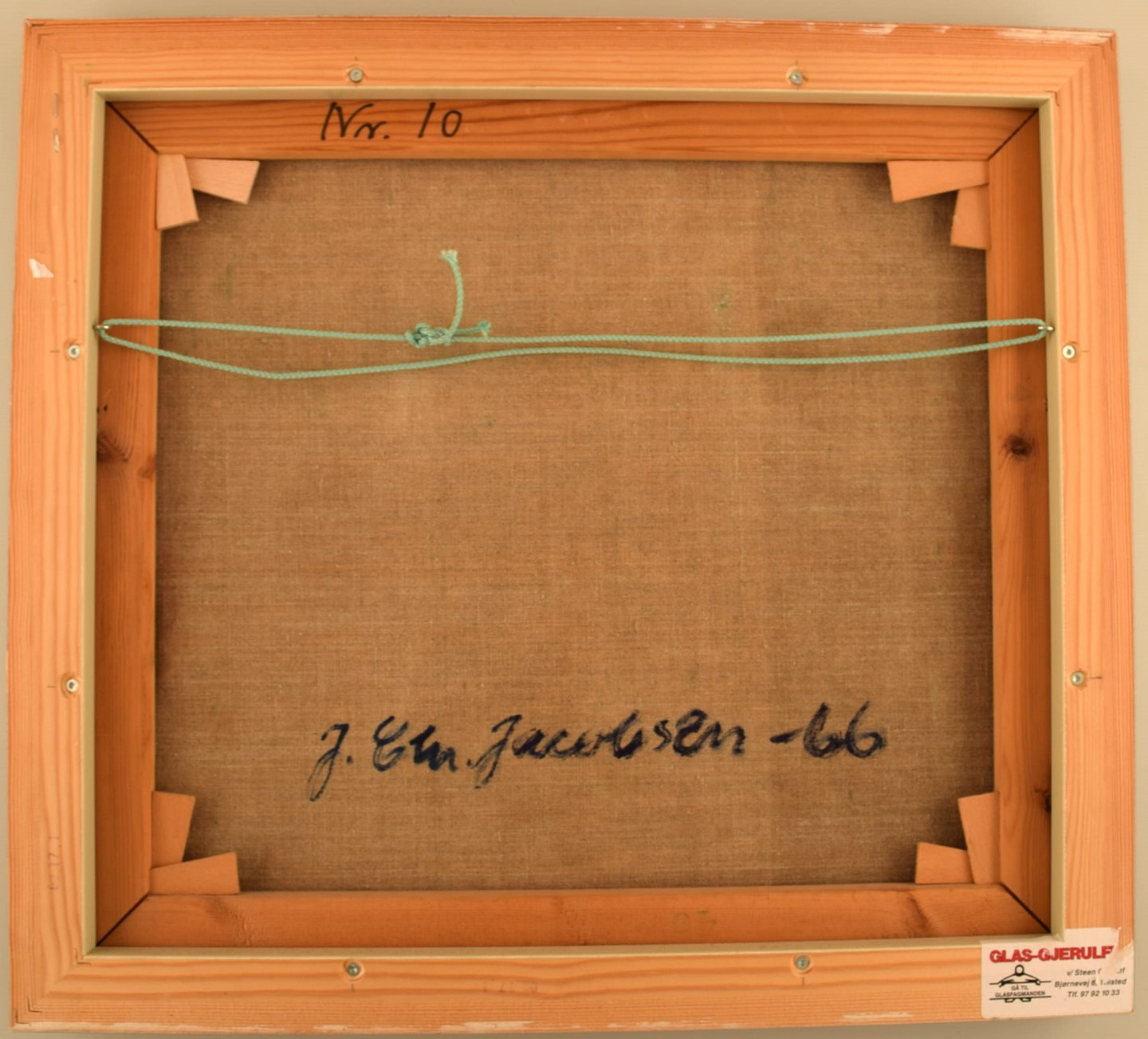 Jens Chr. jacobsen. Modernistisk landskab. Olie på lærred. Dateret 1966. I flot stand. Signeret. Lærredet måler: 46 x 41 cm. Rammen måler: 1,5 cm.