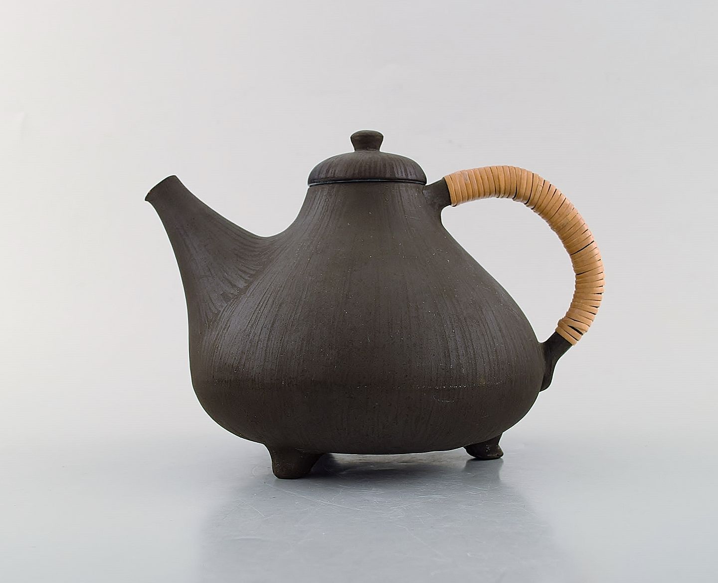 Hegnetslund Lervarefabrik. Sjælden tekande i stentøj med indvendig turkis glasur og hank i flet. 1960'erne. I flot stand. Måler: 20 x 14,5 cm. Stemplet.