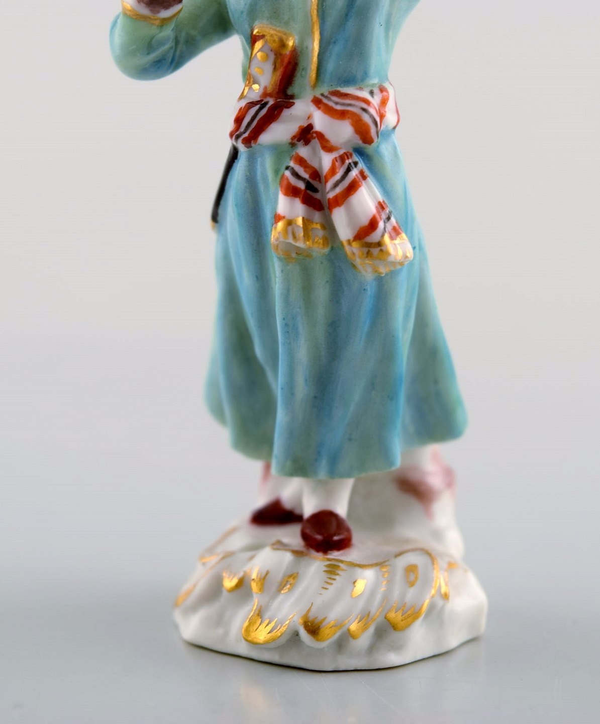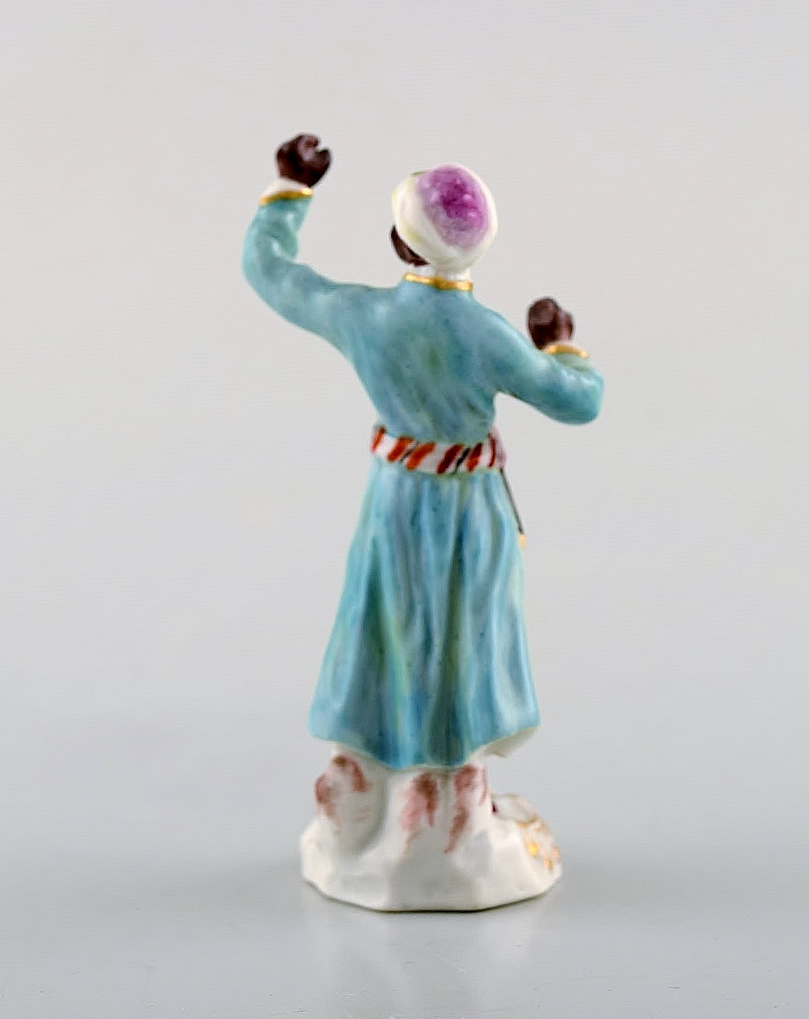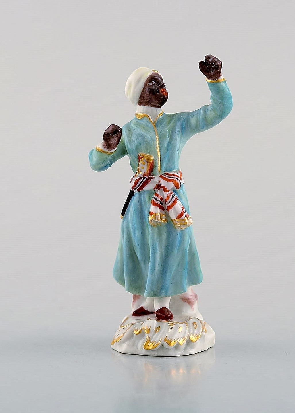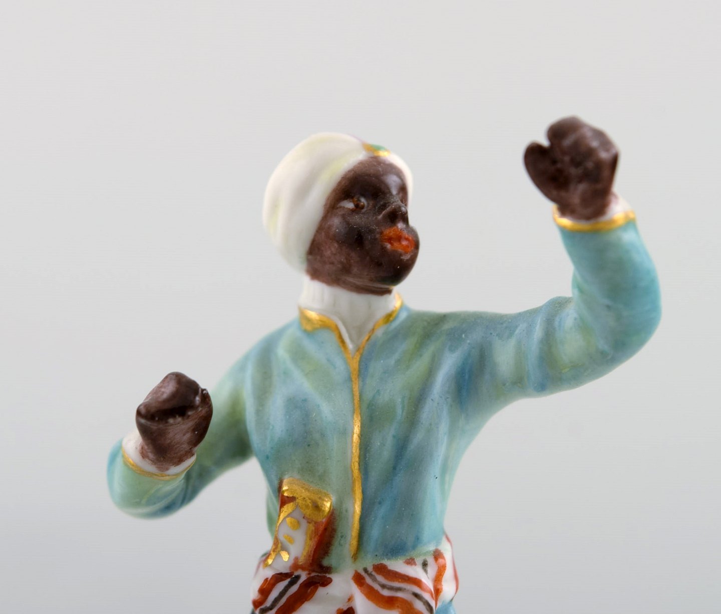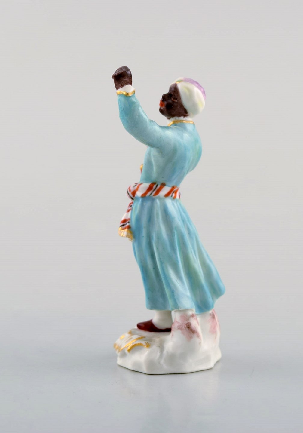 Sjælden antik Meissen miniature figur efter Johann Joachim Kändler i håndmalet porcelæn. Morian. Dateret 1850-80. Måler: 6,8 x 3,5 cm. I flot stand. Stemplet.