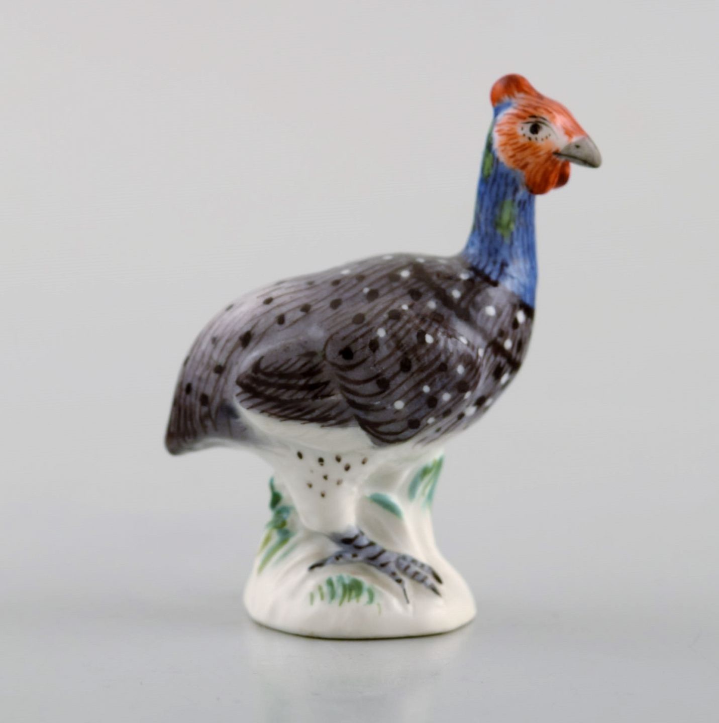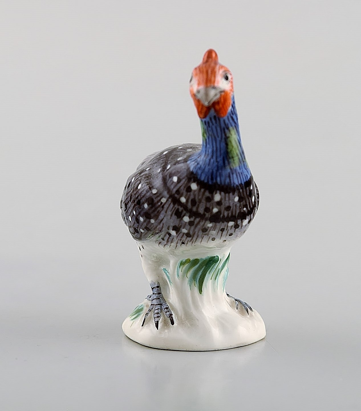 Sjælden antik Meissen miniature figur efter Johann Joachim Kändler i håndmalet porcelæn. Kalkun. Dateret 1850-80. Måler: 5,2 x 4 cm. I flot stand. Stemplet.