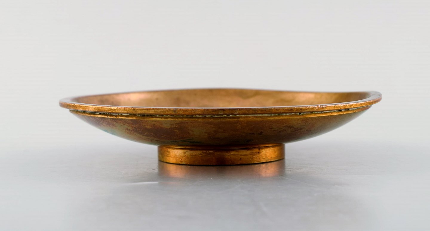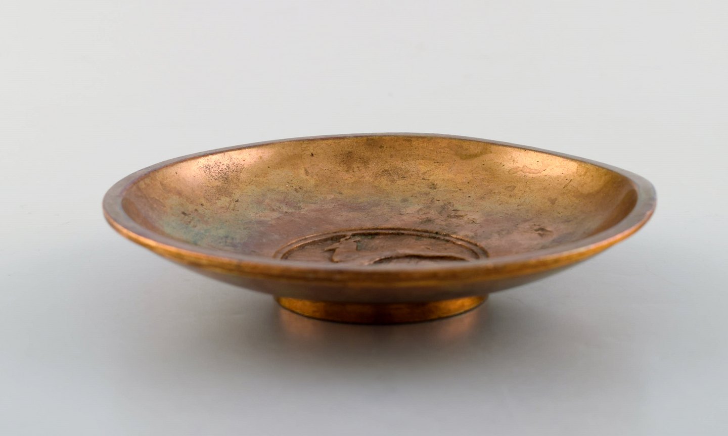 Evan Jensen, Danmark. Art deco skål i bronze med springende buk. 1940'erne. Måler: 14,2 x 2,8 cm. I flot stand. Stemplet.