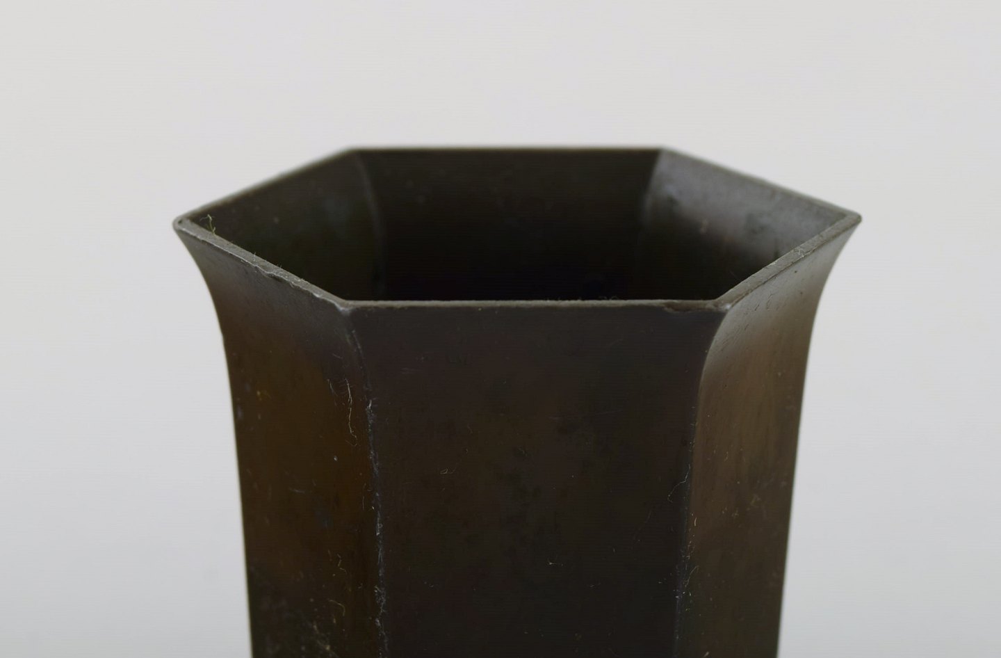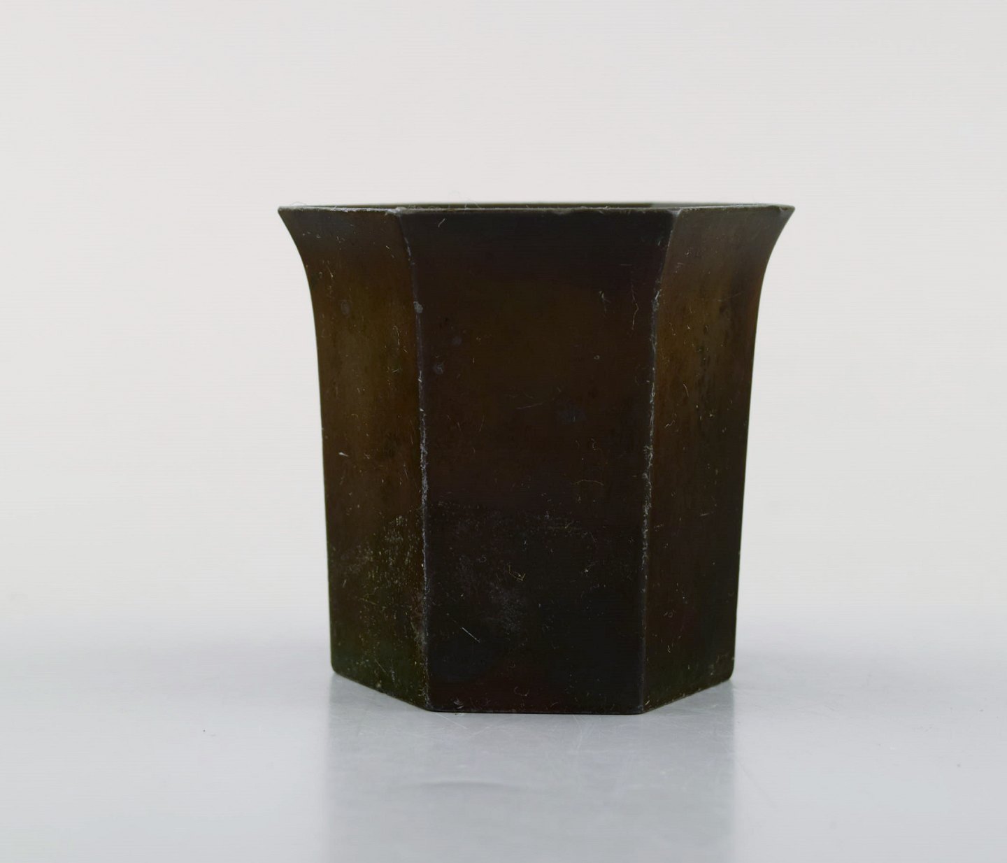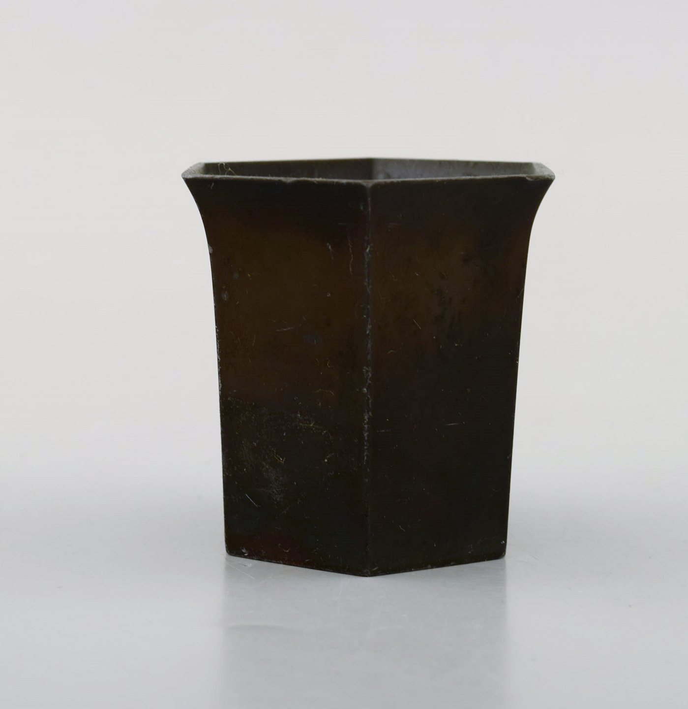 Just Andersen. Et par vaser i diskometal. 1920/30'erne. I god stand med brugspræg. Måler: 6,5 x 6 cm. Stemplet. Modelnummer: D25.
