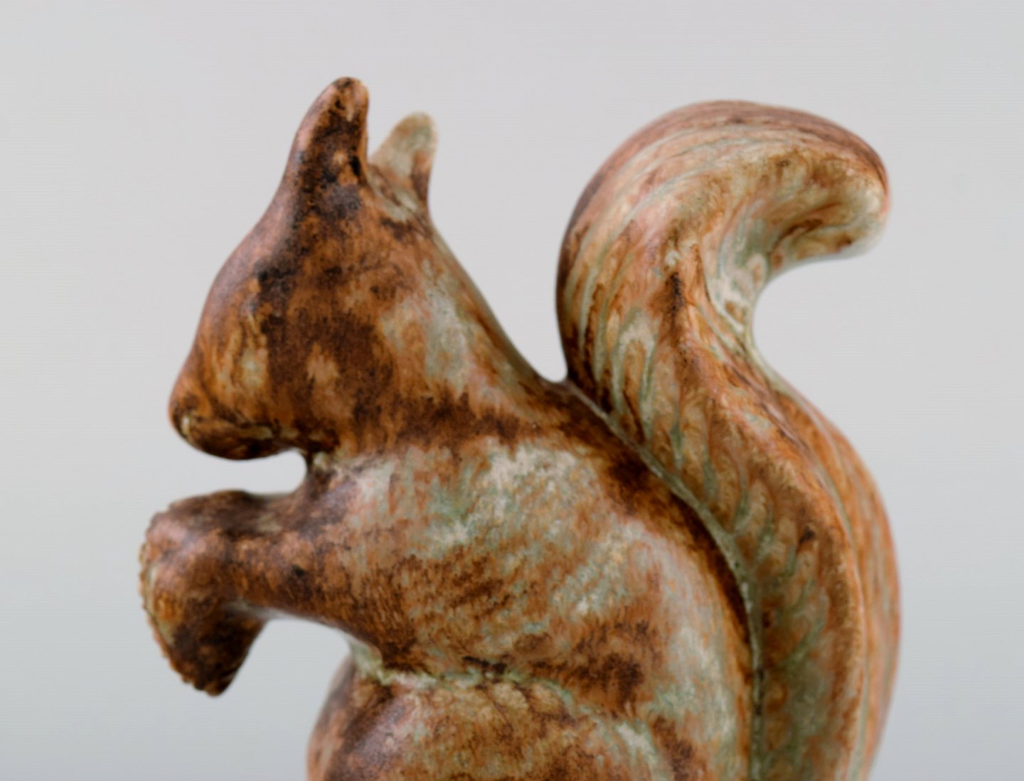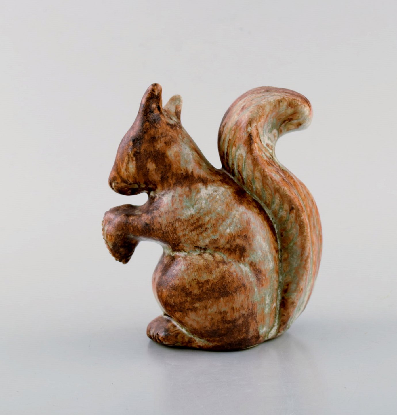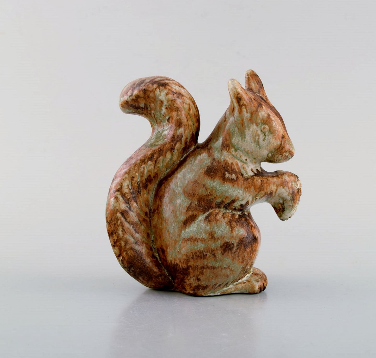 Ego Stengods. Lidköping, Sverige. Unika egern i glaseret stentøj. 1960'erne. Måler: 13 x 11,5 cm. I flot stand. Stemplet.