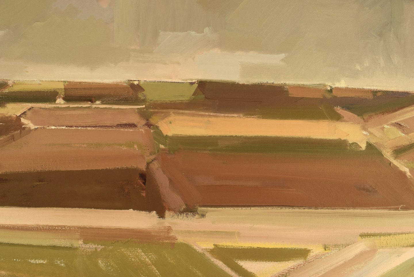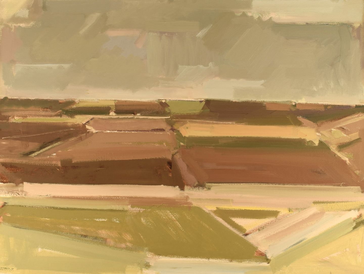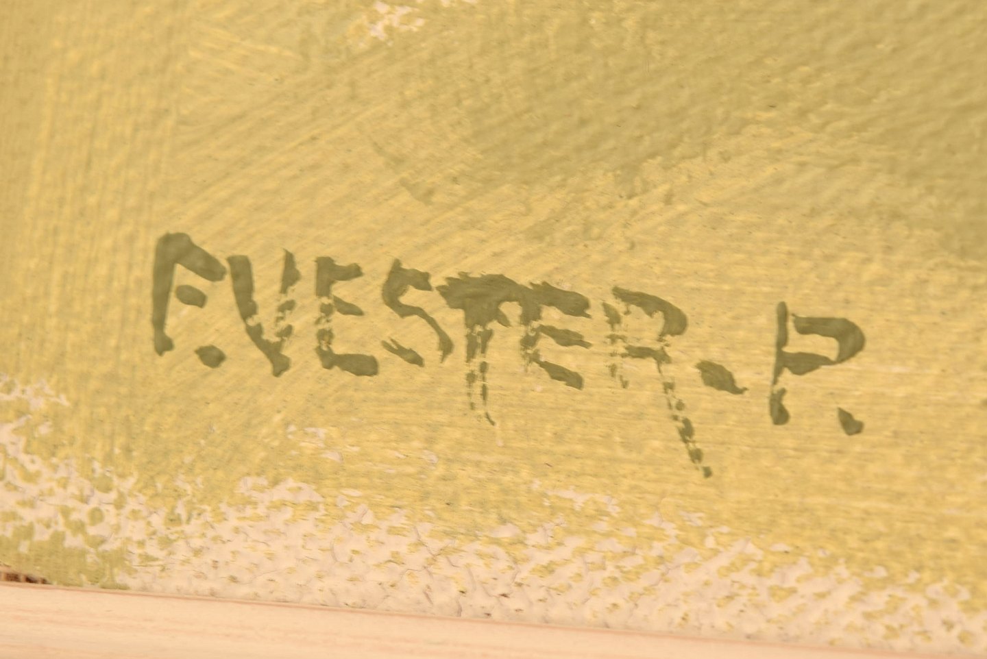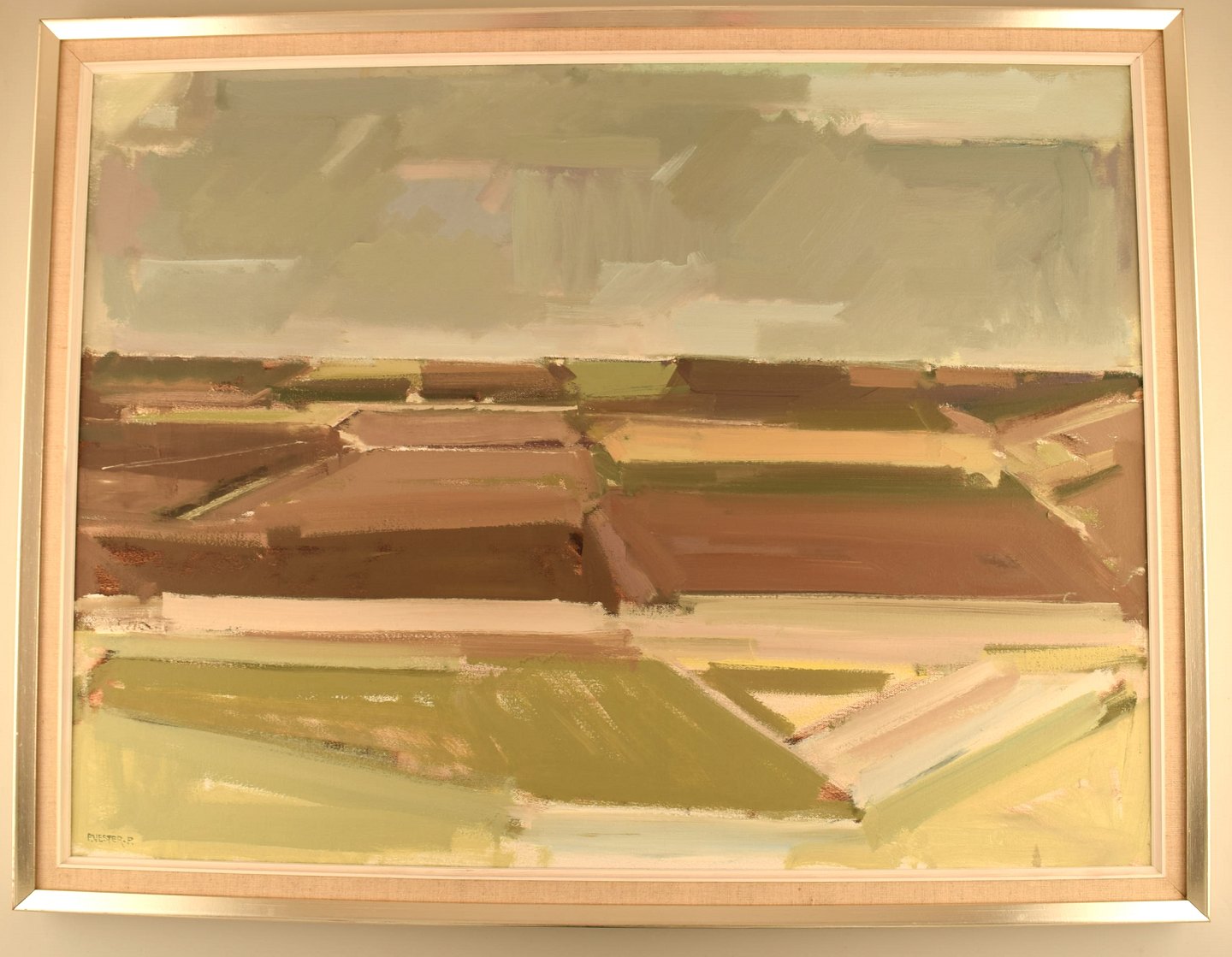 Frans Vester Pedersen (1934-1972). Modernistisk landskab. Olie på lærred. I flot stand. Signeret. Lærredet måler: 79 x 59 cm. Rammen måler: 4 cm.