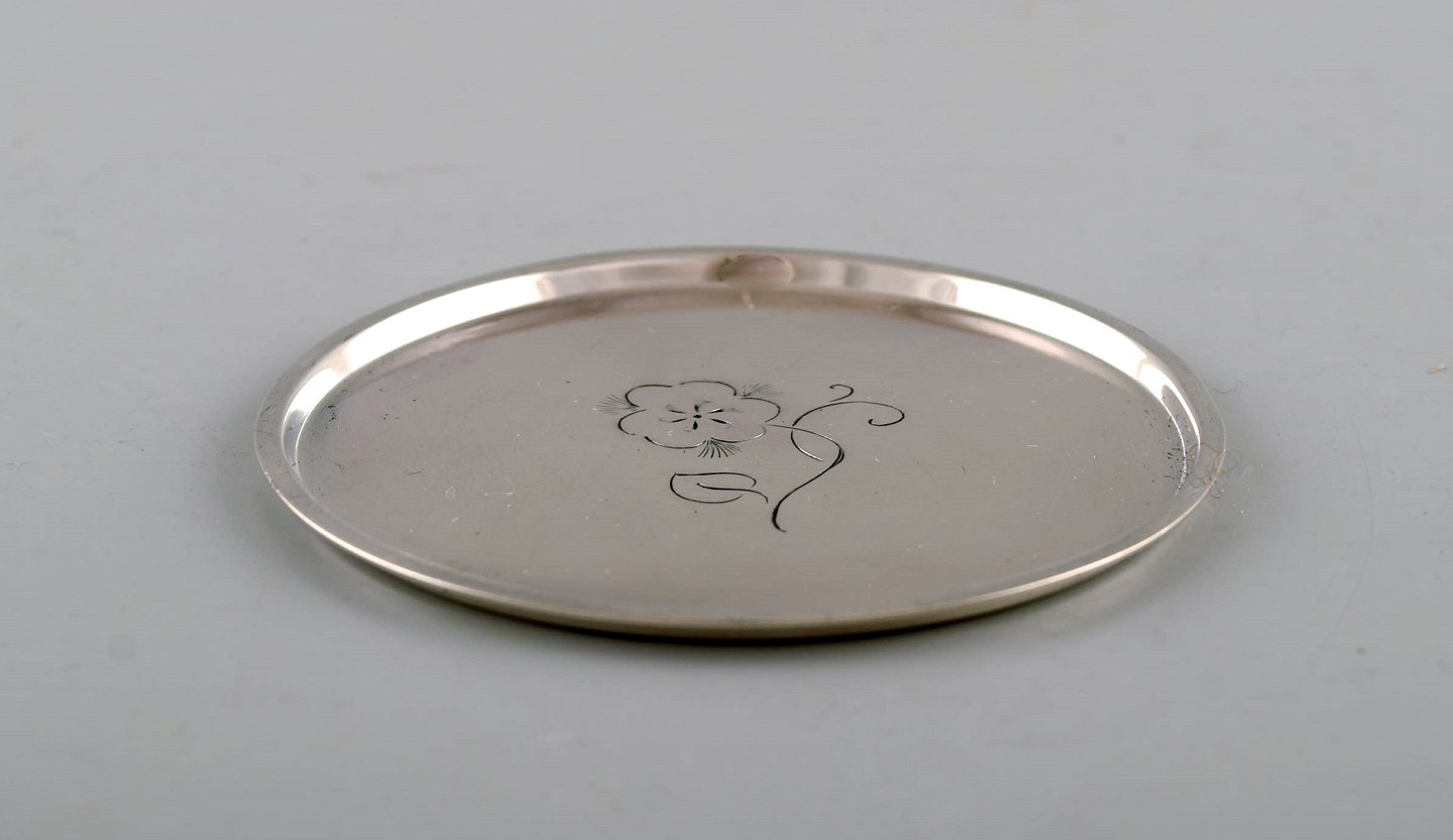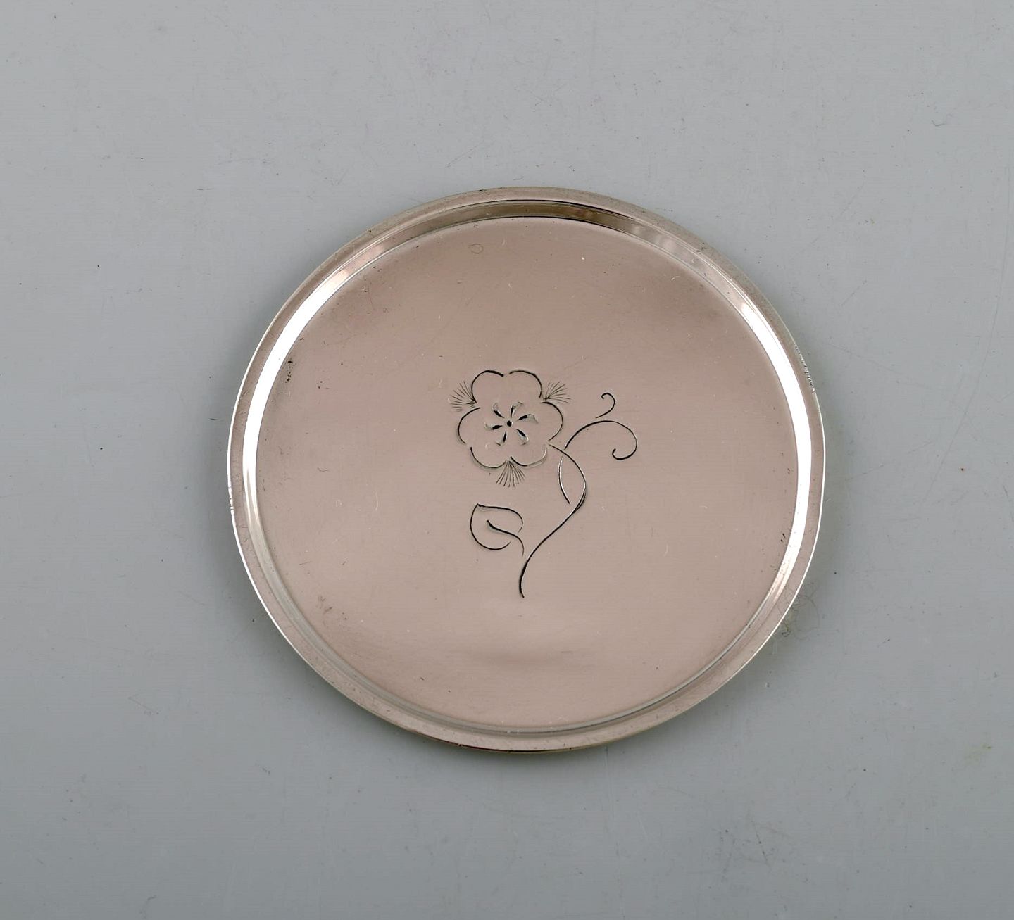 Just Andersen, Danmark. Flaskebakke i sterlingsølv med blomstermotiv. 1930/40'erne. Diameter: 7,8 cm. Stemplet. I flot stand.