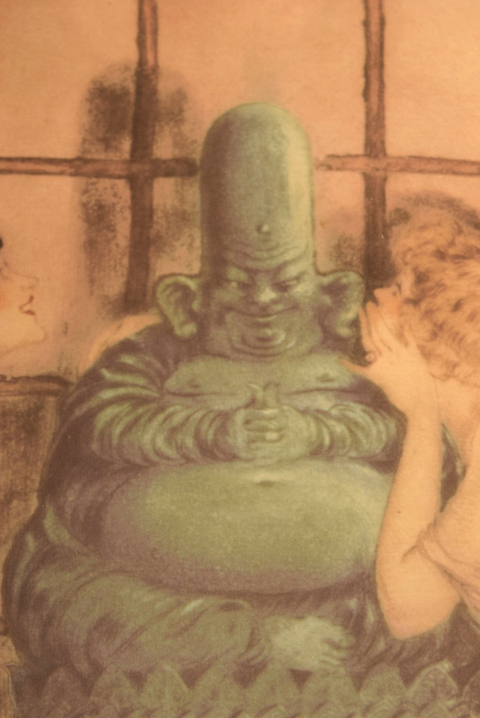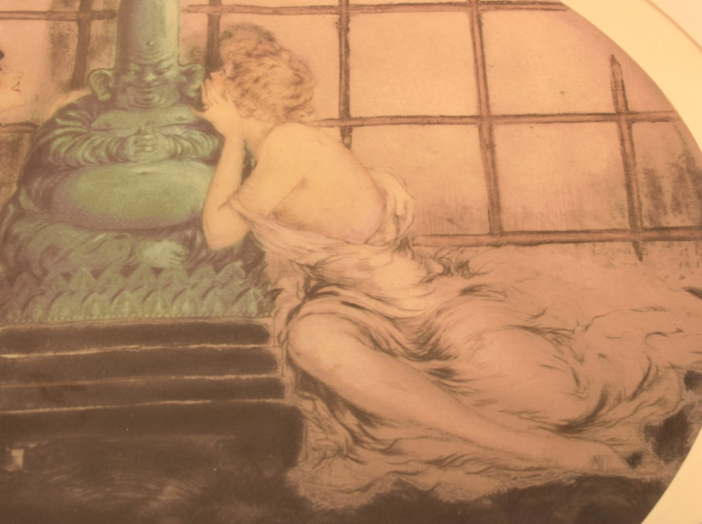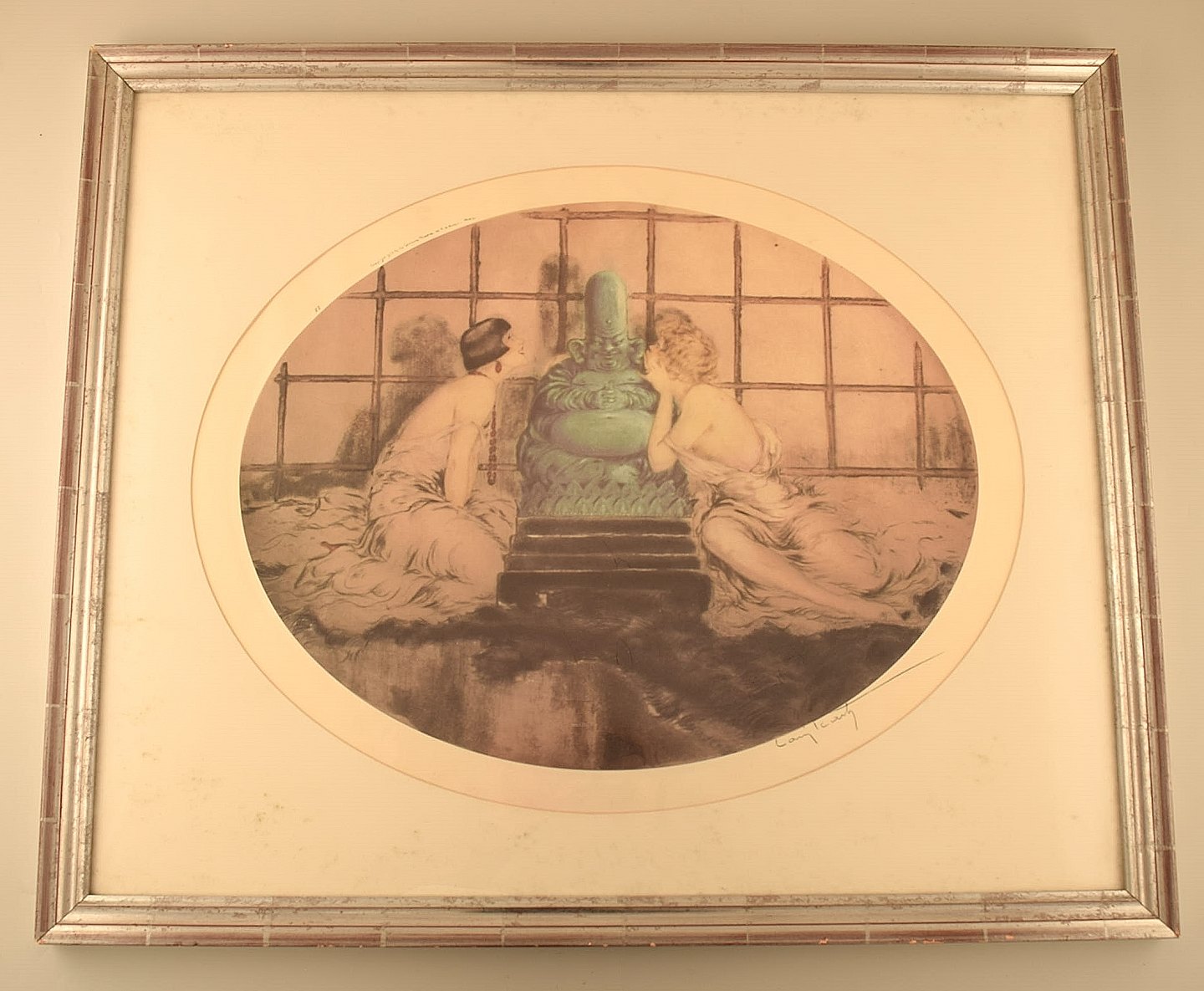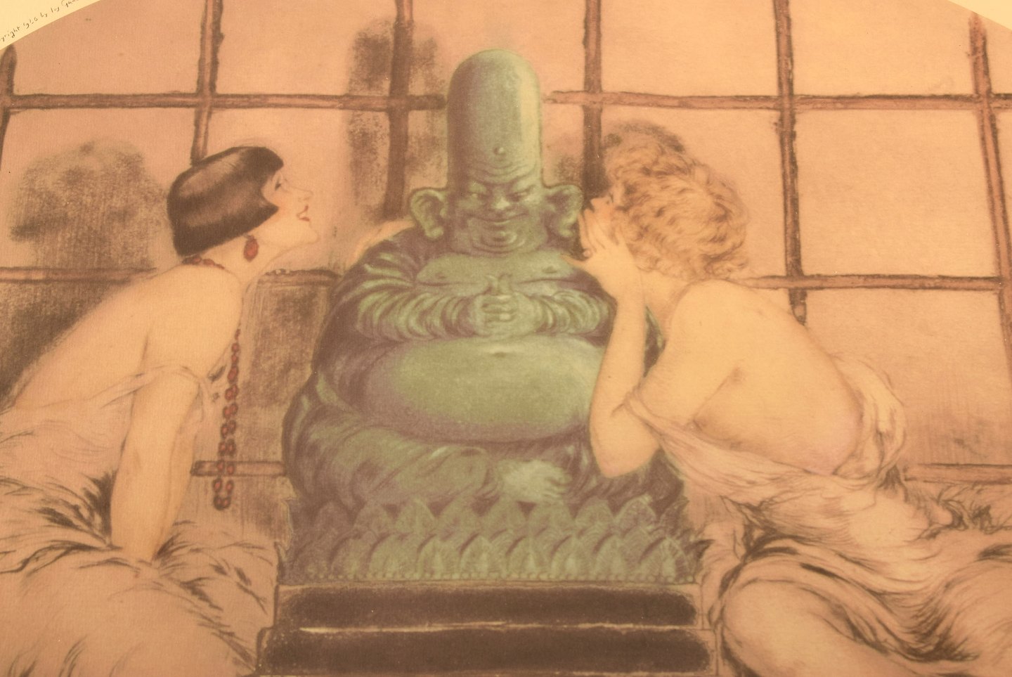 Louis Icart (1888-1950). Radering på papir. Kvinder og buddha. 1920/30'erne. Signeret med blyant. I flot stand. Måler: 52 x 41 cm. Rammen måler: 3,5 cm.