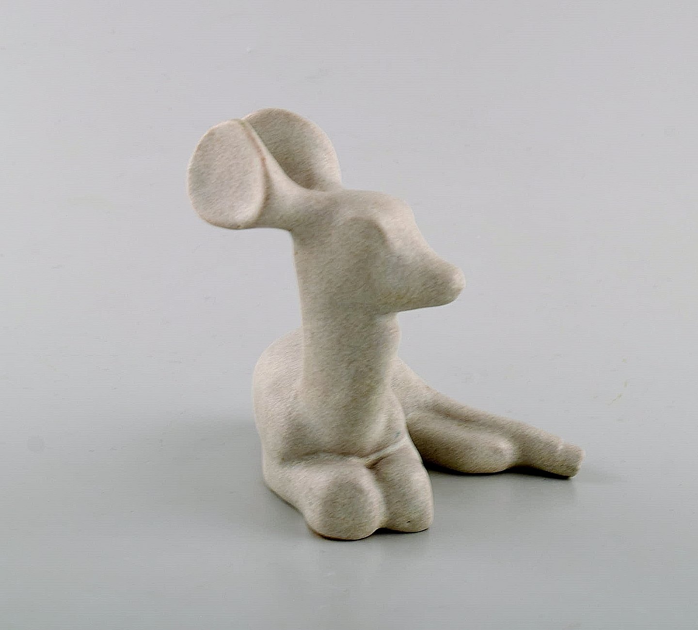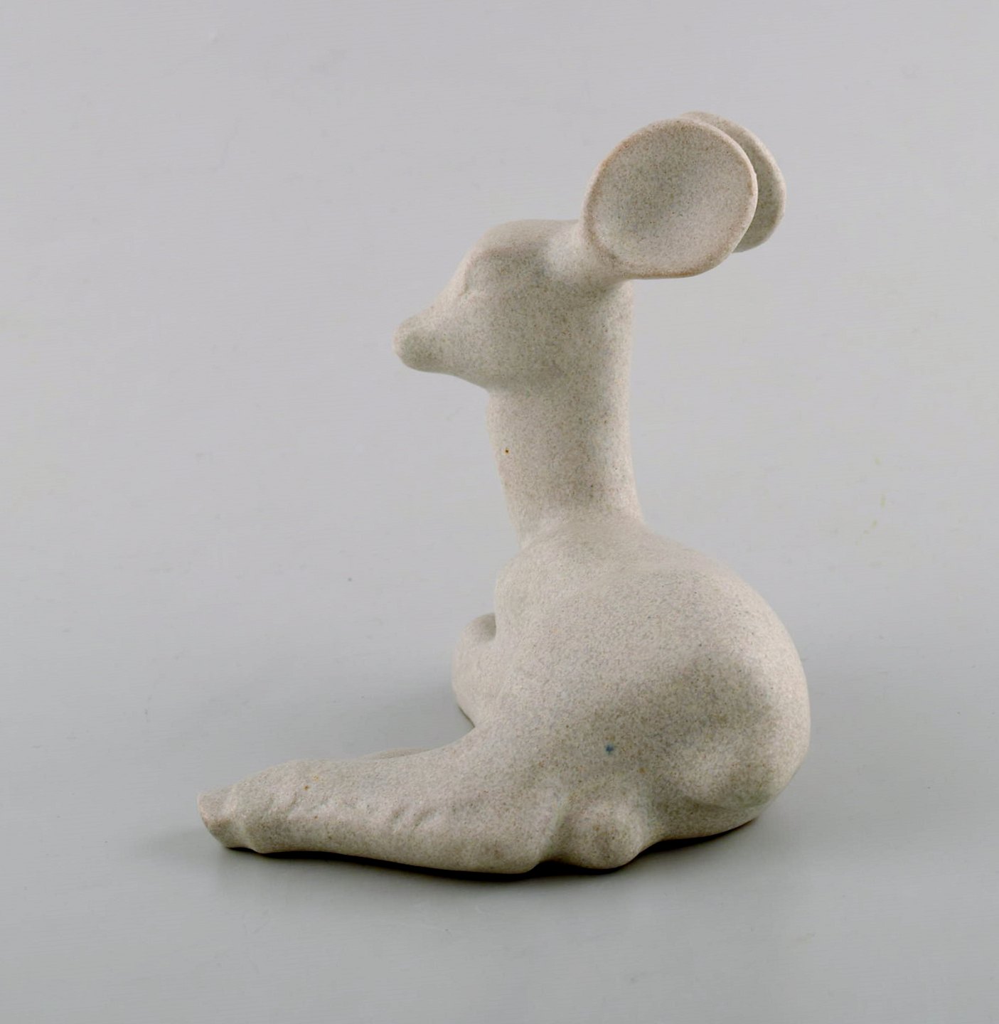 Arne Bang, Danmark. Liggende hjort i glaseret keramik. 1940'erne. Stemplet AB 16. I perfekt stand. Måler: 12 x 10,5 cm.