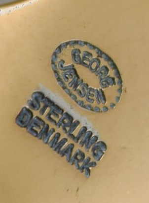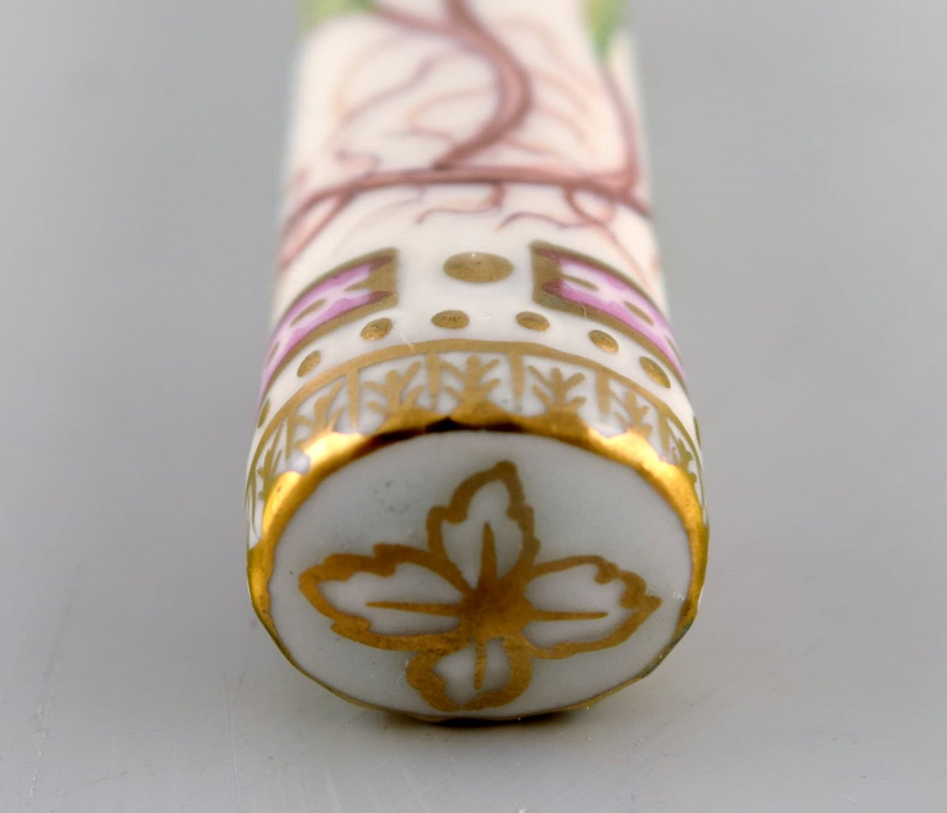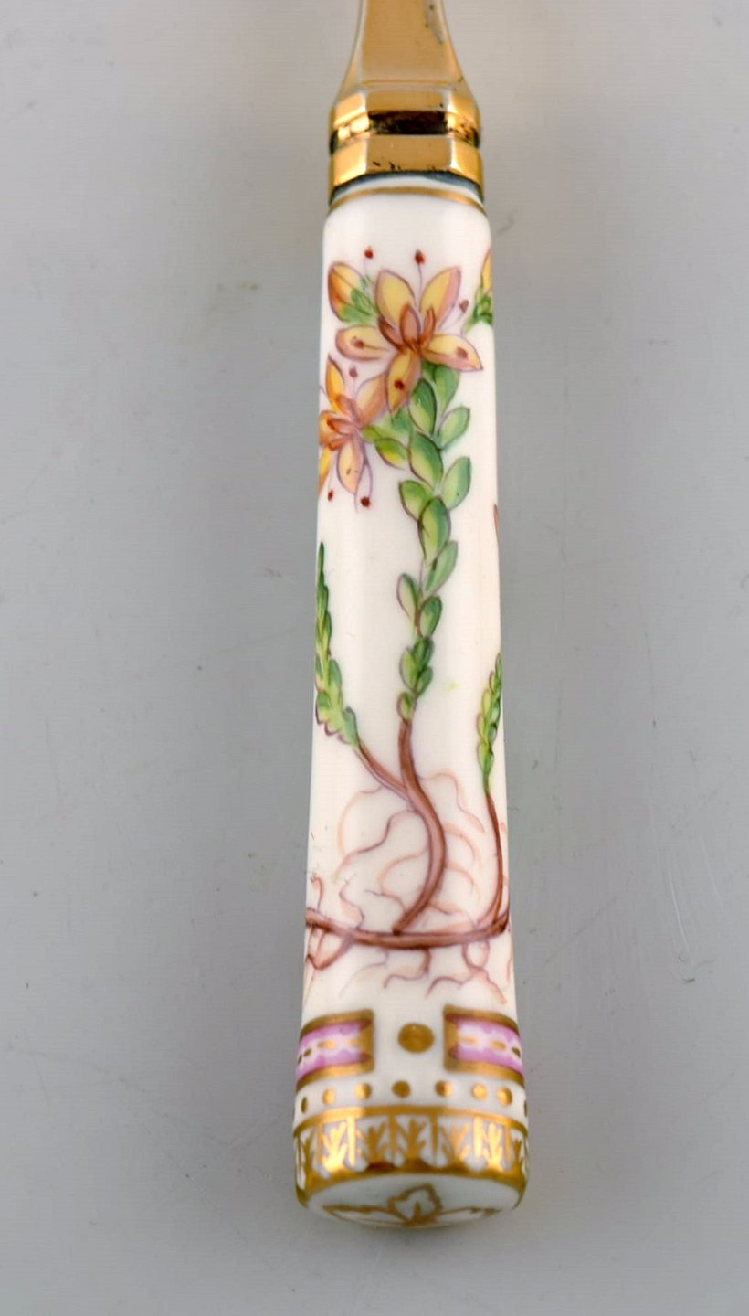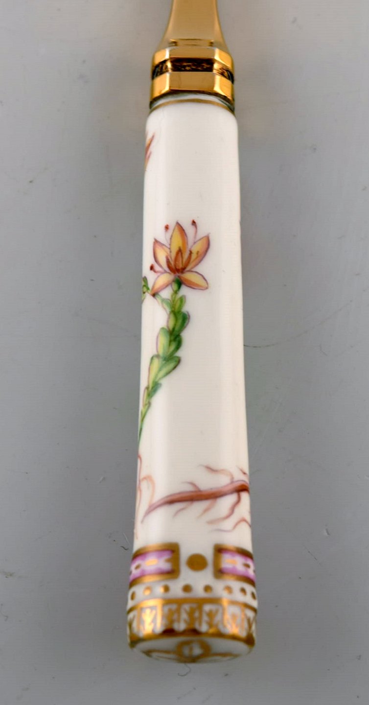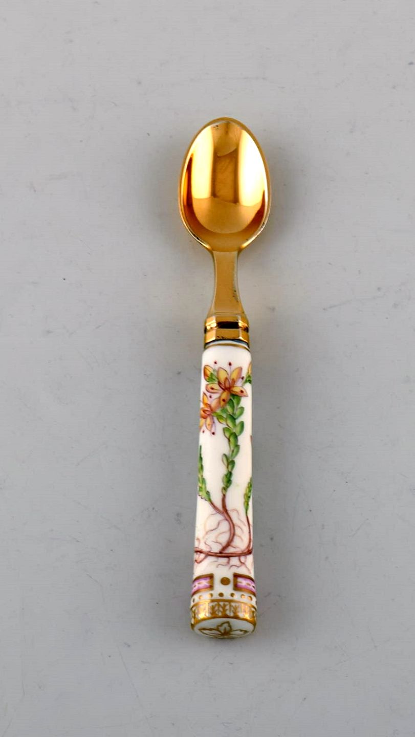 Georg Jensen for Royal Copenhagen. "Flora Danica" teske af forgyldt sterlingsølv. Skafte af porcelæn dekoreret i farver og guld med blomster. I flot stand. Stemplet. Måler: 11,5 cm.