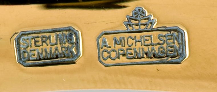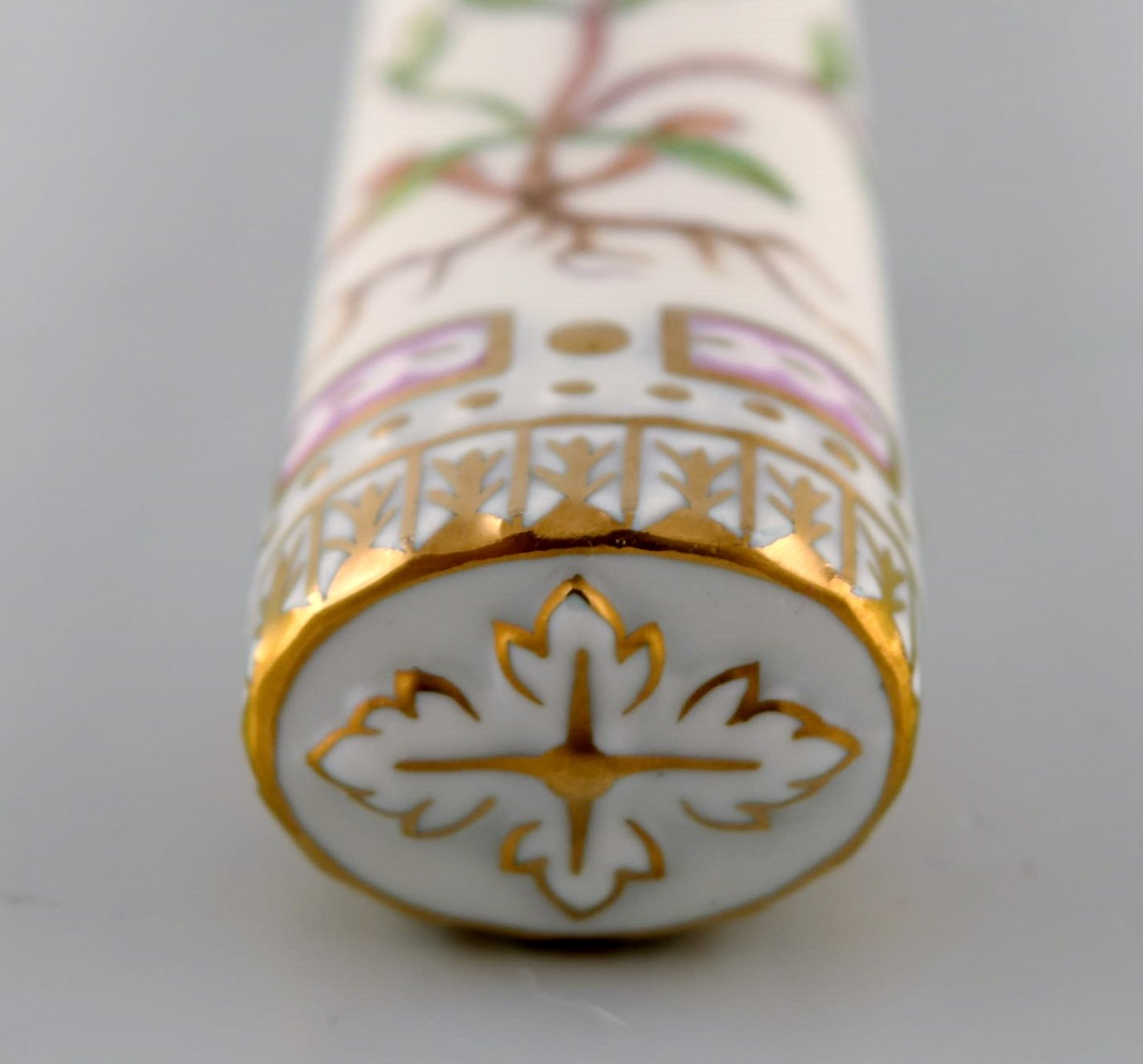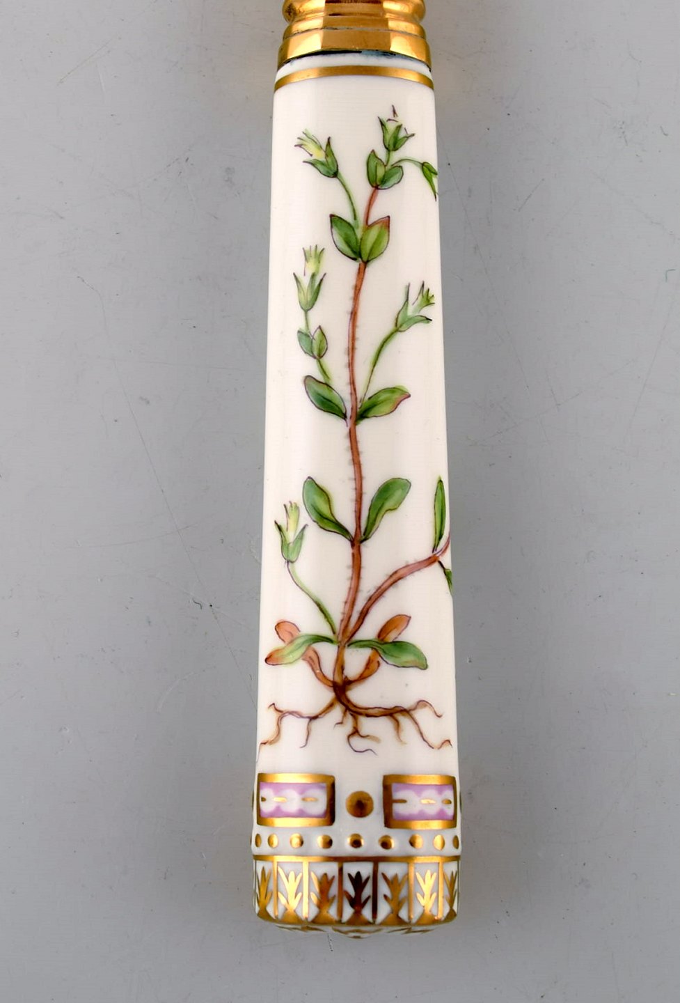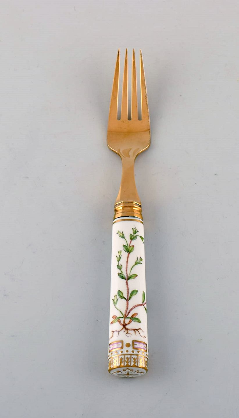 Michelsen for Royal Copenhagen. "Flora Danica" frokostgaffel af forgyldt sterlingsølv. Skafte af porcelæn dekoreret i farver og guld med blomster. I god stand med hårrevne. Stemplet. Måler: 21 cm.