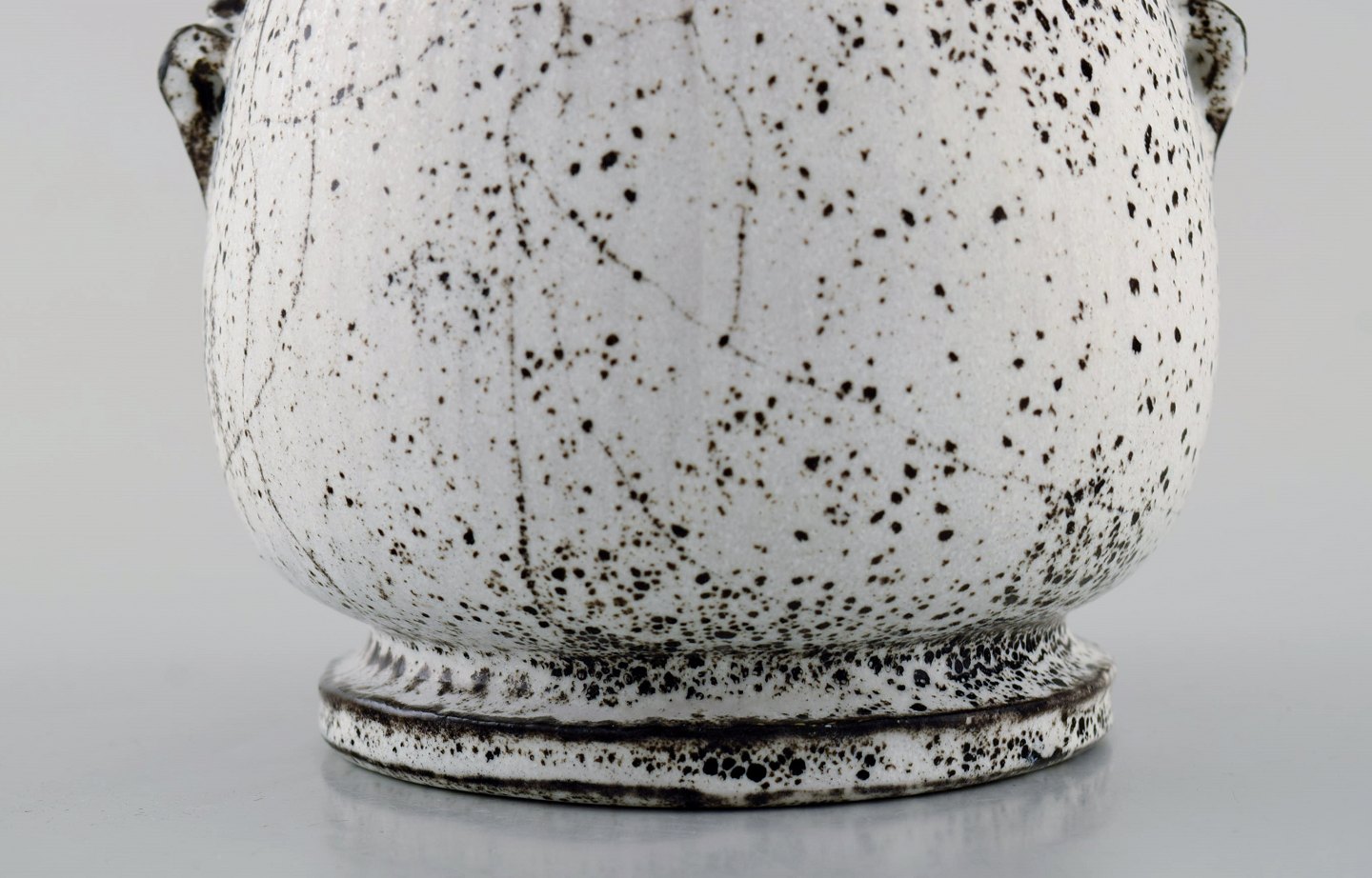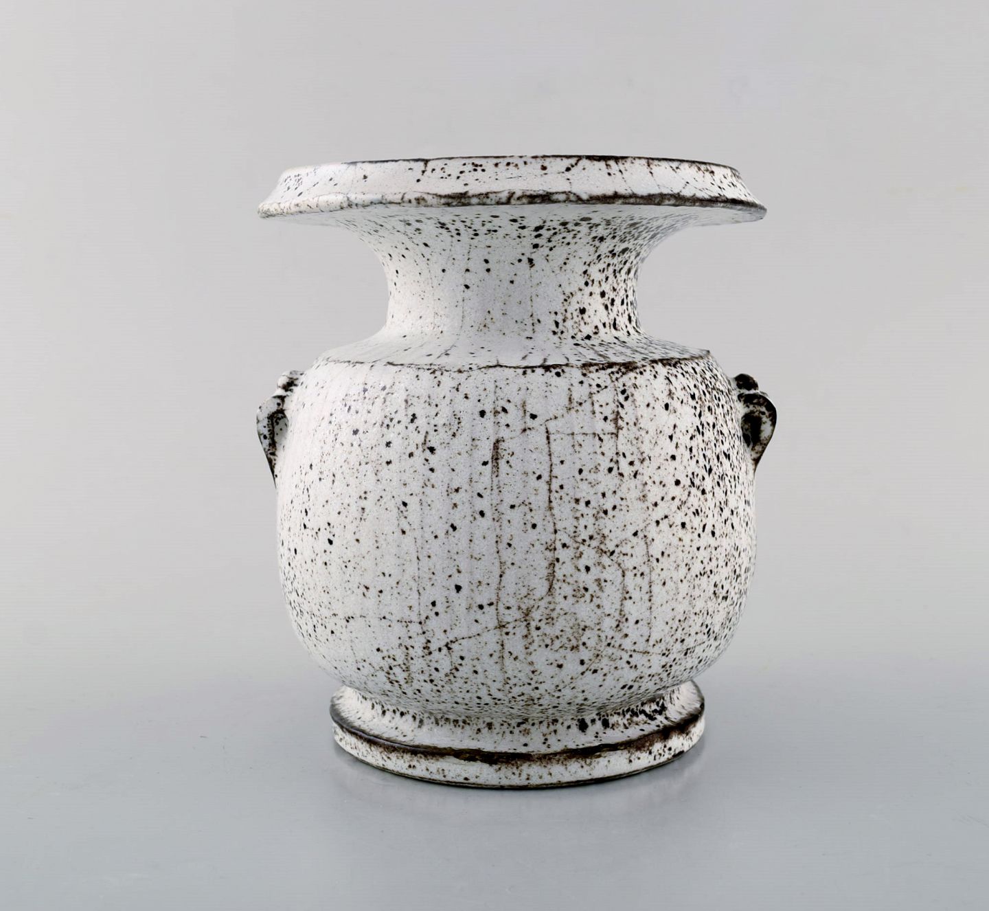 Svend Hammershøi for Kähler, HAK. Vase i glaseret stentøj. Smuk gråsort dobbeltglasur. 1930/40'erne. Stemplet. I flot stand. Måler: 15,5 x 14 cm.