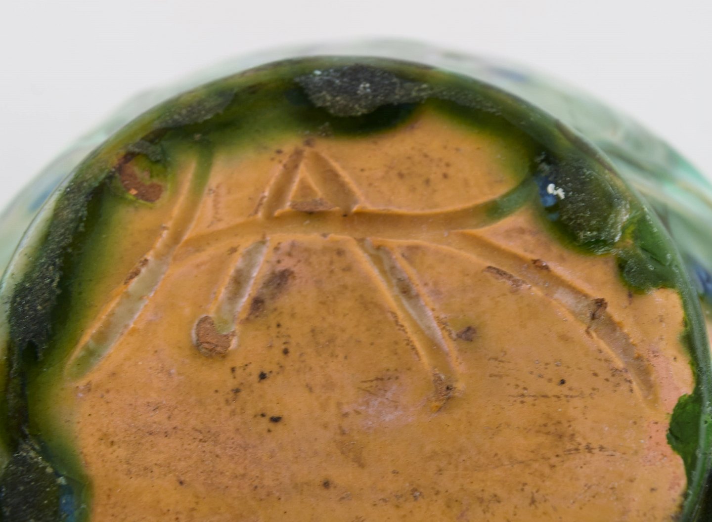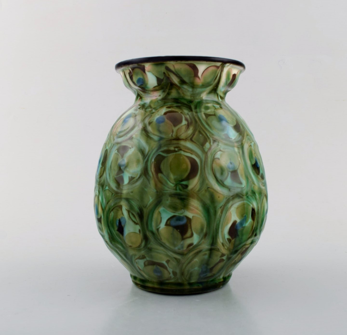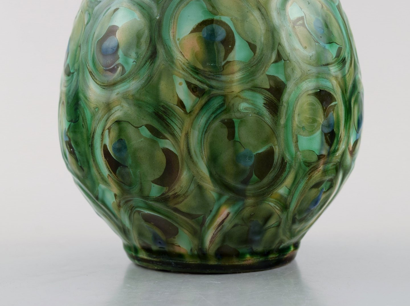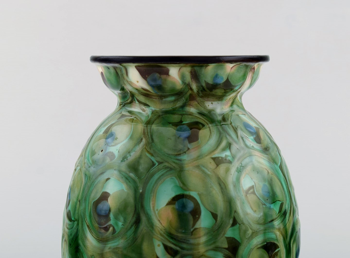 Kähler, HAK. Glaseret stentøjsvase i moderne design. 1930/40´erne. Smuk glasur i grønne nuancer. Måler: 17,5 x 14,5 cm. Stemplet. I flot stand.