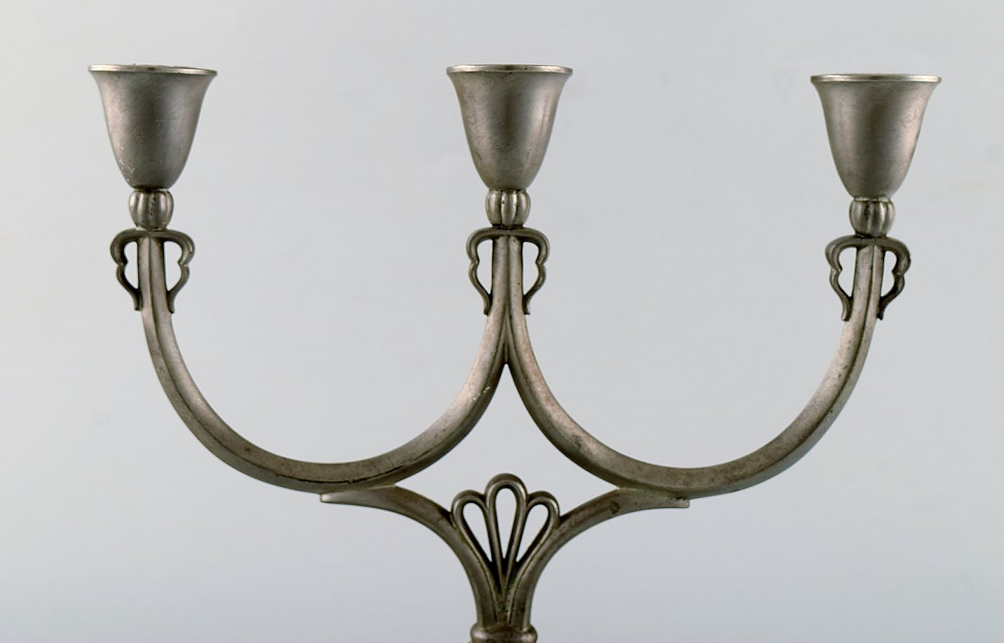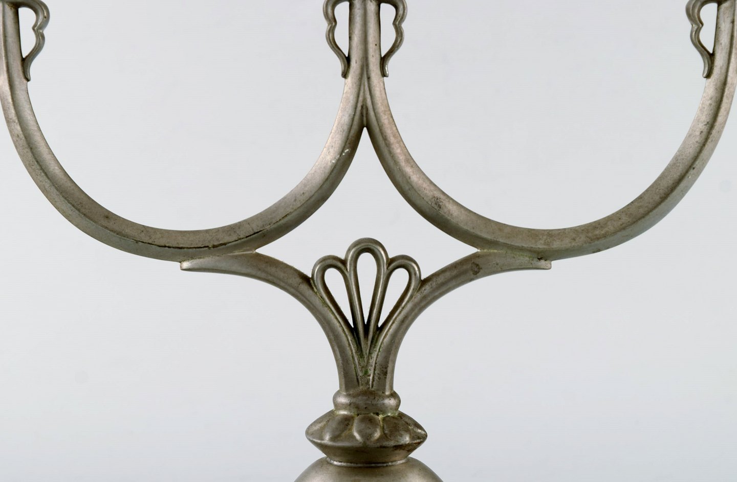 Just Andersen, Danmark. Et par tidlige lysestager i tin. 1920/30'erne. Måler: 24,5 x 22,5 cm. I flot stand. Stemplet.