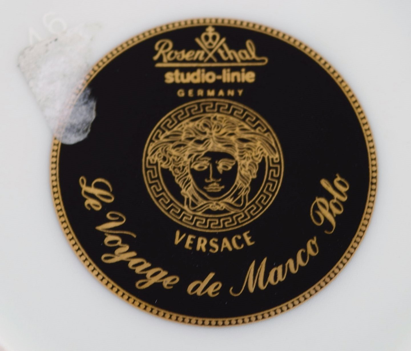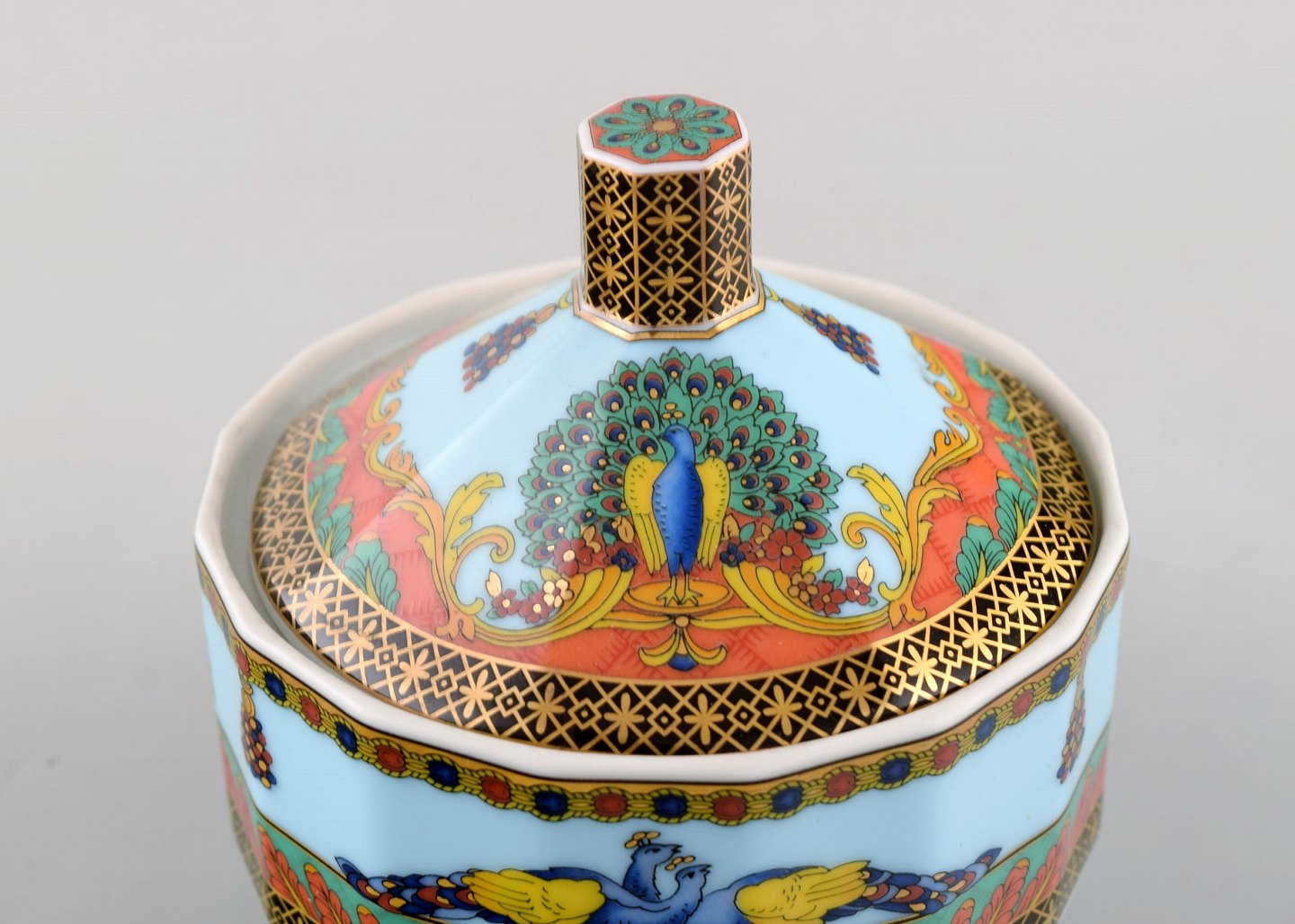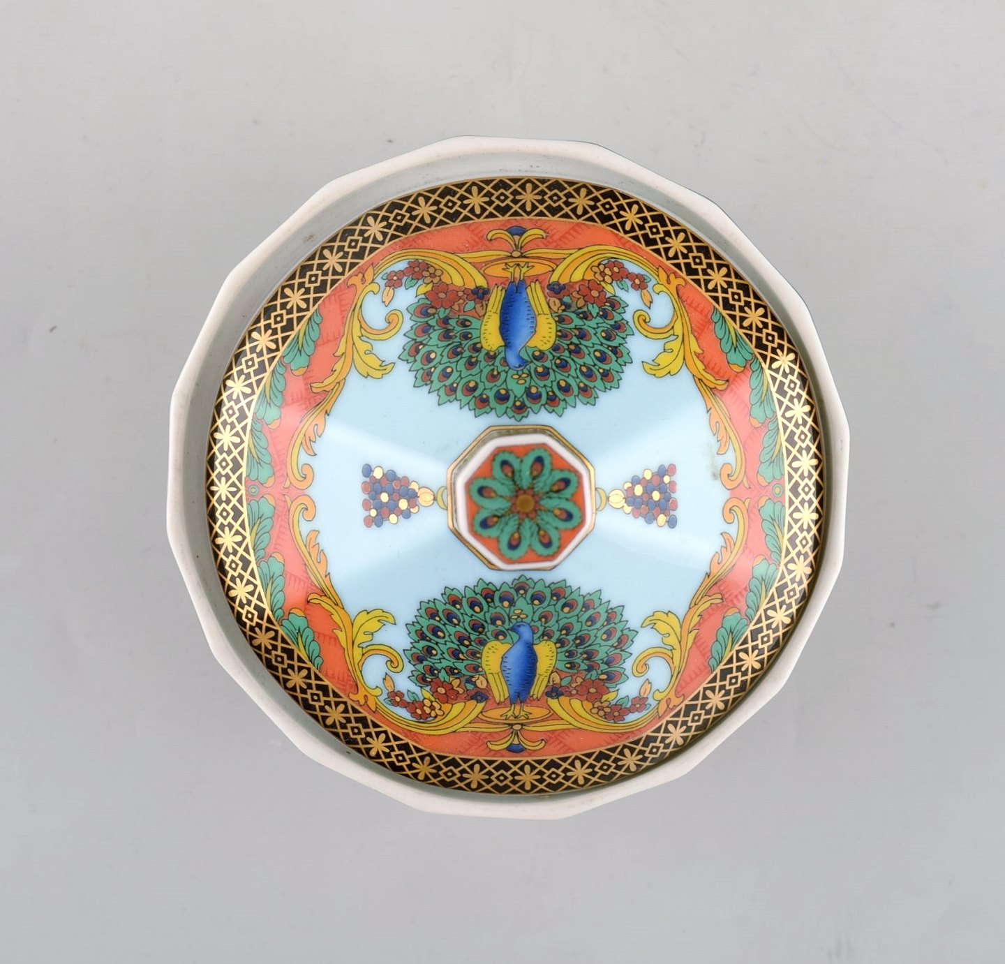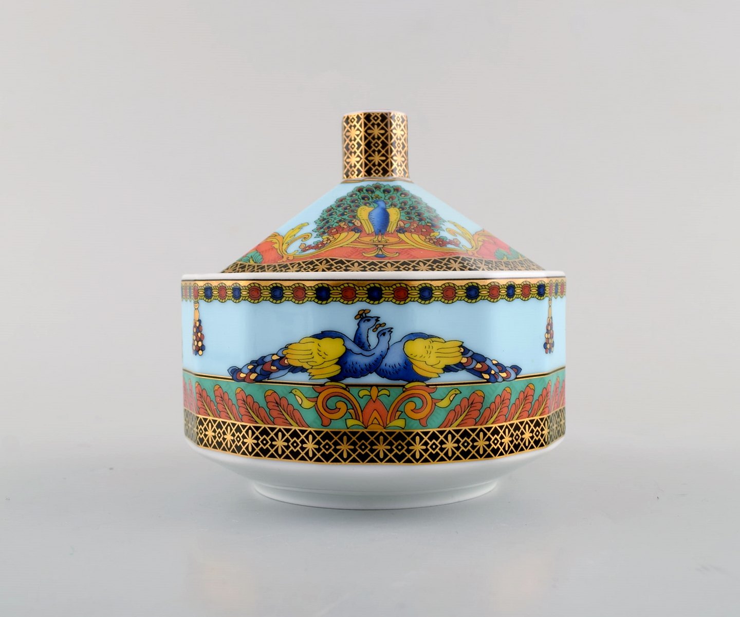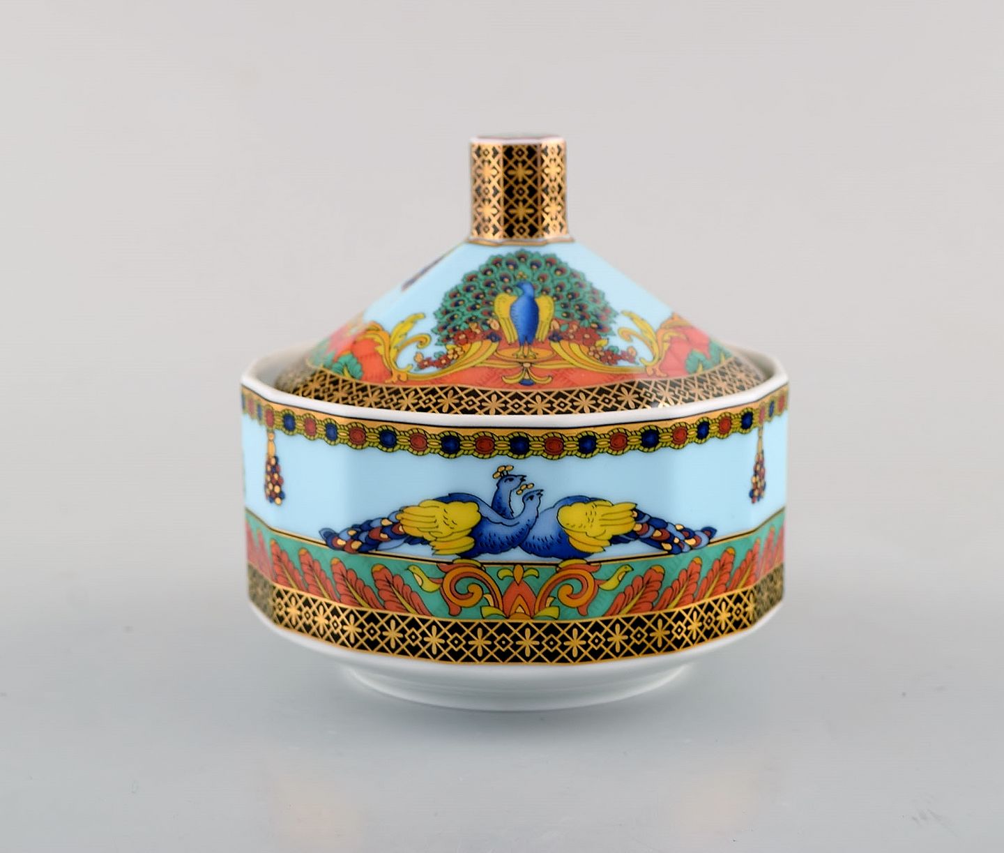 Gianni Versace for Rosenthal. "Le voyage de Marco Polo" sukkerskål i porcelæn med gulddekoration og påfuglemotiv. Sent 1900-tallet. I perfekt stand. Måler: 10 x 10 cm. Stemplet.