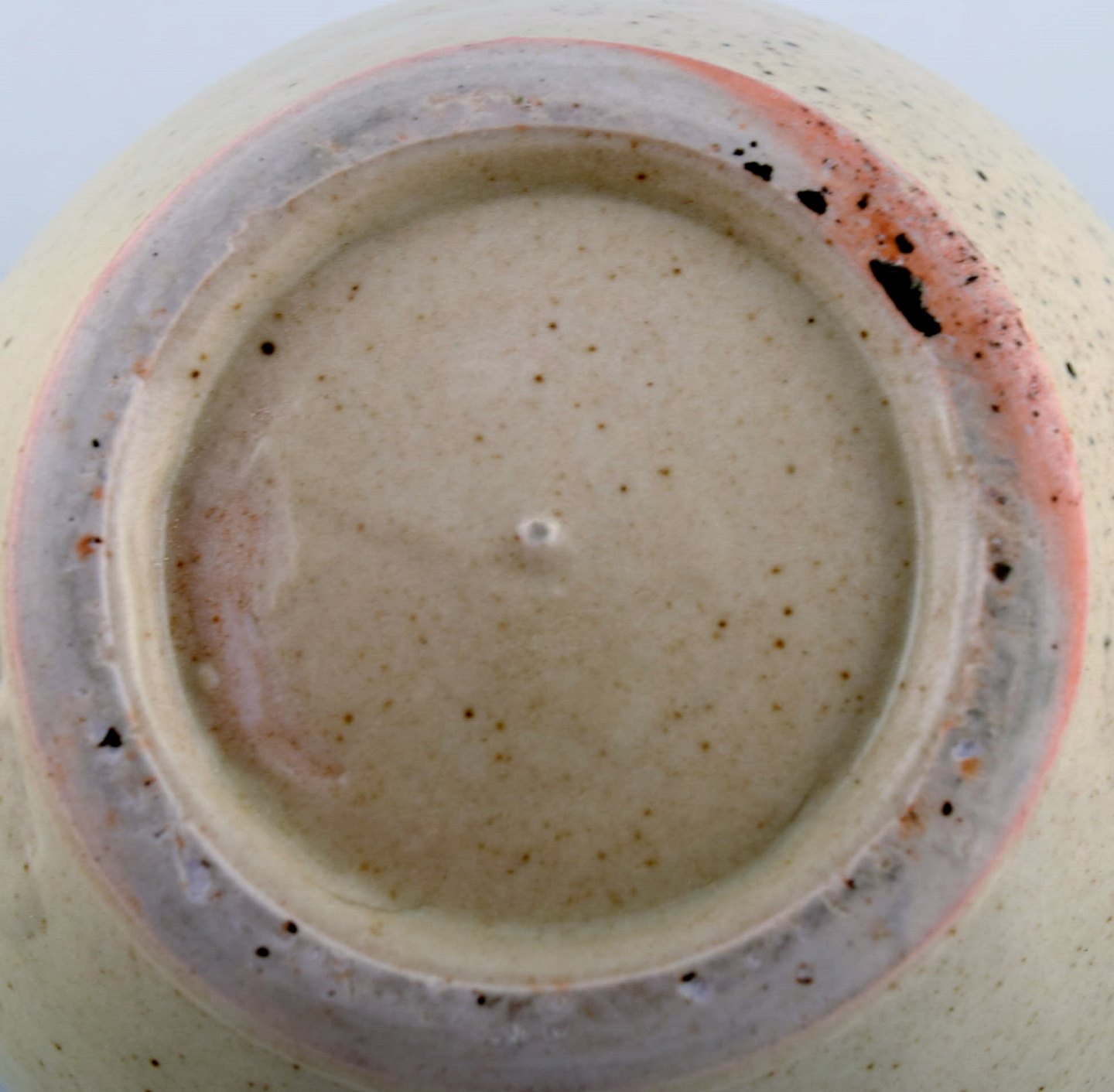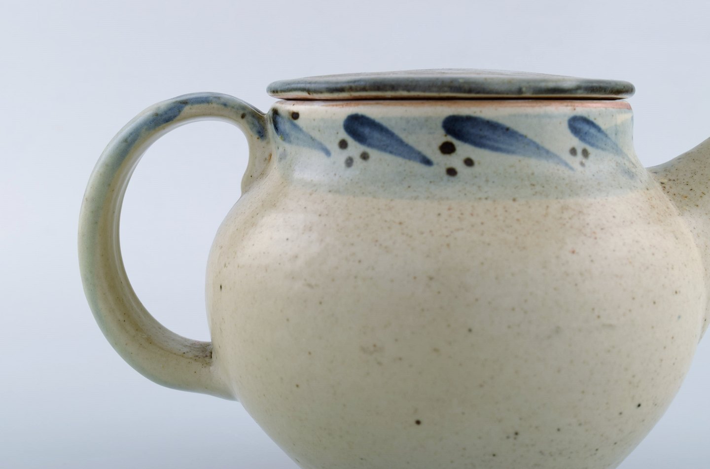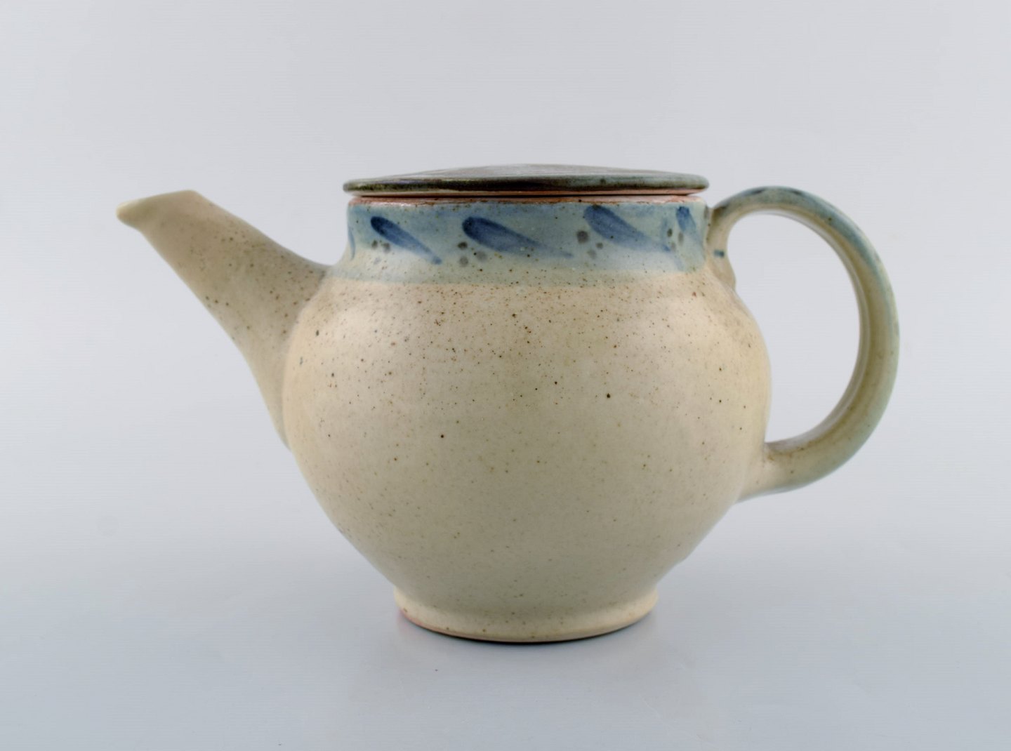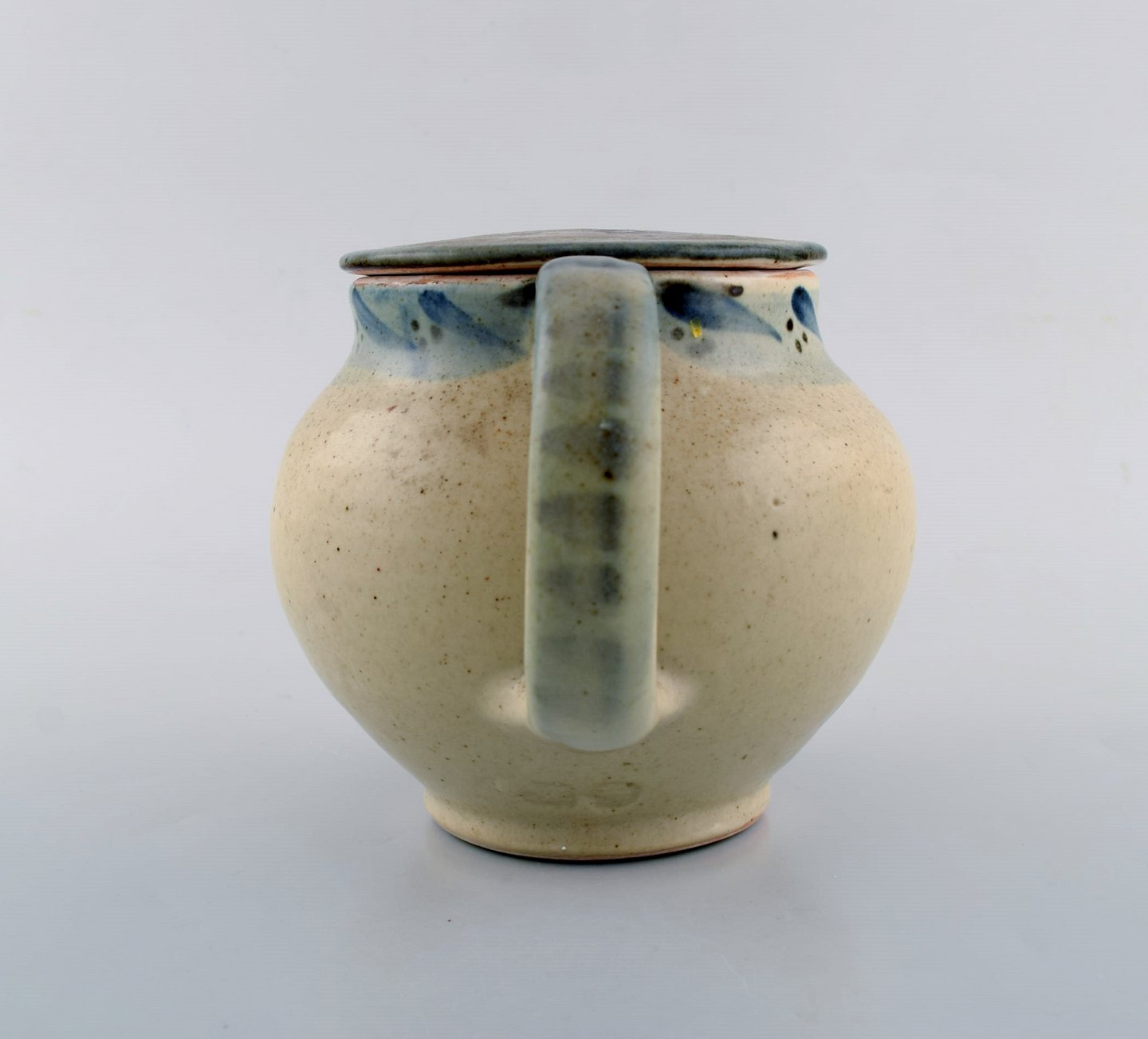 Bernard Howell Leach (1887-1979). Modernistisk tekande med tilhørende låg i glaseret stentøj. Typisk rå 1950'er stentøjsmasse.