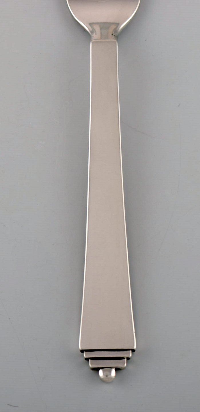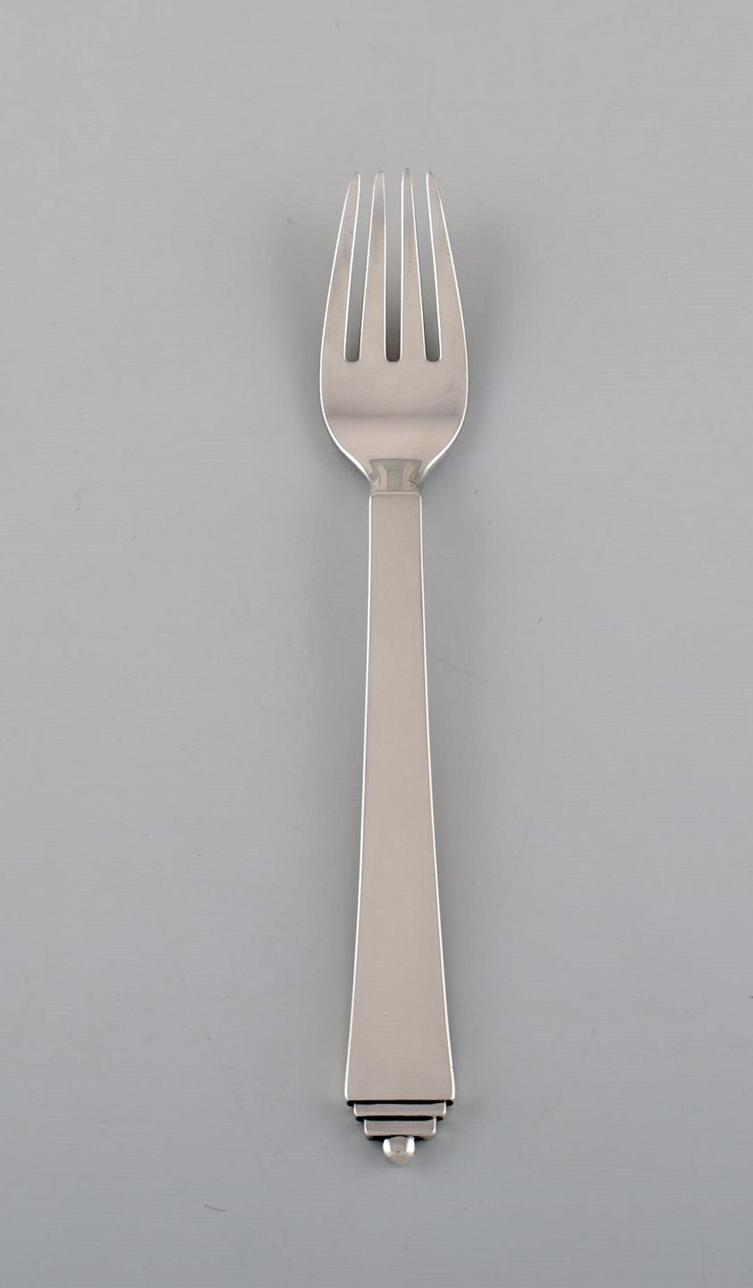 Georg Jensen Pyramide middagsgaffel i sterlingsølv. Dateret 1933-44. Længde: 18,6 cm. Designet af Harald Nielsen 1927. I flot stand. Stemplet.