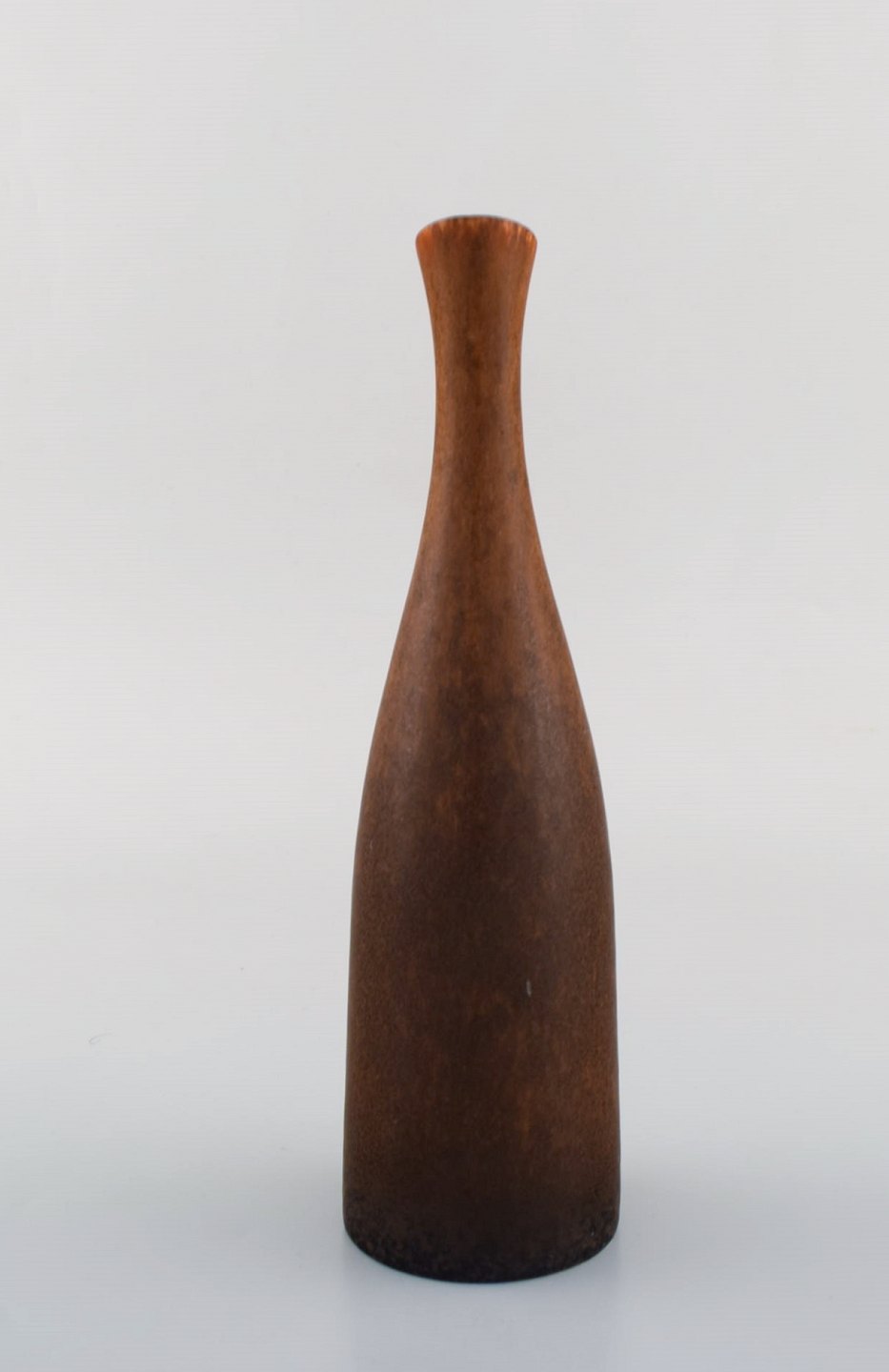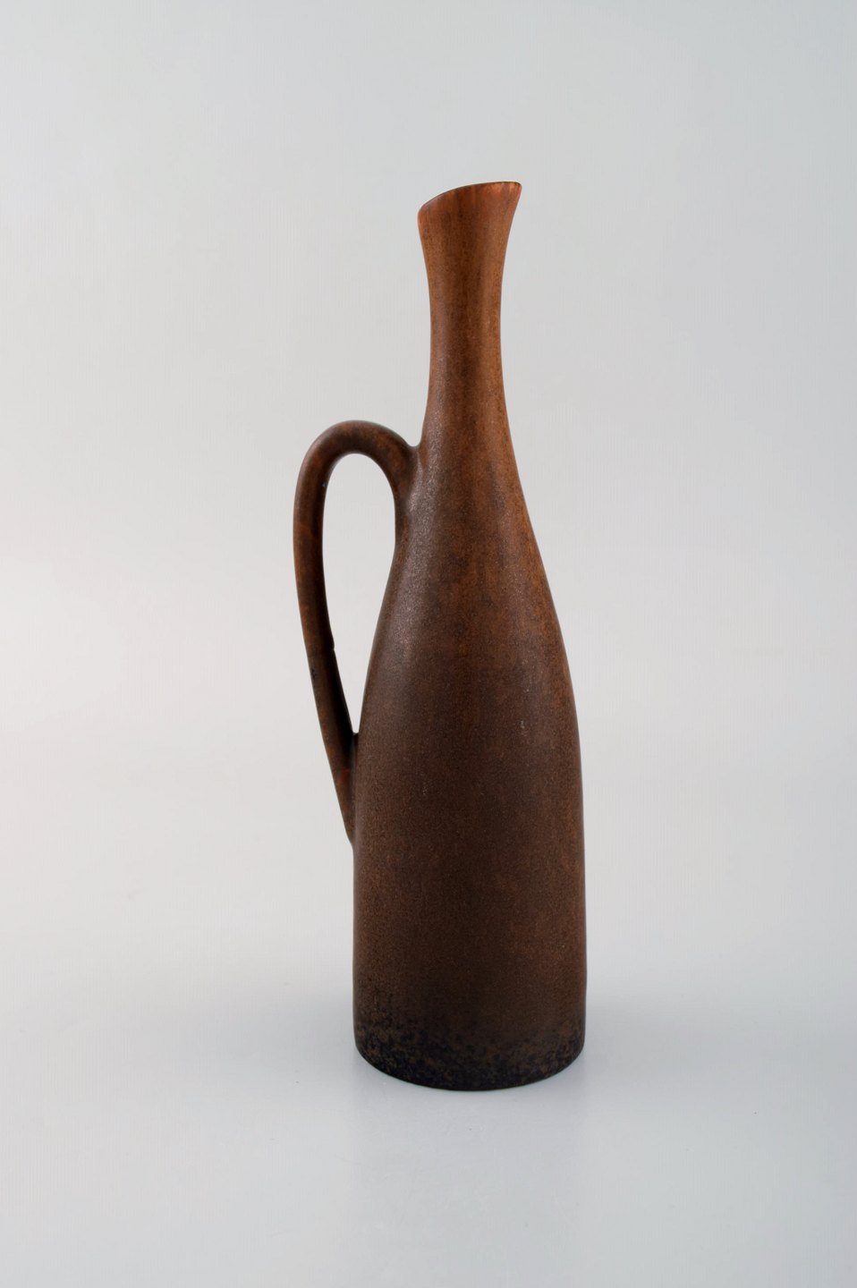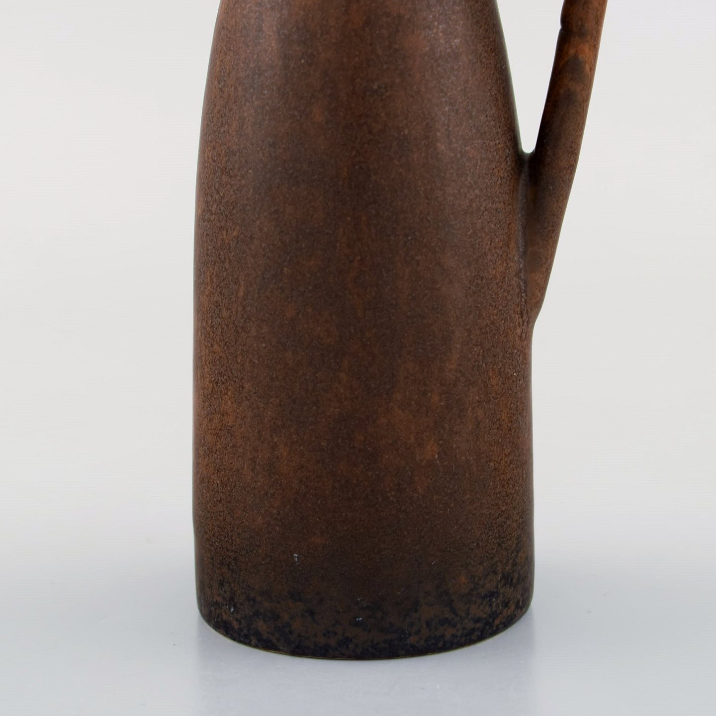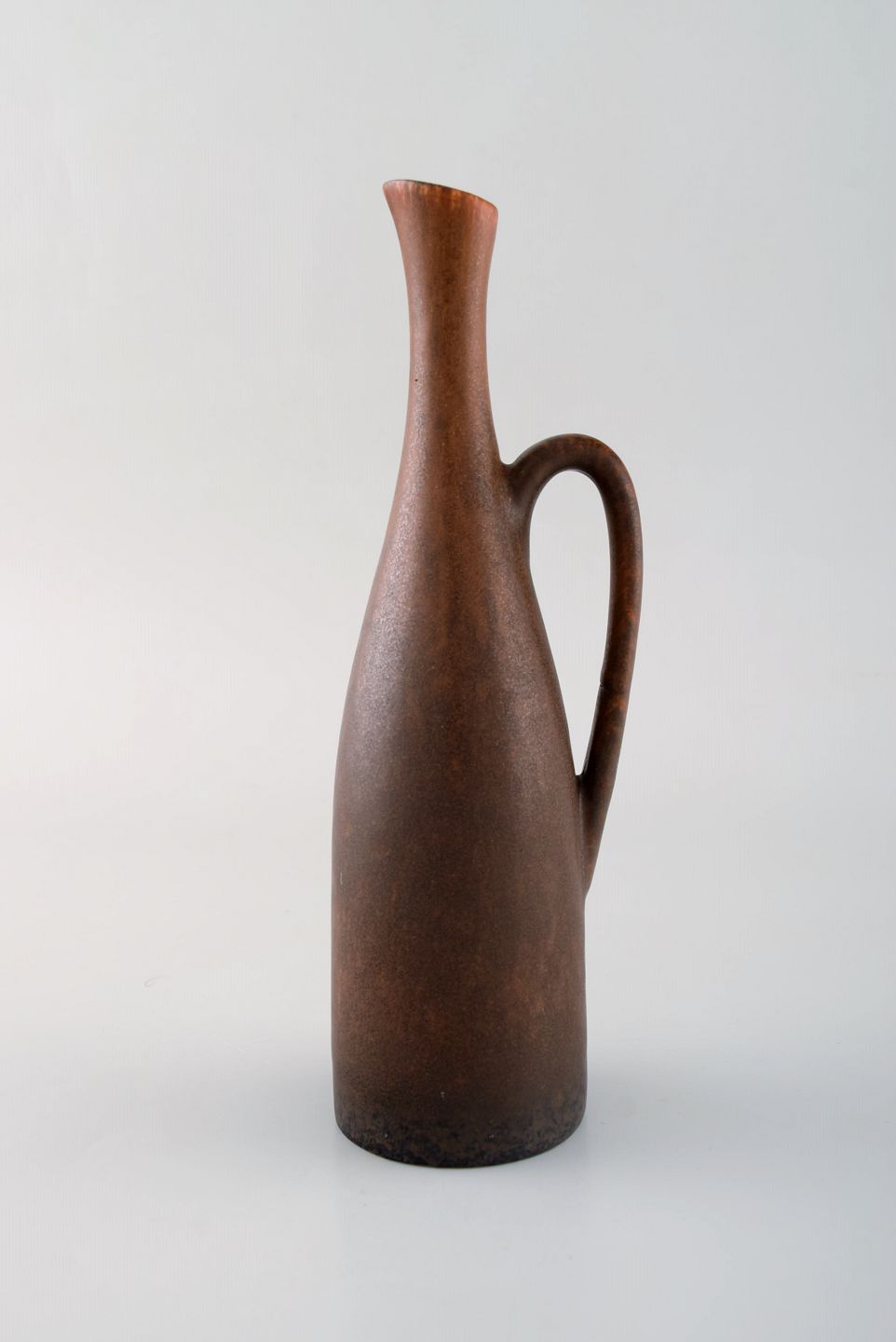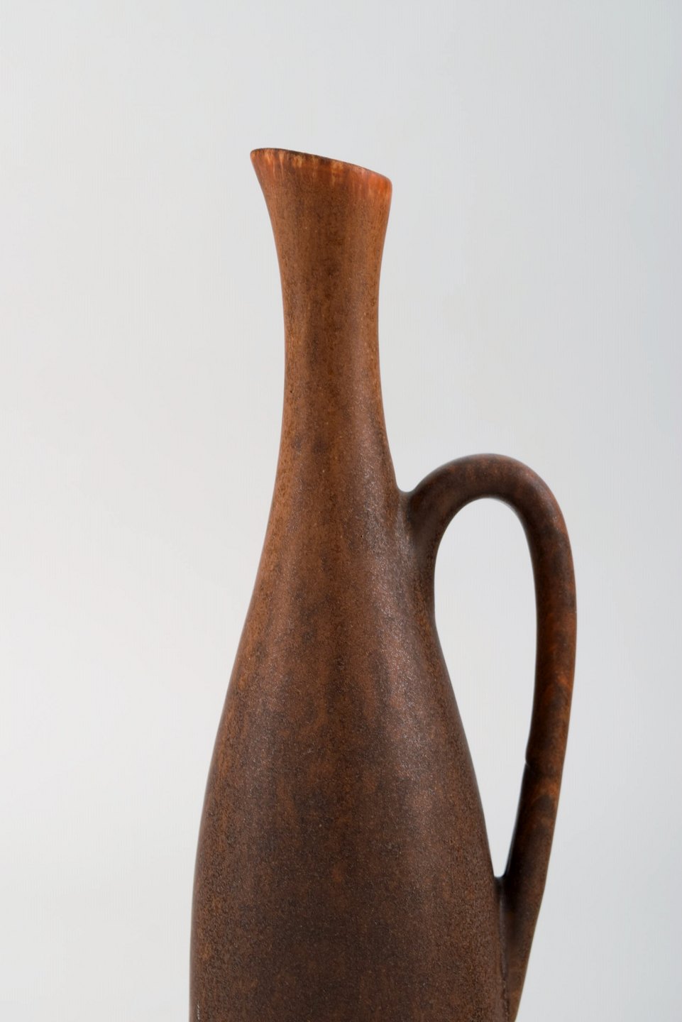 Carl-Harry Stålhane for Rörstrand. Vase med hank i glaseret stentøj. Smuk glasur i brune nuancer. 1960'erne. I flot stand. 1. Sortering Stemplet. Måler: 21 x 7,5 cm.