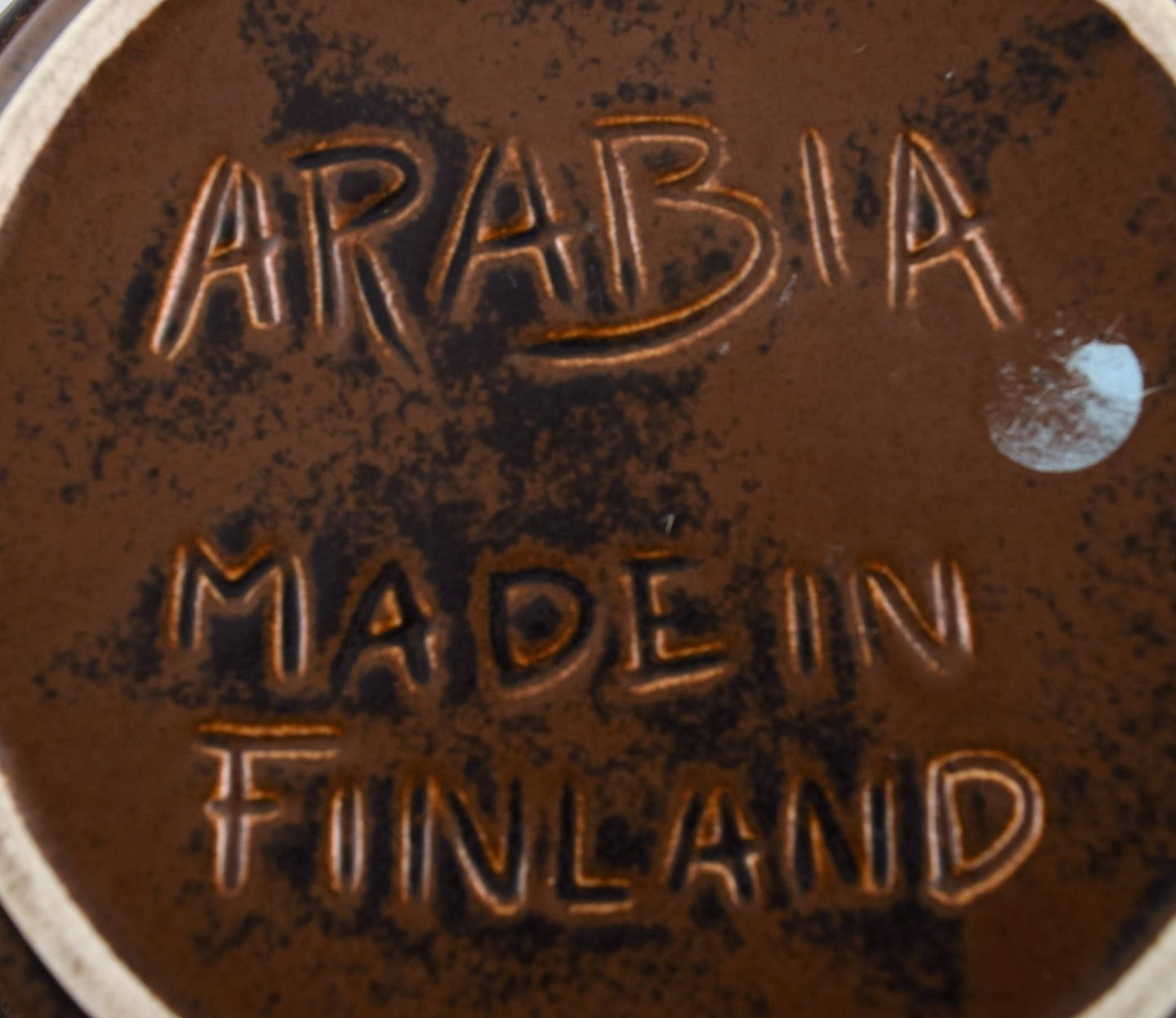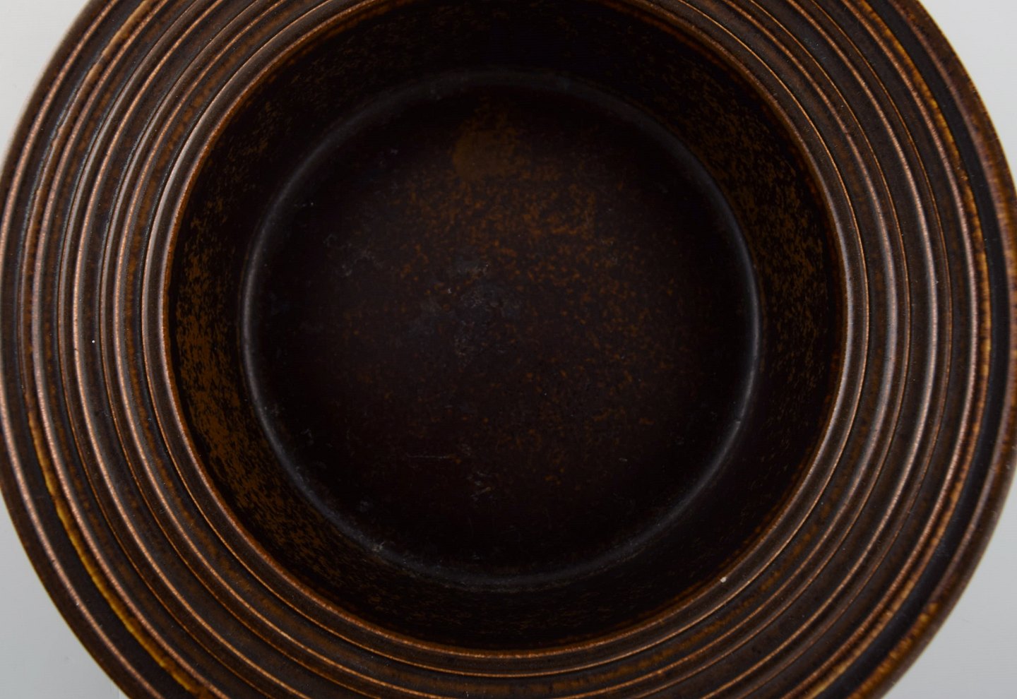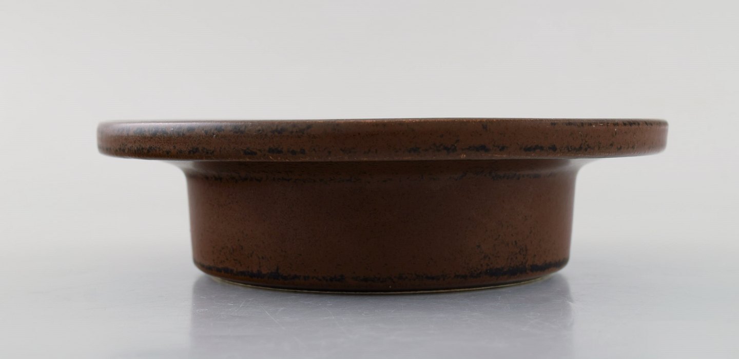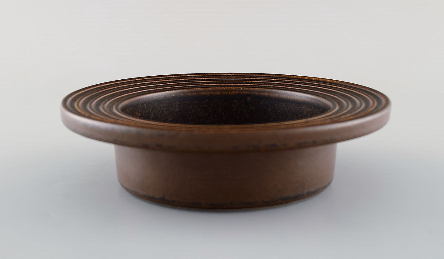 Arabia, Finland. Lav skål i glaseret keramik med rillet kant. Smuk glasur i brune nuancer. 1960'erne. Måler: 17 x 4,5 cm. I flot stand. Signeret.