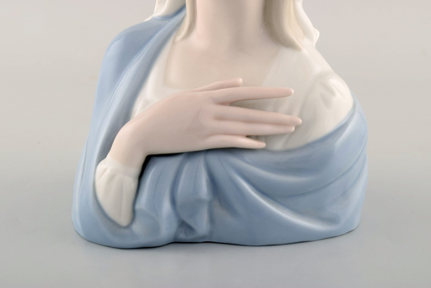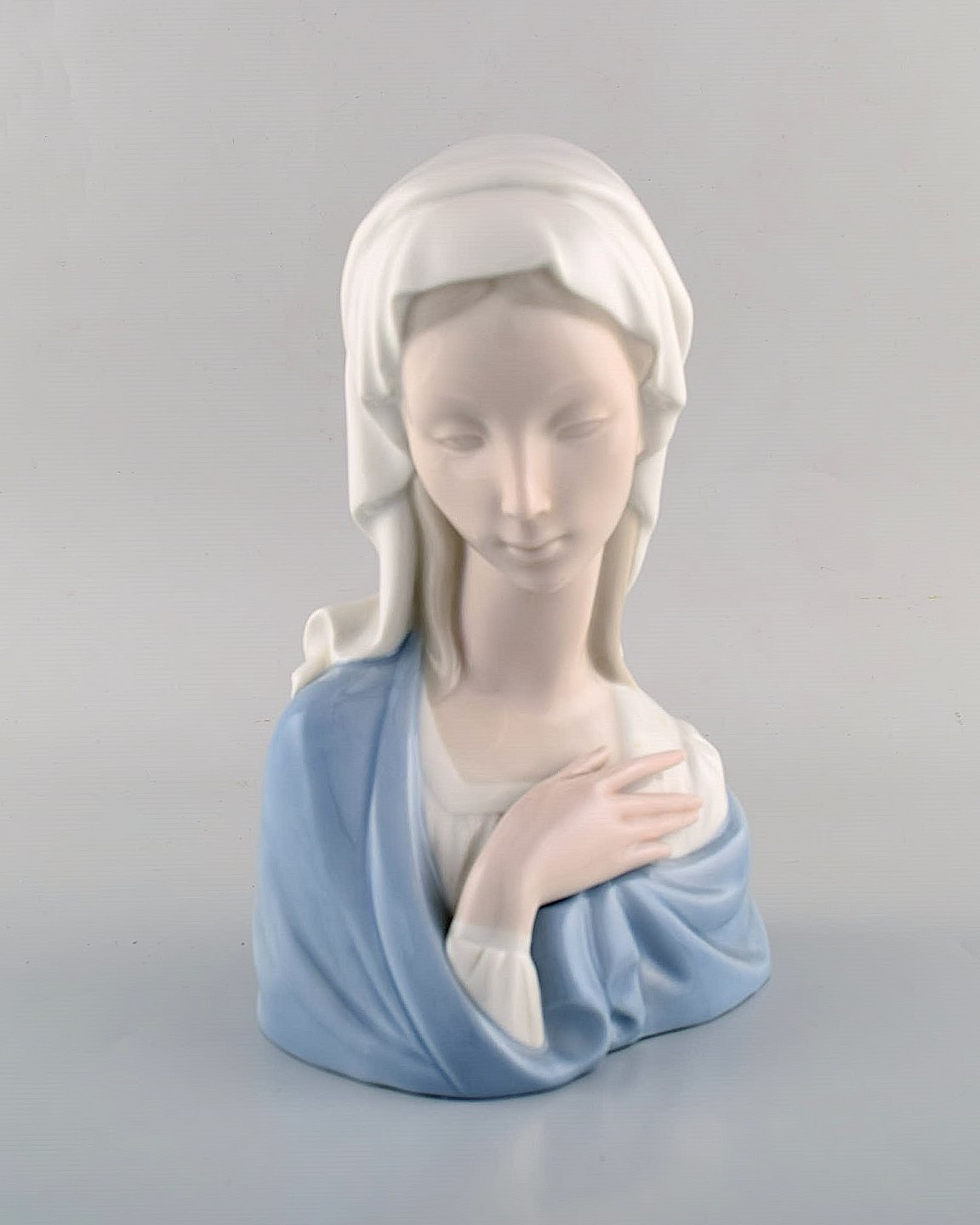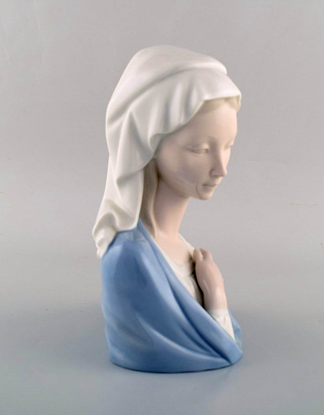 Lladro, Spanien. Stor figur i glaseret porcelæn. Madonna. 1980'erne. Måler: 22 x 14 cm. I flot stand. Stemplet.