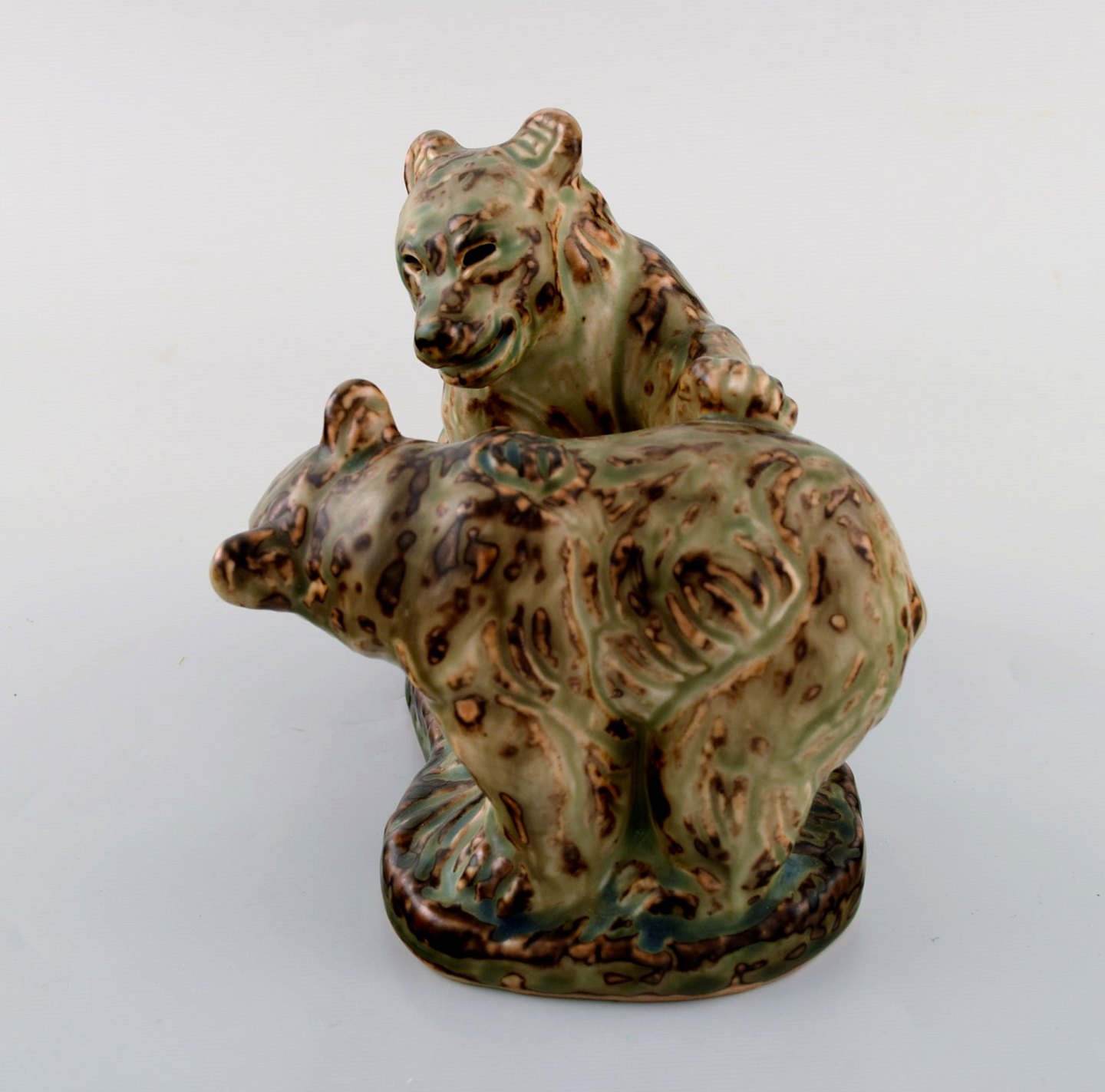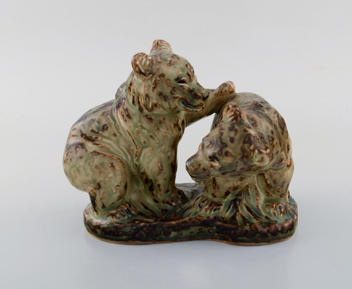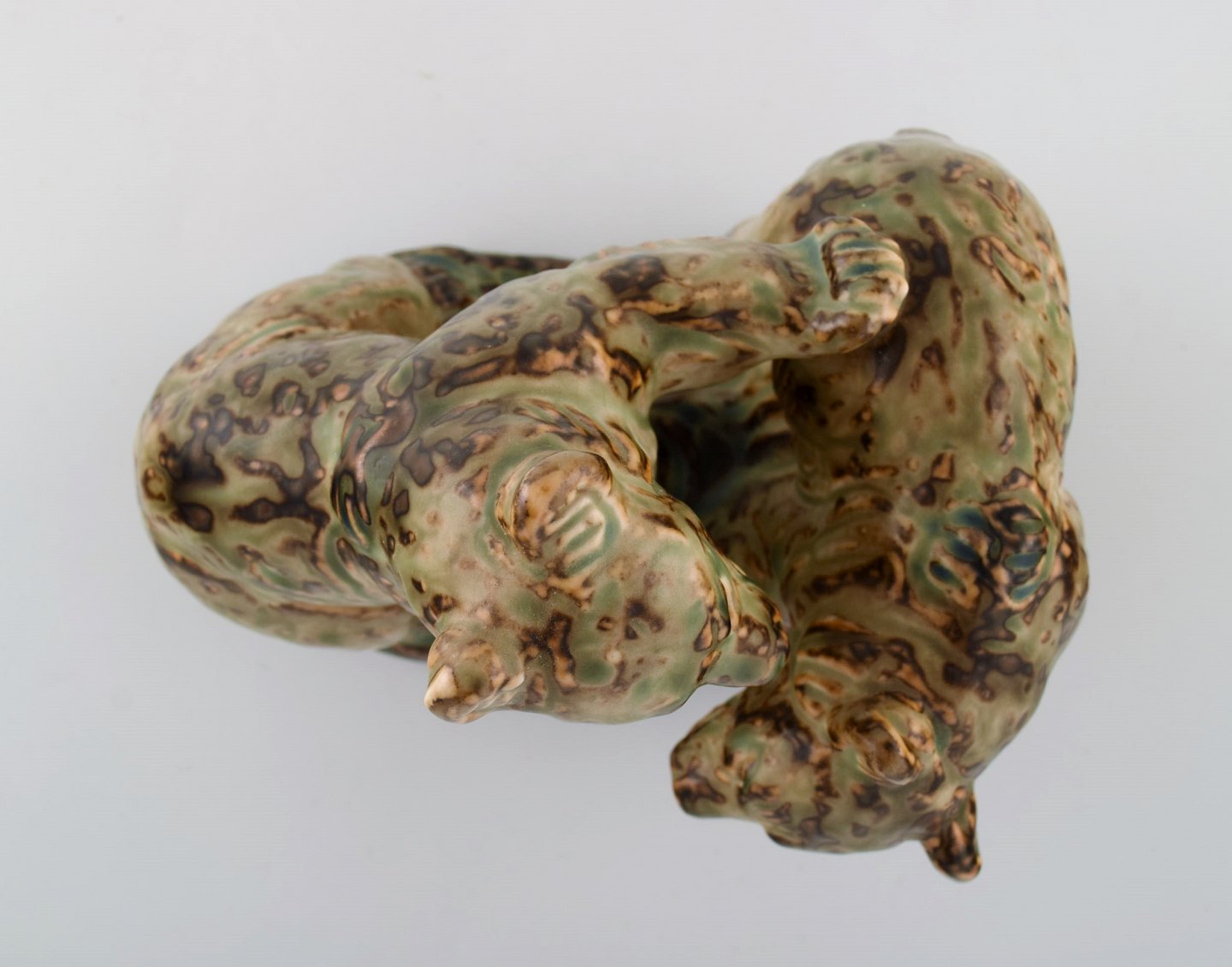 Knud Kyhn for Royal Copenhagen. Stentøjsfigur nr. 21915. Legende bjørneunger. Dateret 1965-74. Måler: 19 x 15 cm. 1. sortering. I flot stand. Signeret i monogram.