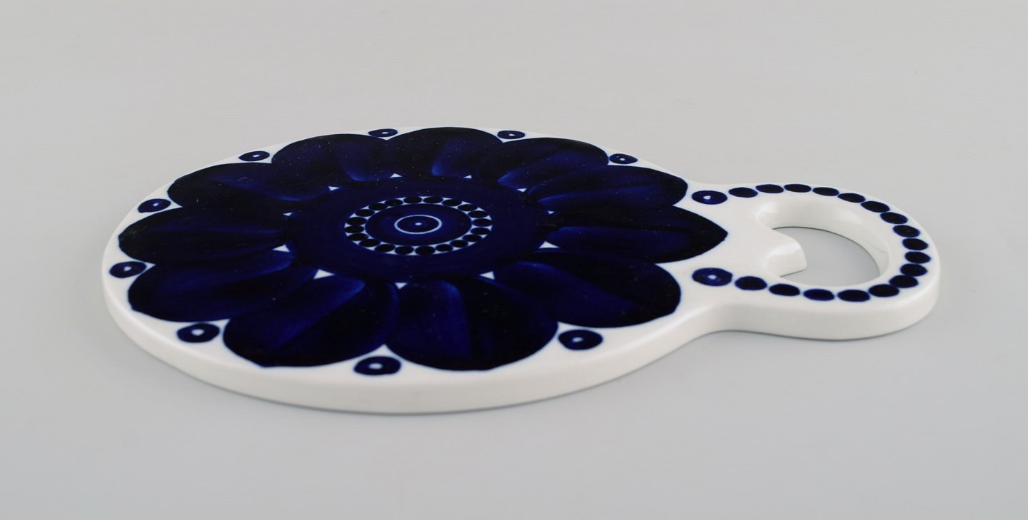 Ulla Procope for Arabia. Valencia smørrebrik i porcelæn dekoreret med blå blomst. 1960/70'erne. Måler: 22 x 16,5 cm. I flot stand. Signeret.
