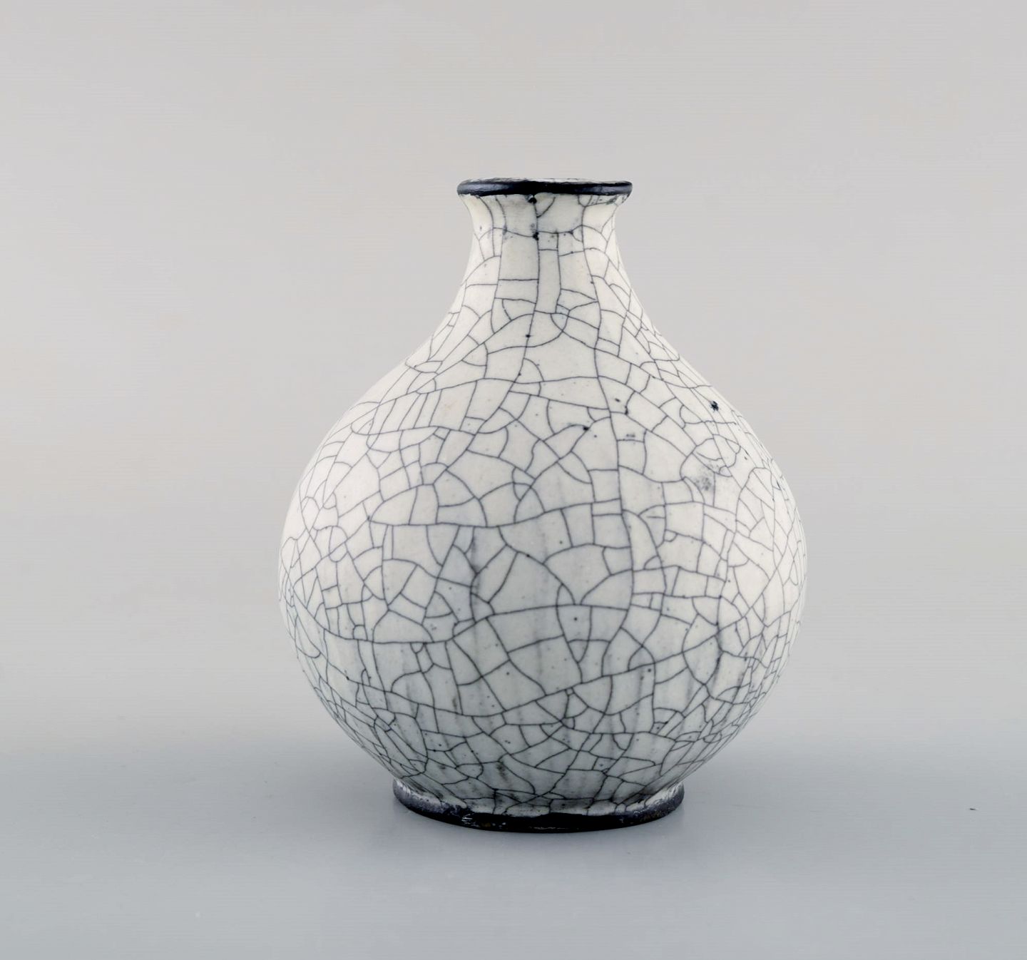 Svend Hammershøi for Kähler, HAK. Vase i glaseret stentøj. Smuk gråsort dobbeltglasur. 1930/40'erne. Stemplet. I flot stand. Måler: 9 x 8 cm.