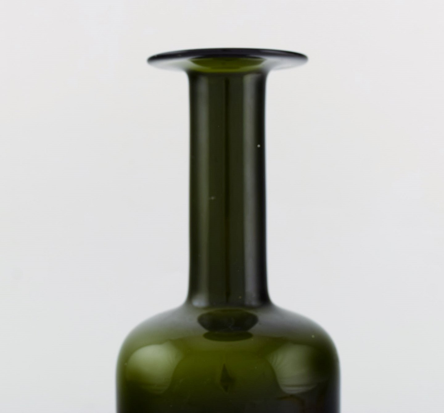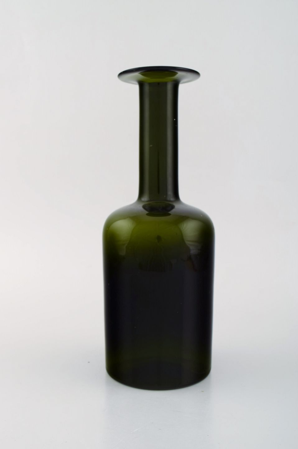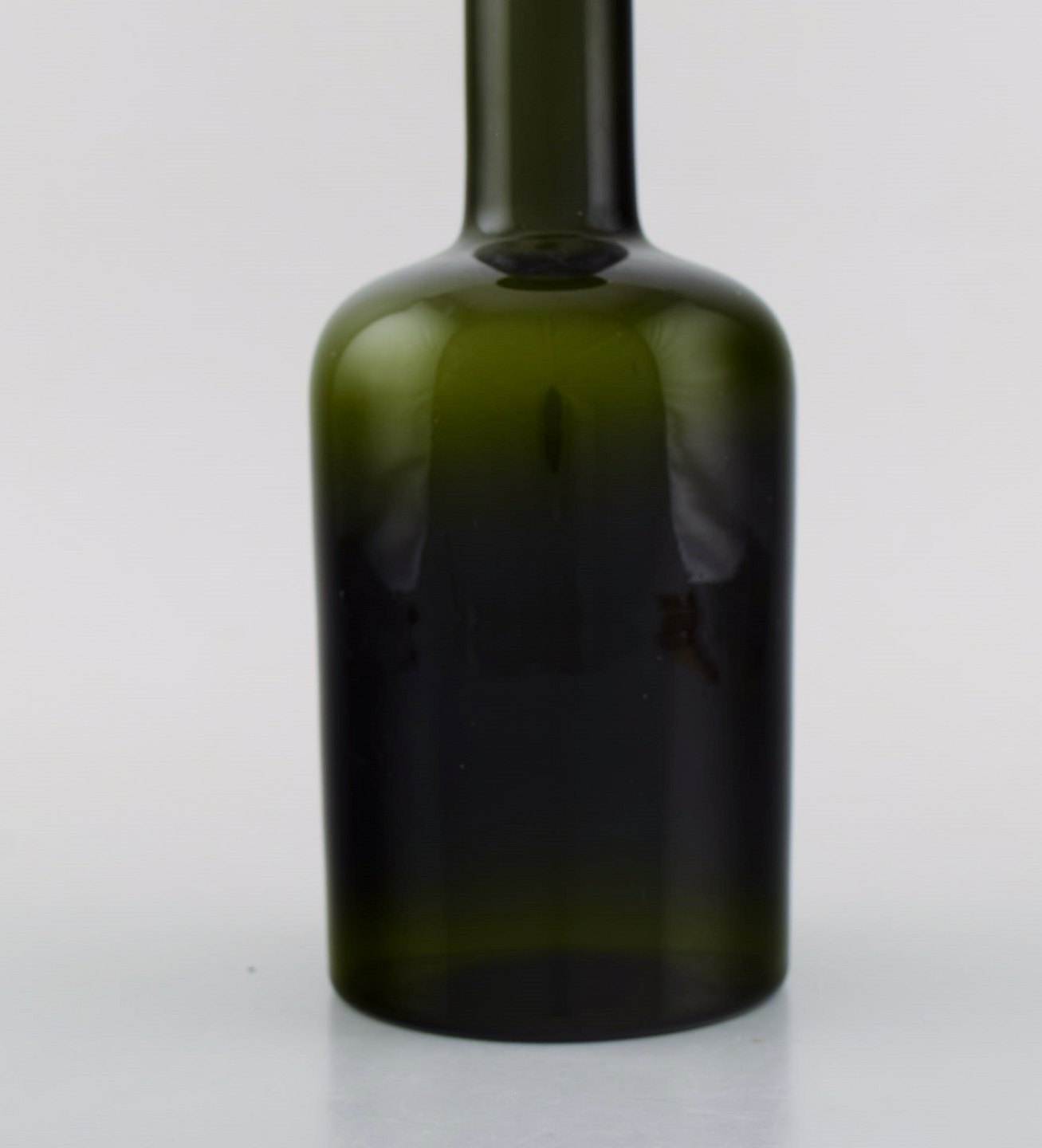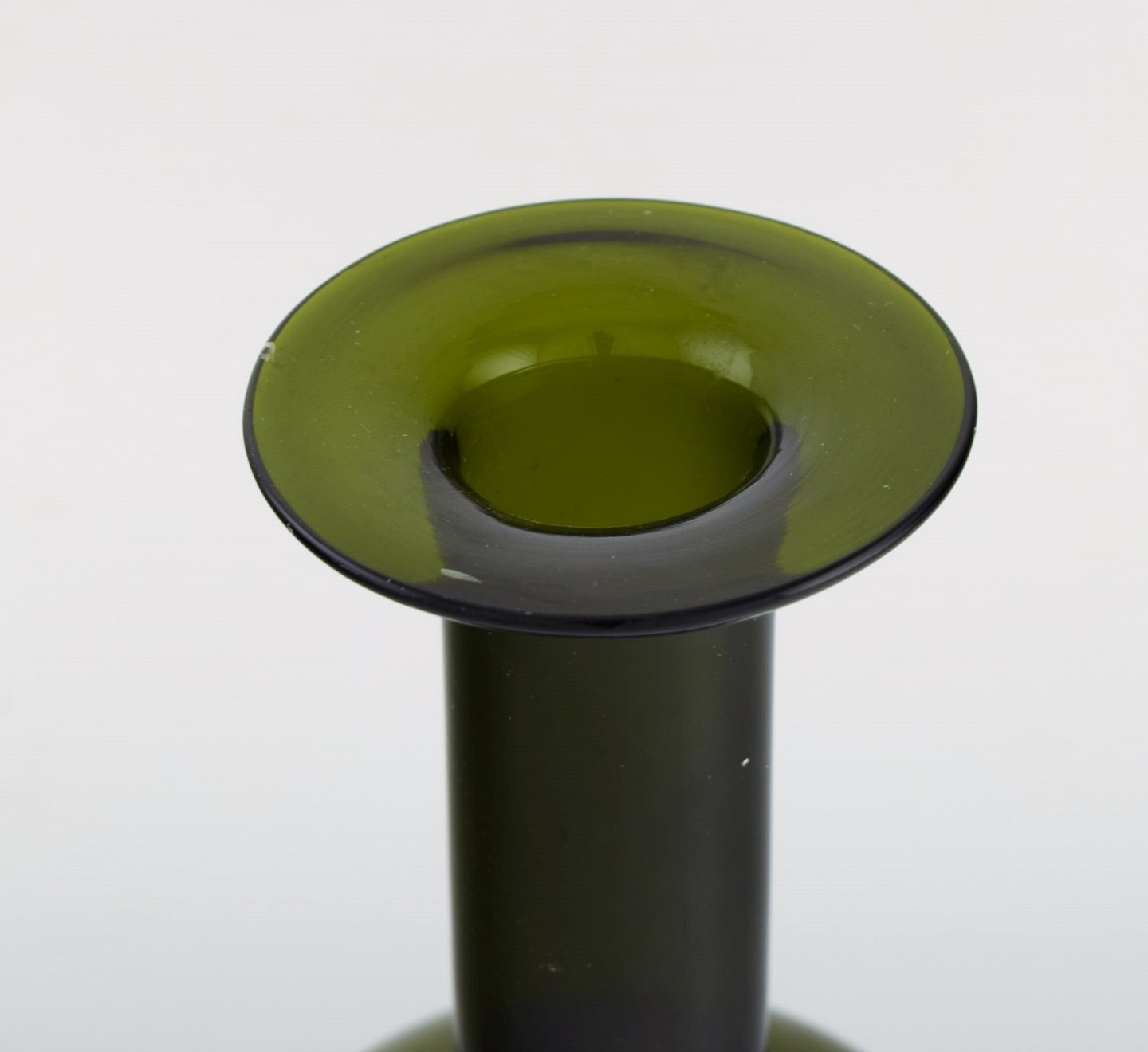 Otto Brauer for Holmegaard. Vase/flaske i mørkegrønt kunstglas. 1960'erne. Måler: 16 x 9 cm. I perfekt stand.