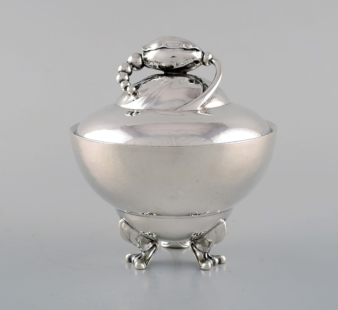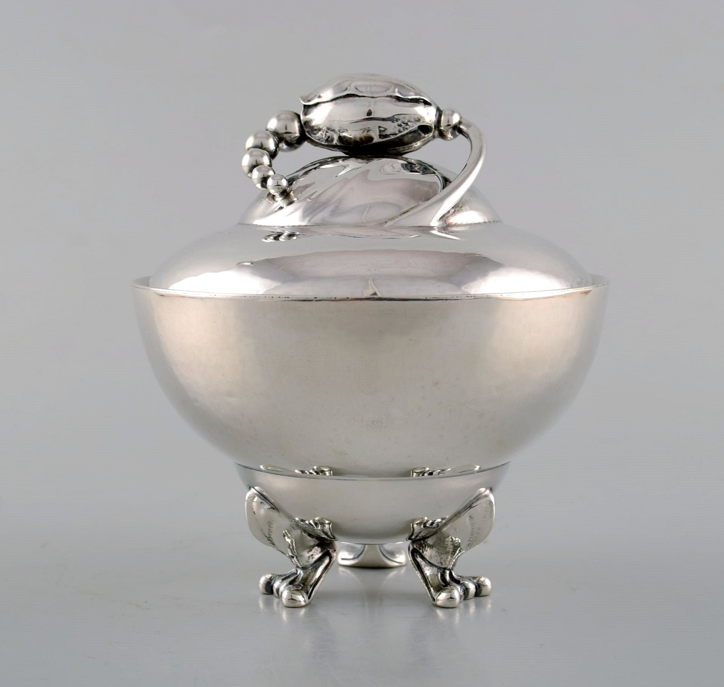 Tidlig Georg jensen Magnolia sukkerskål på fødder i sterlingsølv. Modelnummer 2D. 1920'erne. Måler: 11,5 x 10,5 cm. I flot stand. Stemplet.