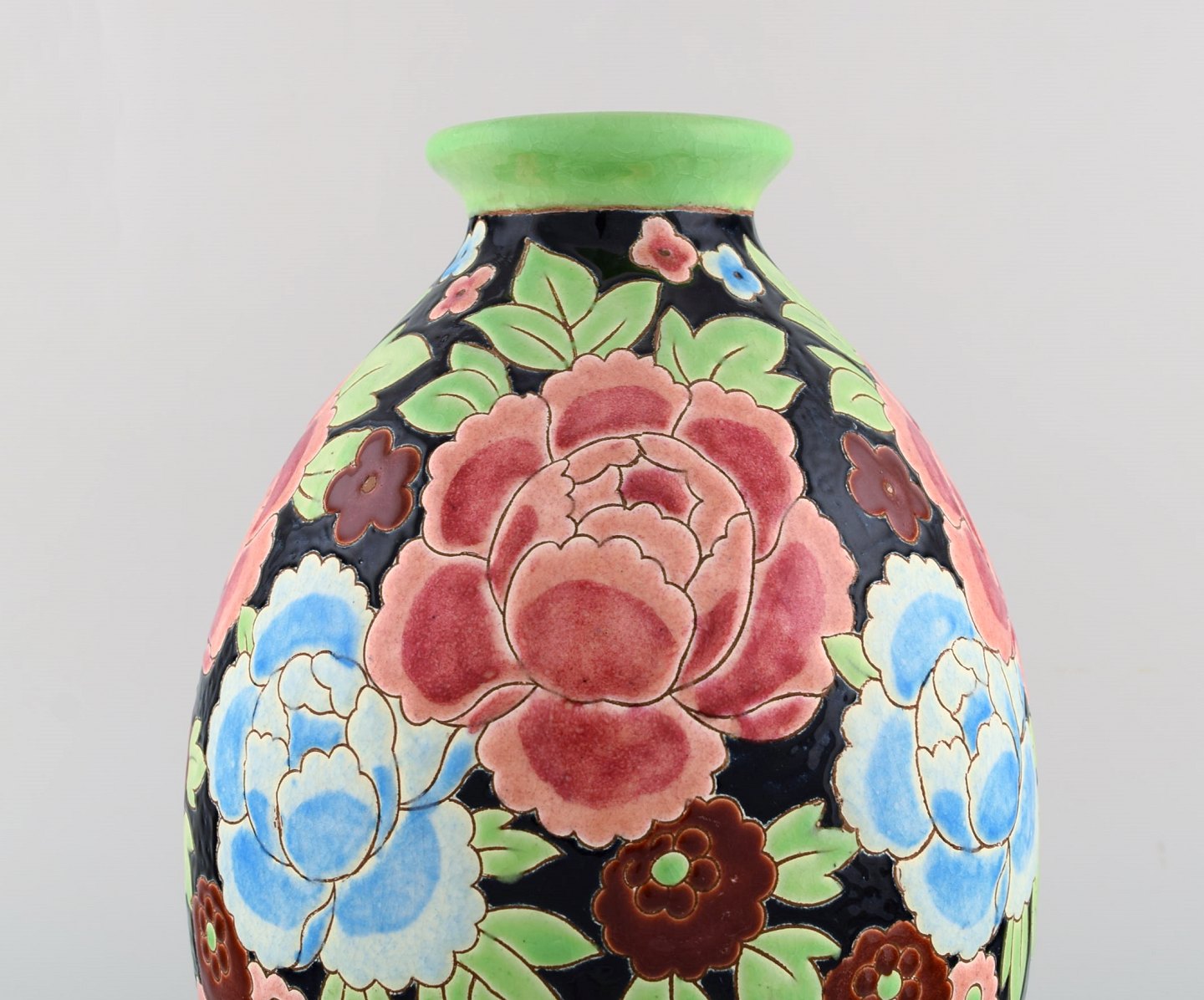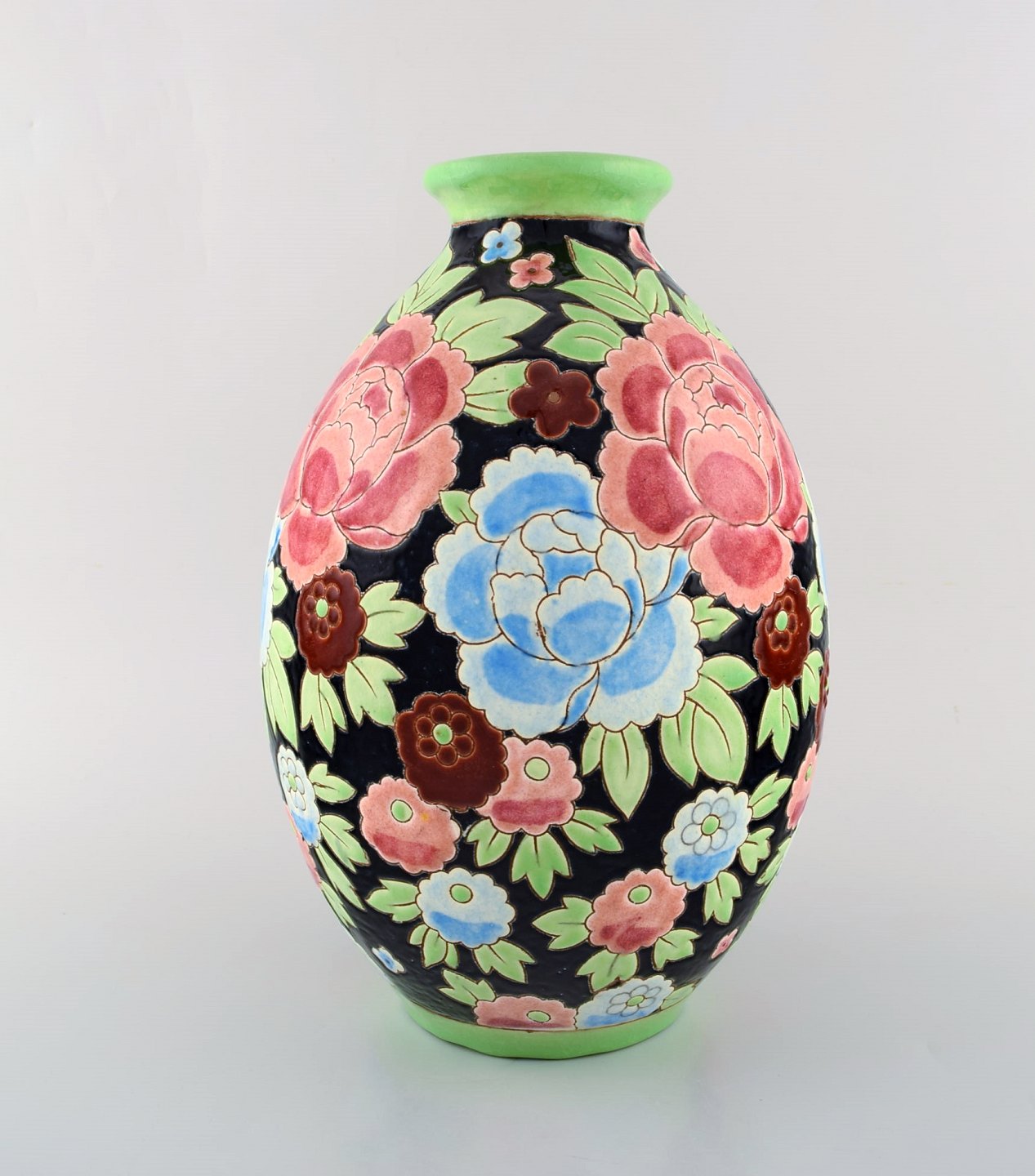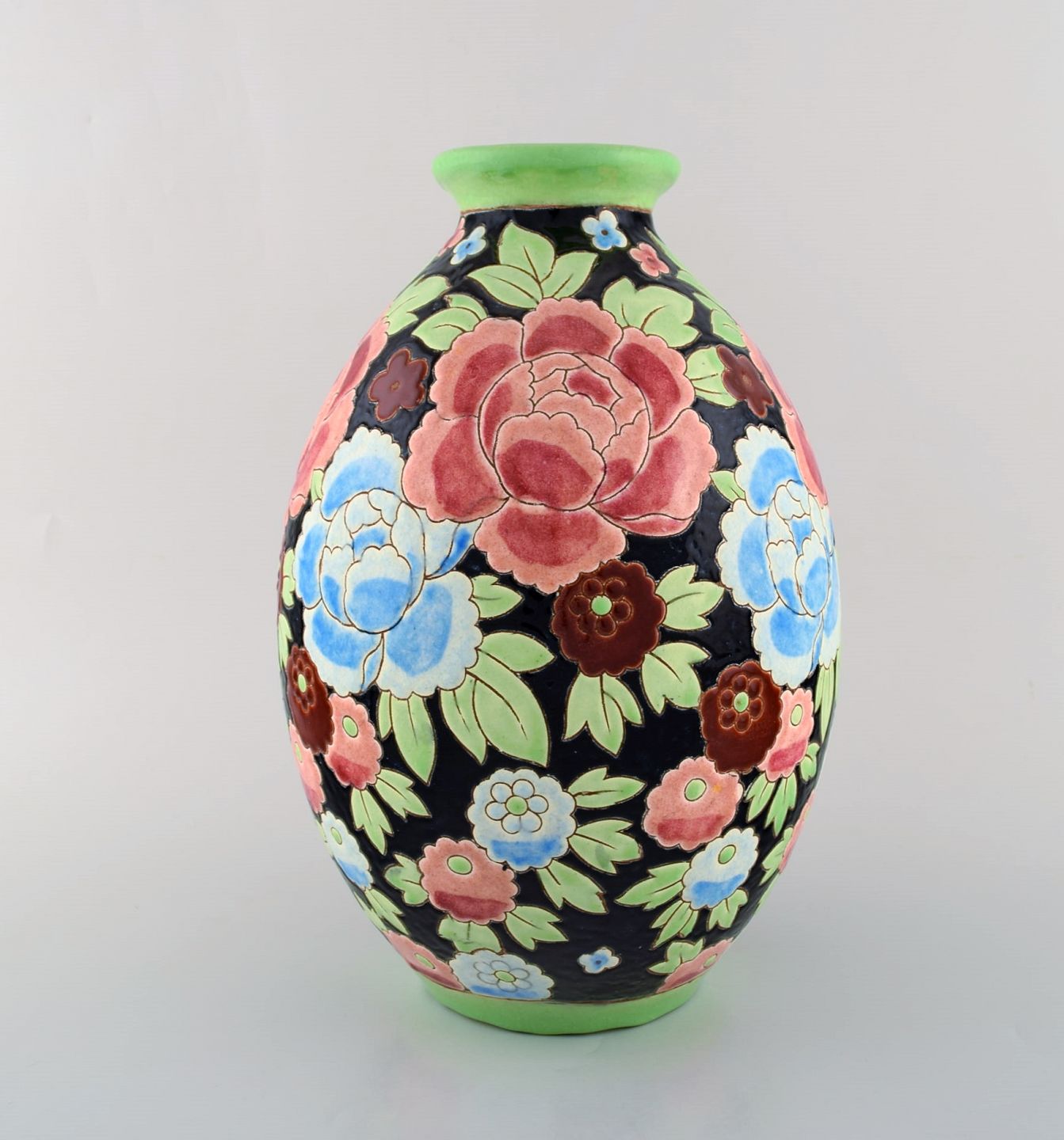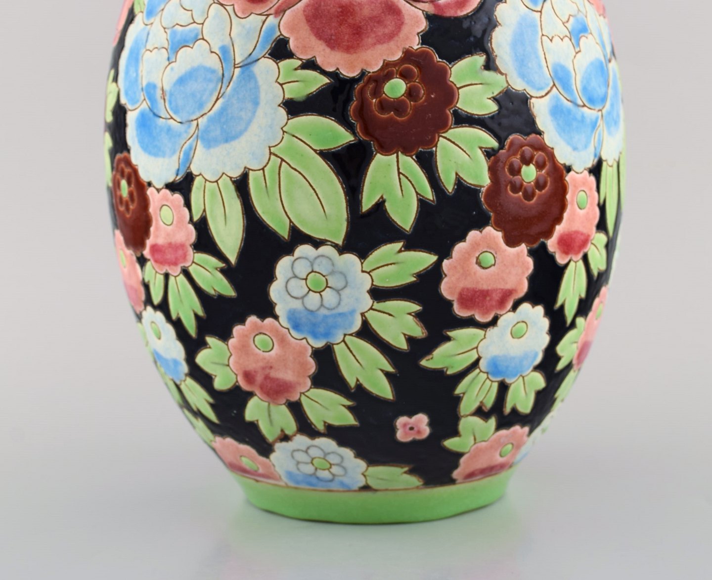 Charles Catteau (1880-1966) for Boch Freres Keramis, Belgien. Stor art deco keramikvase i cloisonné teknik. Håndmalet med blomster. 1920/30'erne. Måler: 30,5 x 20 cm. I flot stand. Stemplet.
