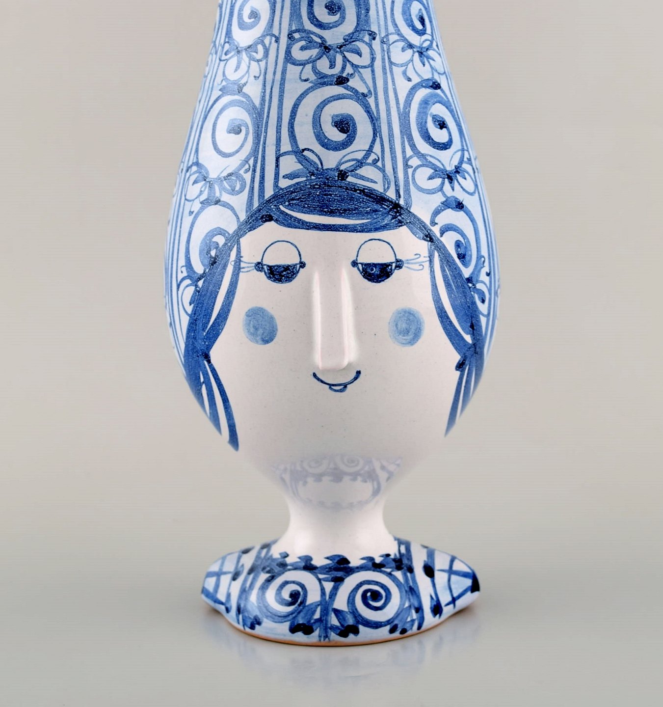 Bjørn Wiinblad (1918-2006). Stor vase / kande med hank af glaseret keramik i form af kvinde med hat. Dateret 1977. Modelnummer K10. Måler: 42,5 x 20 cm. i flot stand. Signeret og dateret.