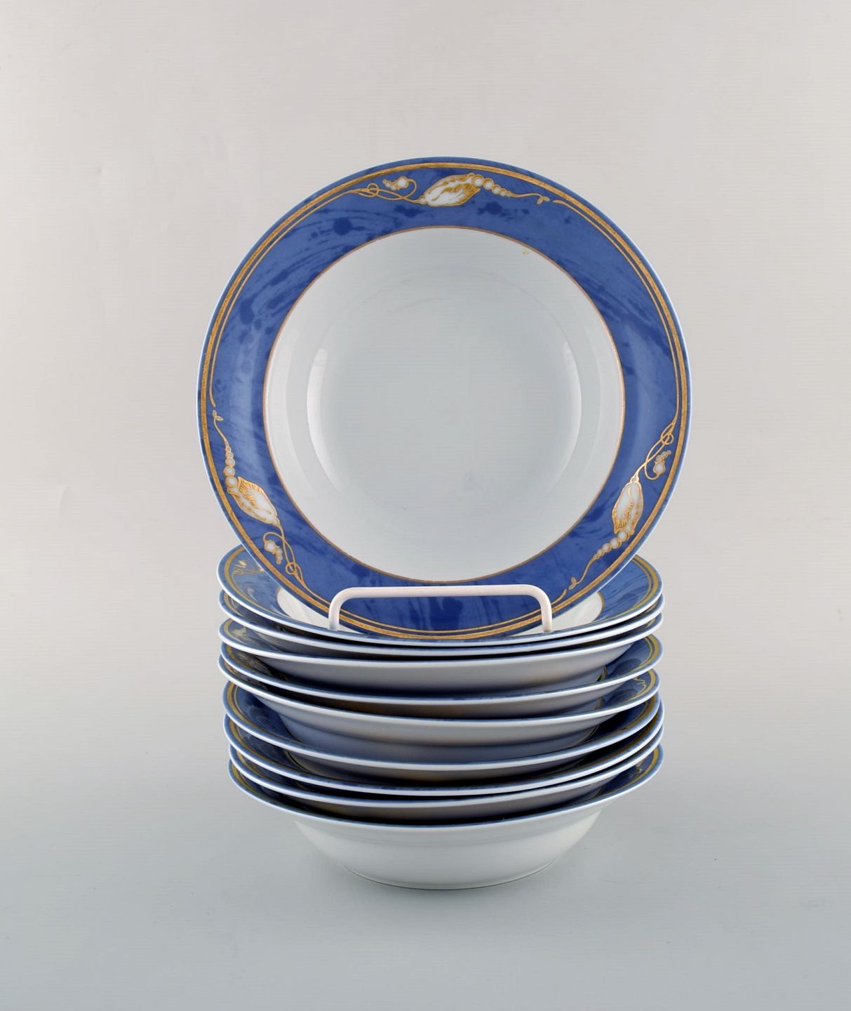 10 Royal Copenhagen "Magnolia" dybe tallerkener. Sent 1900-tallet. Måler: 17,5 x 4 cm. I flot stand. Stemplet. 2. Sortering