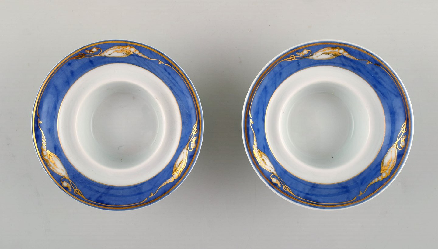 To Royal Copenhagen "Magnolia" fyrfadslysholdere. Sent 1900-tallet. Måler: 9 x 3 cm. I flot stand. Stemplet. 1. Sortering